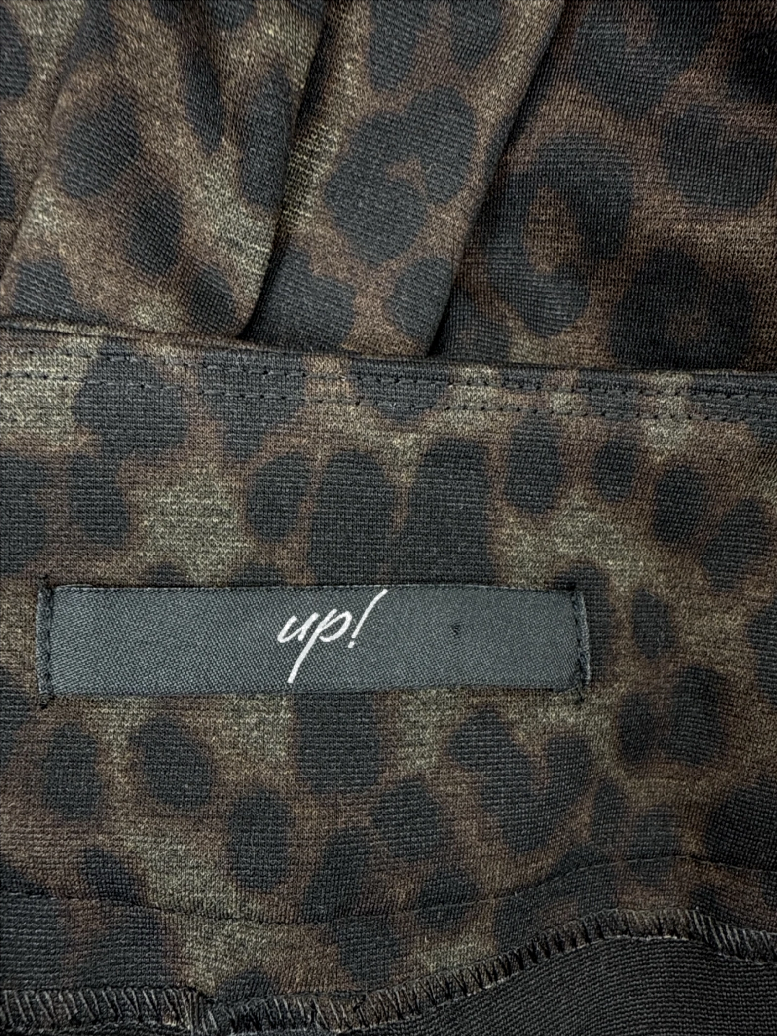 These stylish up! brand leggings feature a chic animal print, perfect for adding a touch of wild flair to your wardrobe. They are designed in a comfortable skinny leg style, ideal for a flattering fit. These pre-owned leggings are a great find for anyone looking for a unique, fashionable piece at an accessible price. The versatile design makes them suitable for both casual and dressier occasions.