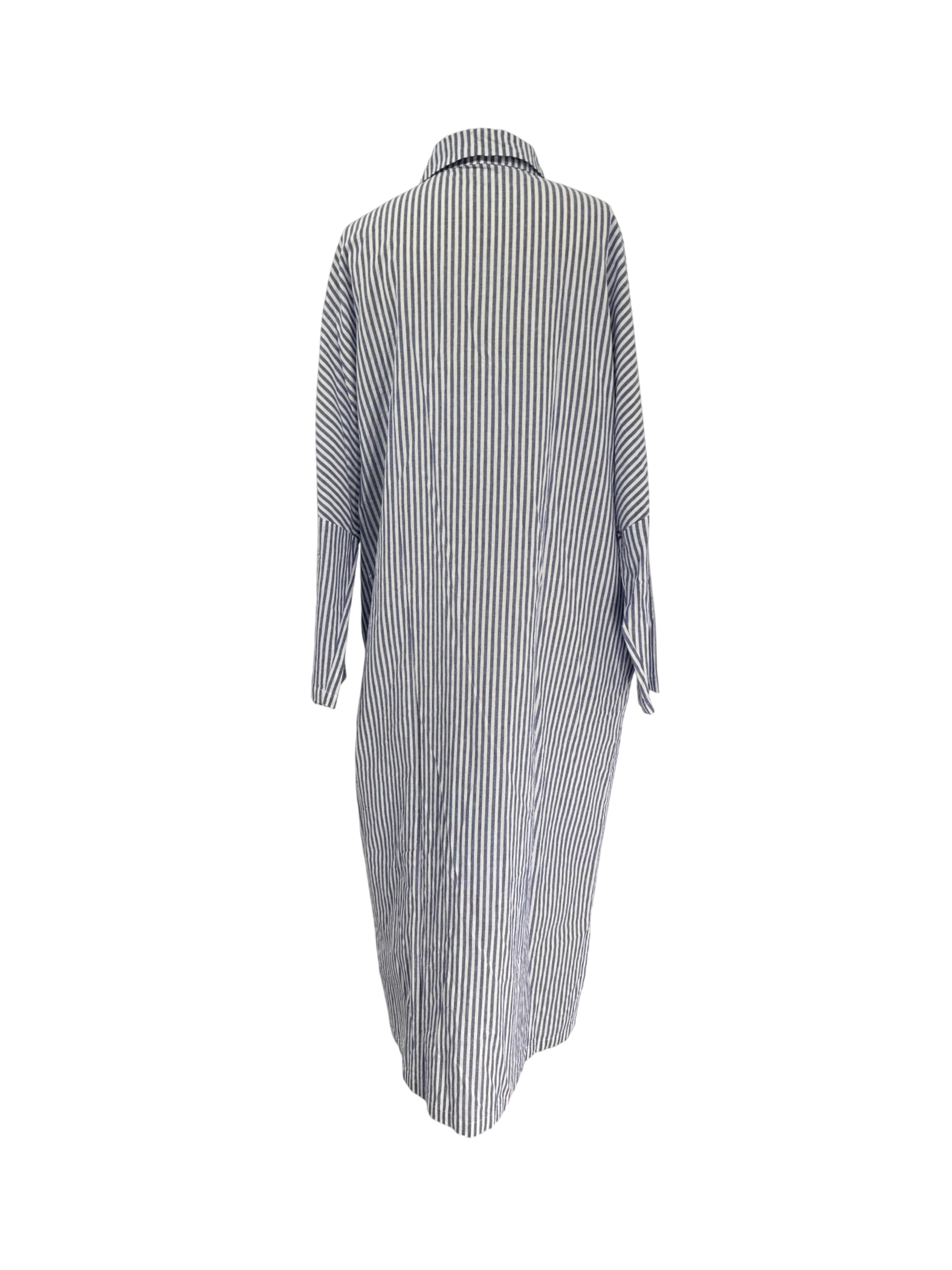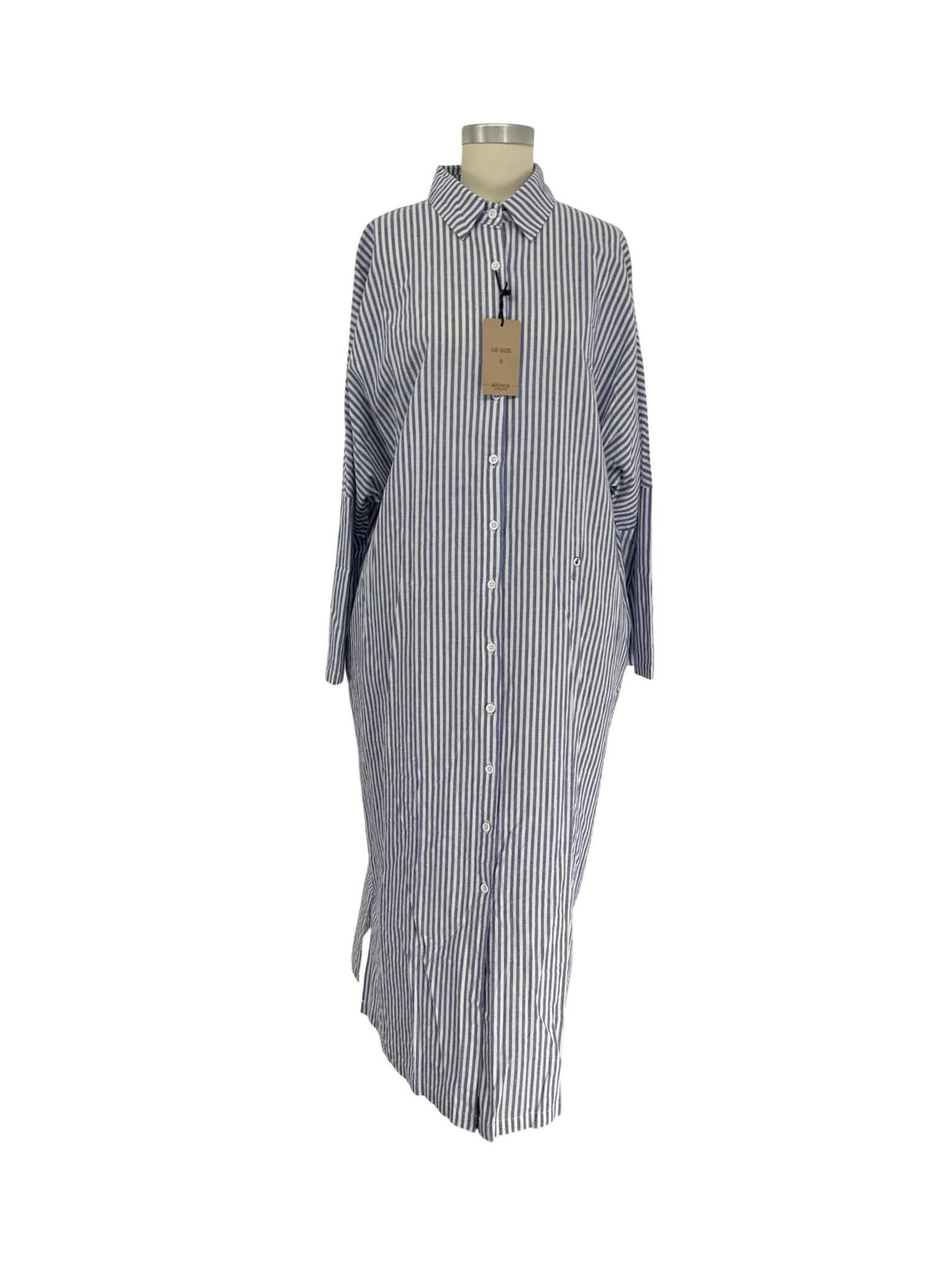 This stylish utcoco dress is perfect for any casual occasion. It features a classic striped pattern in blue and white, and is made from comfortable 100% cotton fabric. The long sleeves and maxi length make it versatile for different seasons, such as summer, spring and fall. This pre-owned dress is in great condition and ready to become a wardrobe staple.