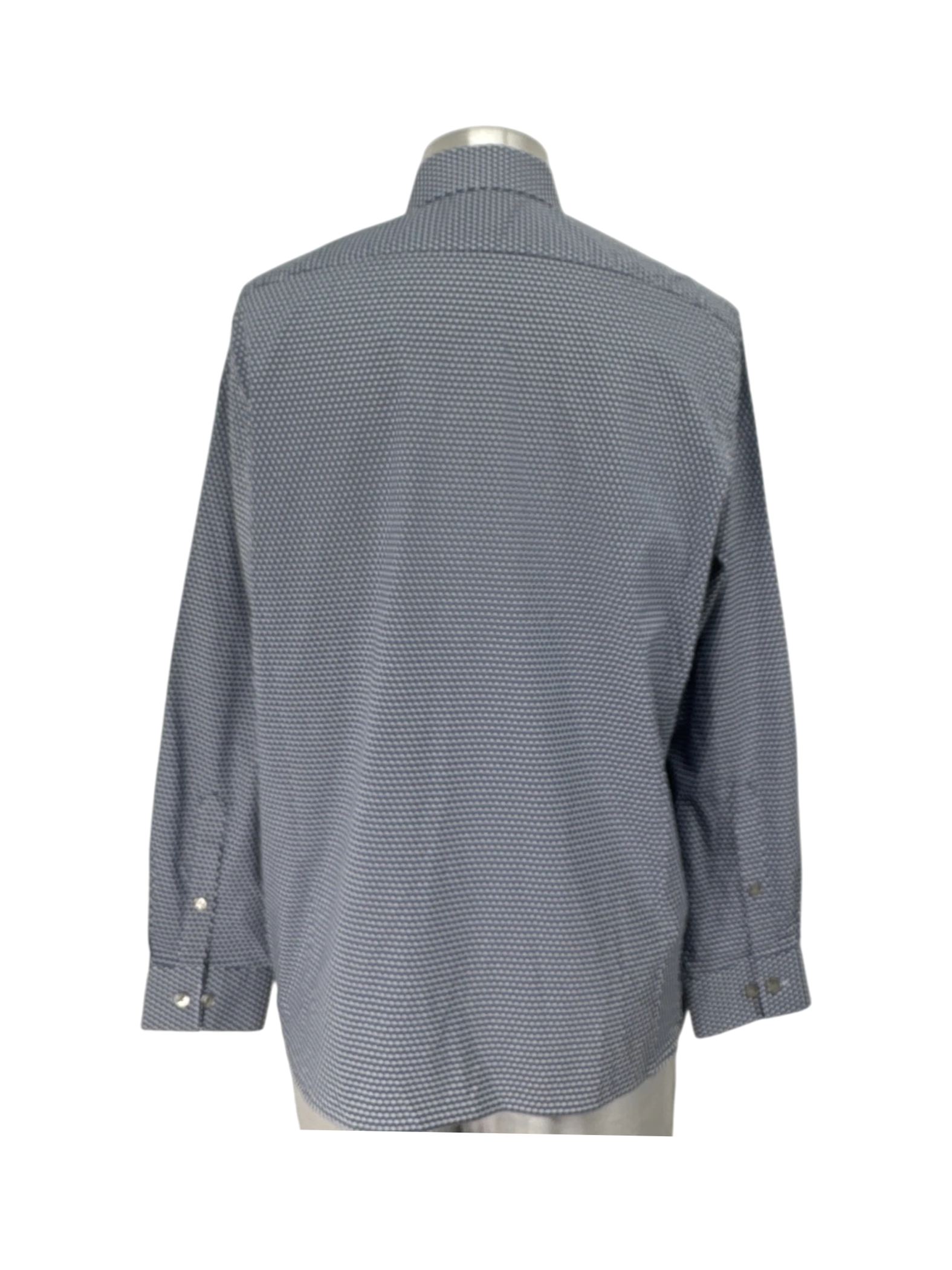 Elevate your wardrobe with this pre-owned Van Heusen men's long sleeve shirt. Featuring a classic collar and a stylish checkered pattern in blue, this shirt offers a sophisticated look. Made from comfortable cotton, it's perfect for cooler seasons. The button-up closure adds a touch of refinement. This slim fit shirt is an excellent choice for any occasion, providing both style and comfort.