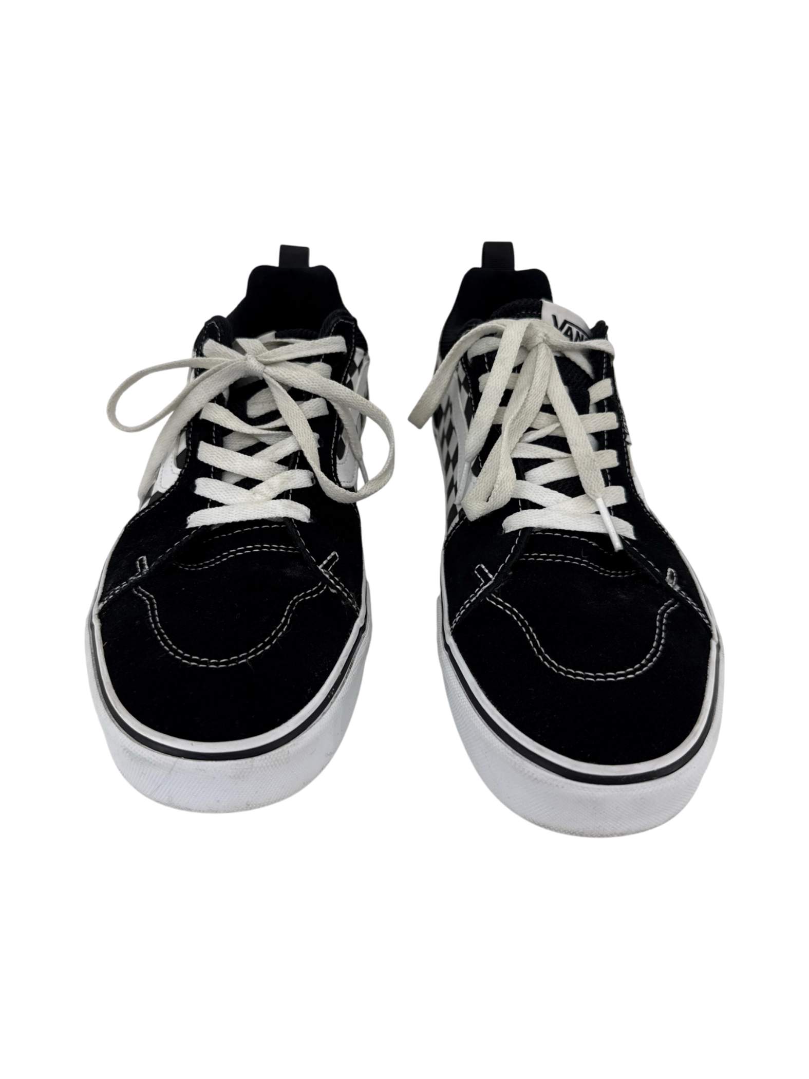 These pre-owned Vans sneakers for men are the perfect blend of style and comfort. The classic black and white checkerboard design adds a touch of flair to any outfit, while the durable construction ensures long-lasting wear. Ideal for casual wear, these Vans sneakers are perfect for everyday activities. They offer a comfortable fit and versatile style that complements any wardrobe. These sneakers are a great value, combining iconic design with reliable quality.