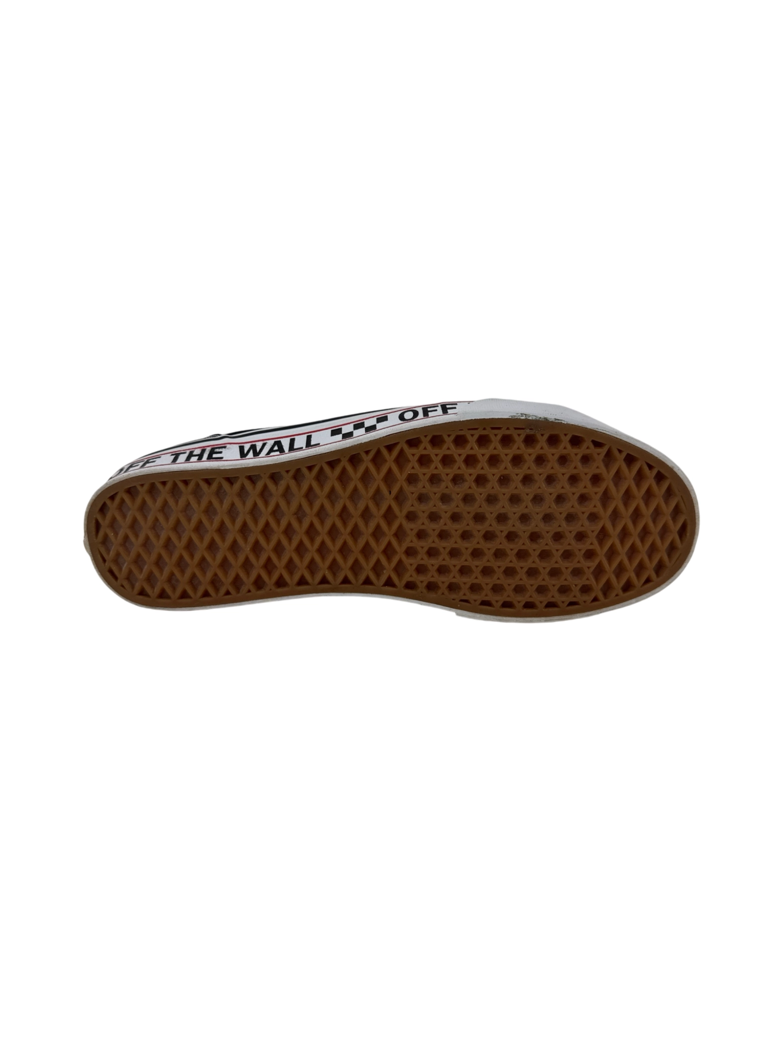 Step up your sneaker game with these pre-owned Vans high-top sneakers. These classic black and white shoes are perfect for everyday wear, offering both style and comfort. The iconic Vans design ensures you make a statement wherever you go. These sneakers show some signs of wear, adding to their unique vintage appeal. A great addition to any wardrobe for those seeking quality footwear at an affordable price.
