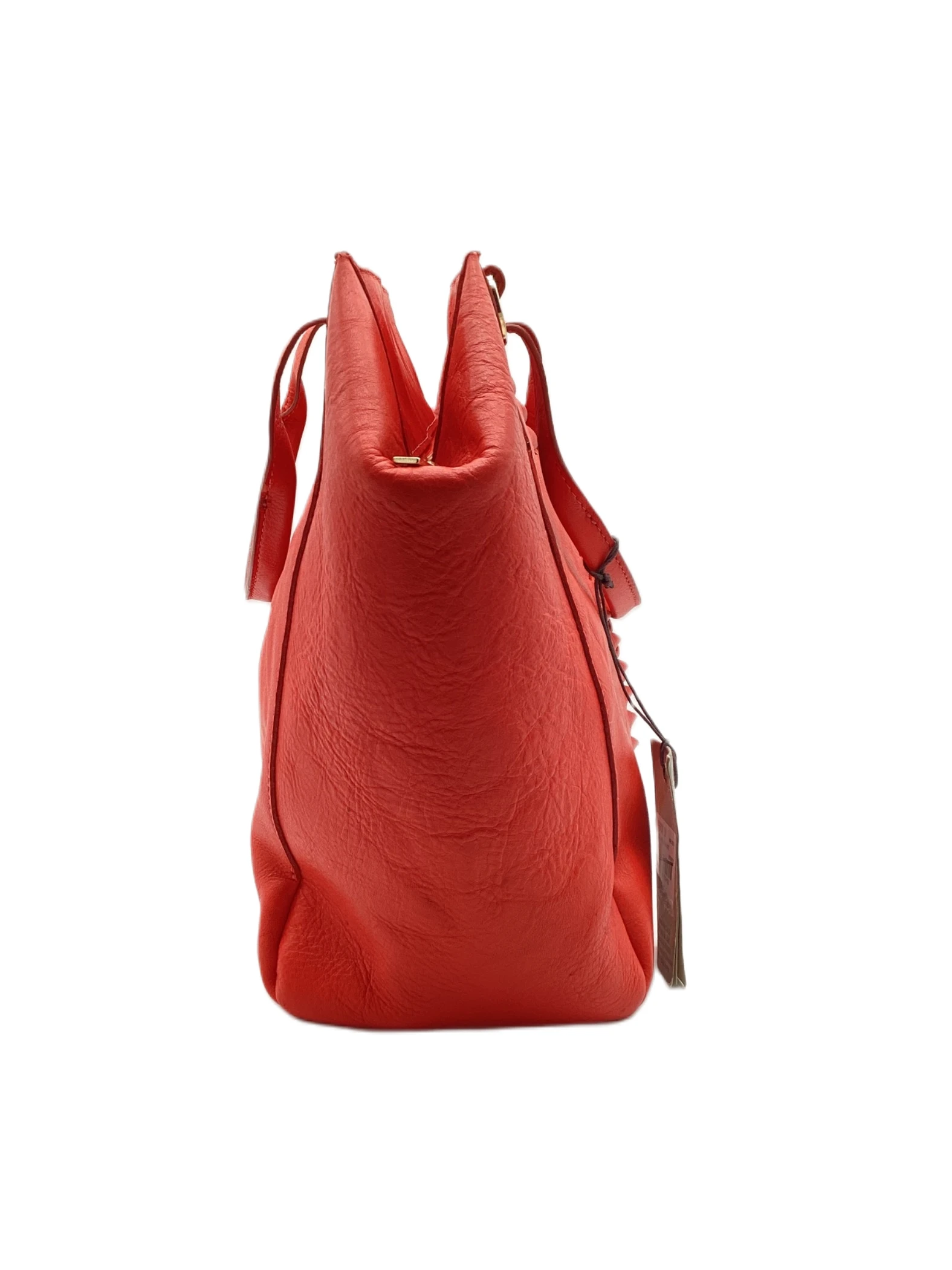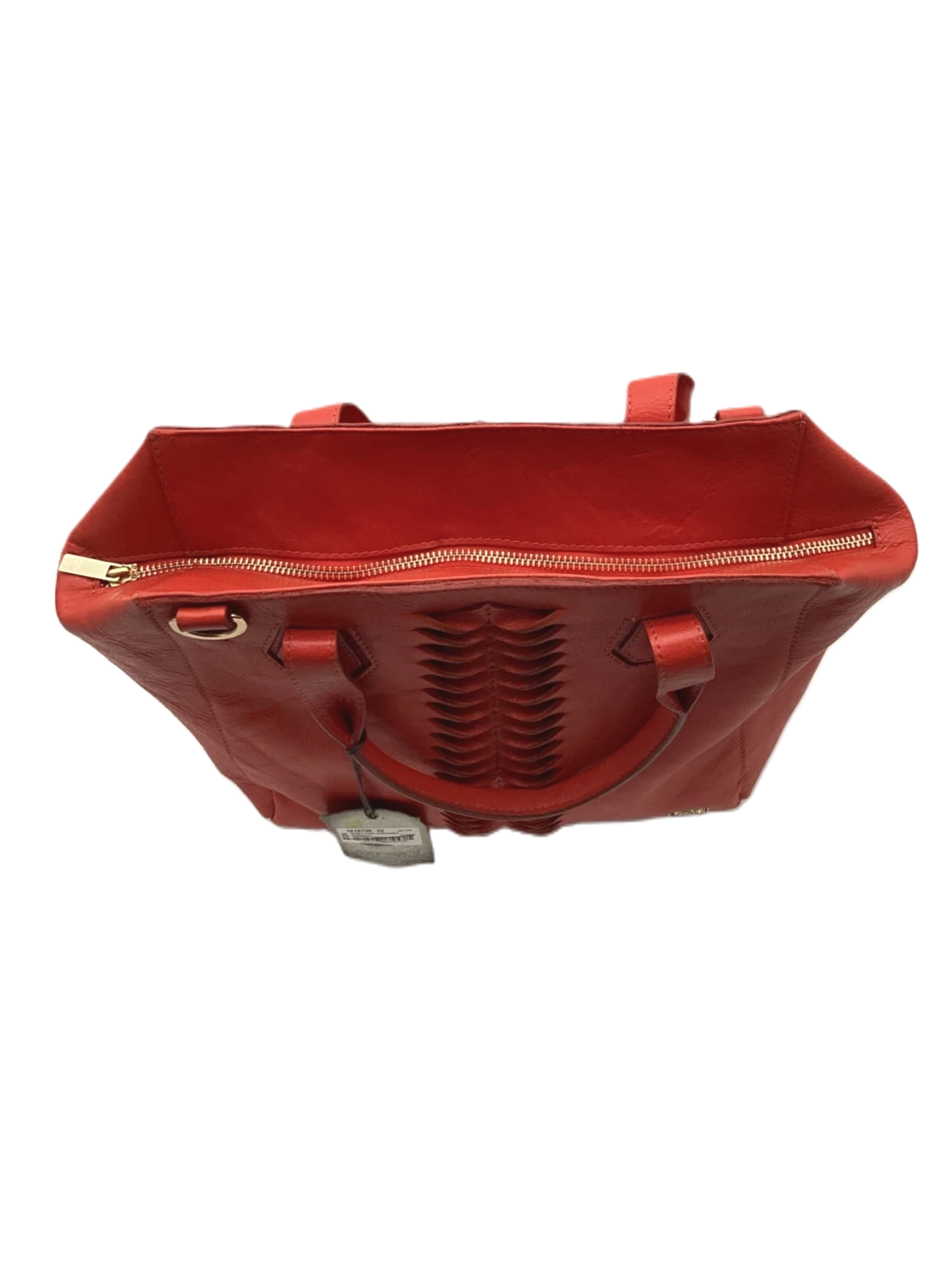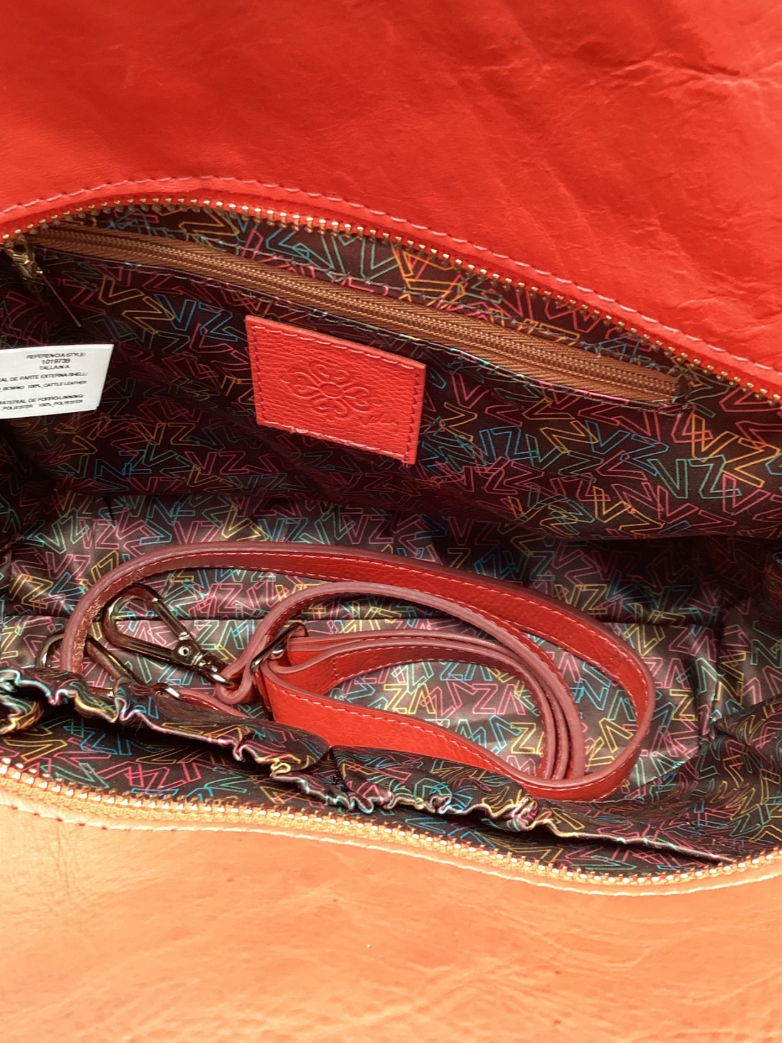 This is a genuine Colombian leather red tote purse bag for women by Velez. The brand is popular in South America, specifically in Colombia. The dimensions of the bag are 11.5 inches in height, 11 inches in width, with a depth of 5 inches and a drop of 5.5