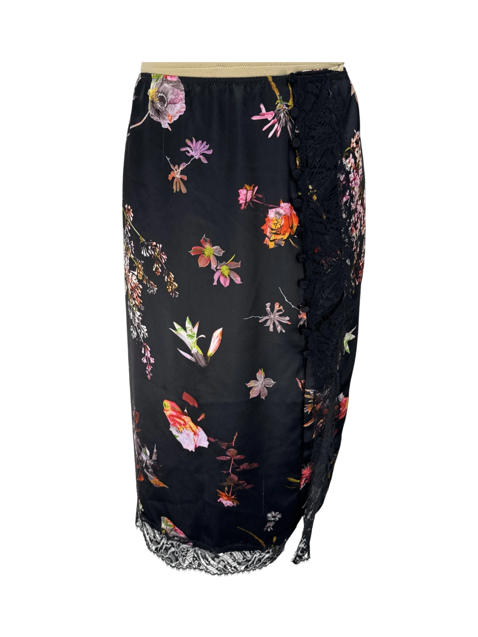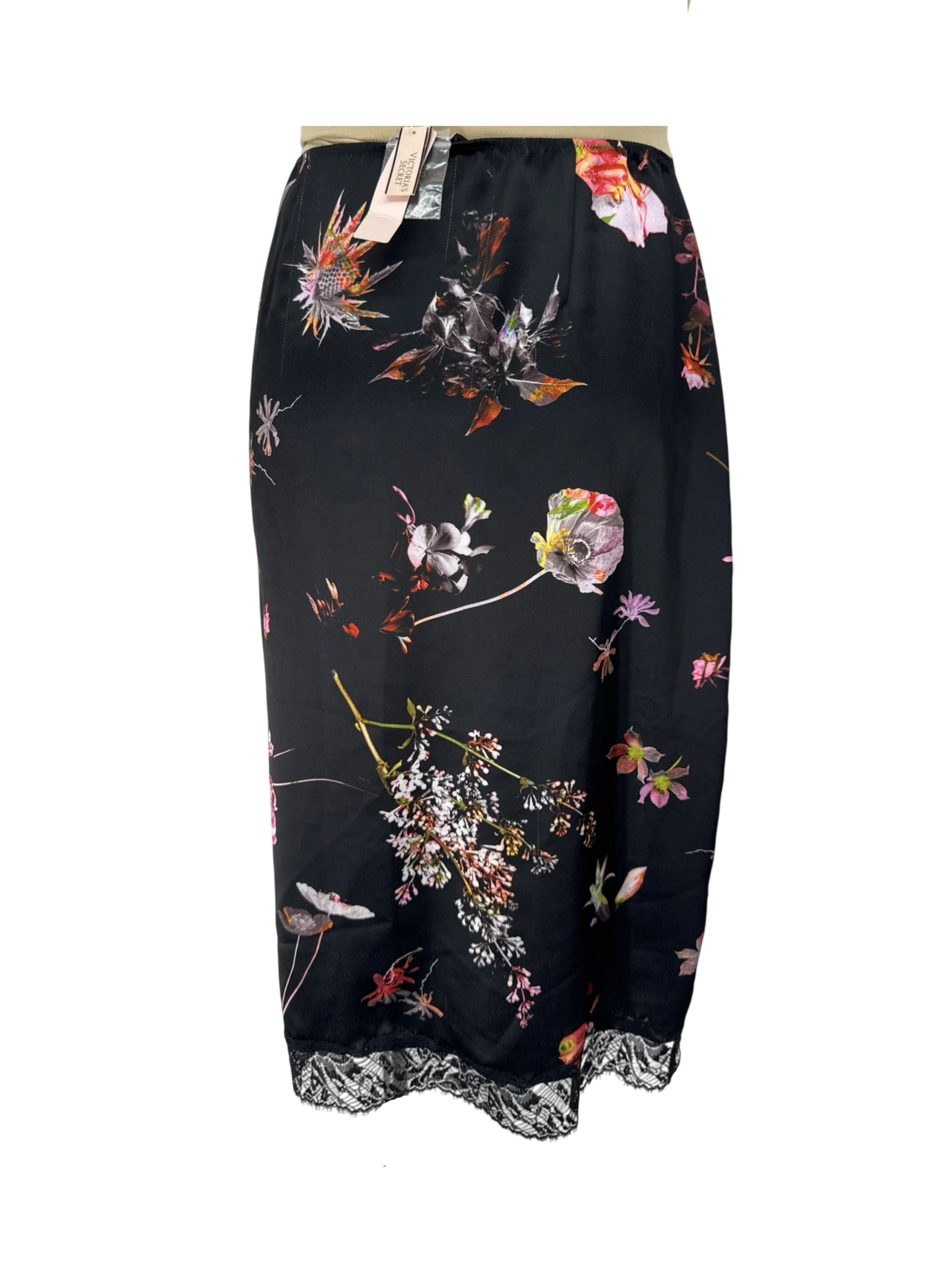 Embrace elegance with this pre-owned Victoria's Secret wrap skirt, a perfect addition to your wardrobe. The skirt features a striking black base adorned with a vibrant floral print, complemented by delicate lace detailing. Crafted from high-quality polyester and polyamide, it offers a comfortable and flattering fit. Ideal for summer and spring, this midi-length skirt exudes a touch of romance and sophistication.
