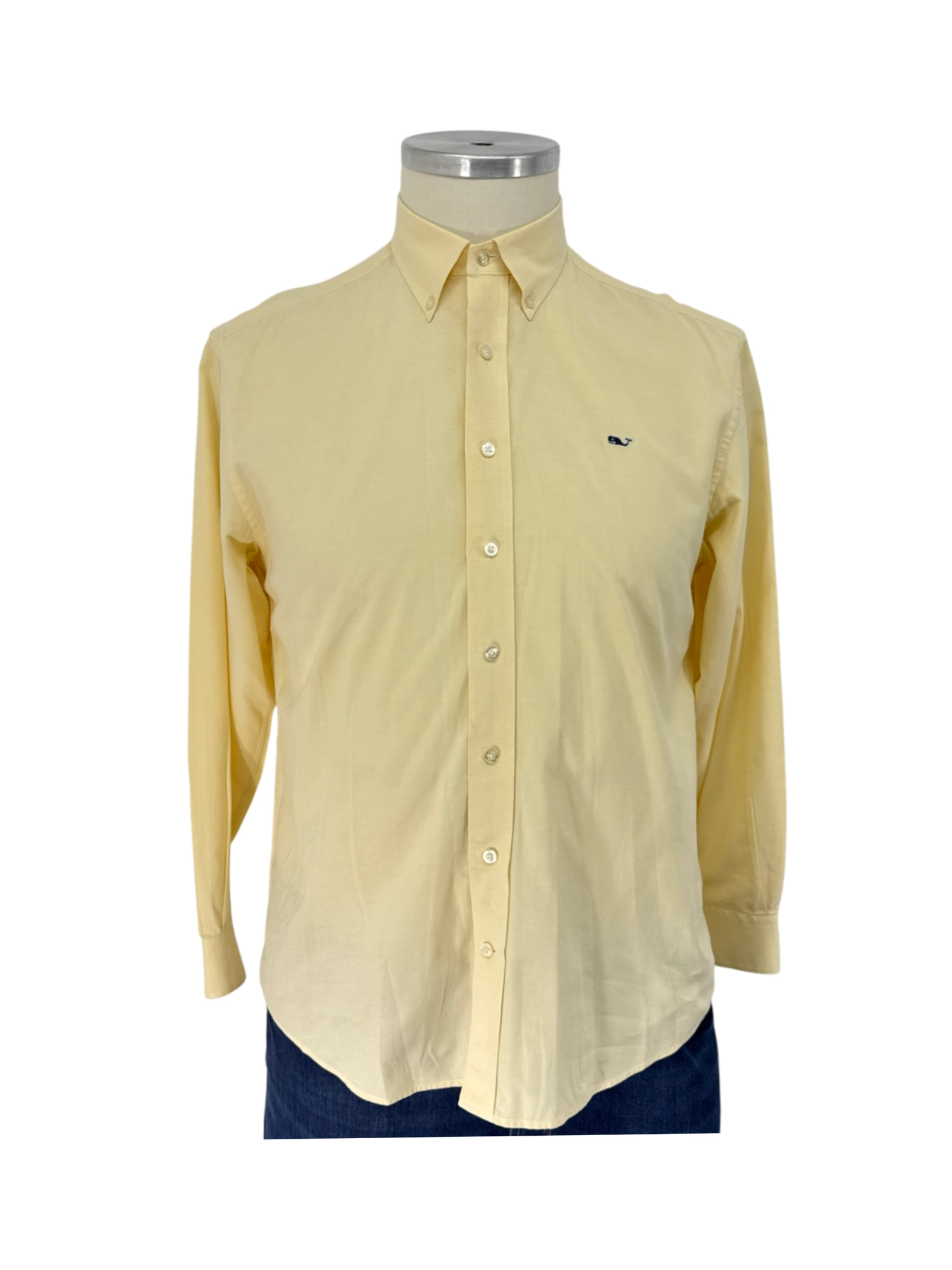 Elevate your wardrobe with this pre-owned Vineyard Vines men's long-sleeve shirt. Crafted from high-quality 100% cotton in a classic yellow hue, this shirt features a button-down closure and a traditional collar. Perfect for spring, summer, and fall, it offers both style and comfort. The Vineyard Vines Whale Shirt is a versatile addition to any closet, suitable for casual or smart-casual occasions. Excellent condition, a must-have for a preppy look.