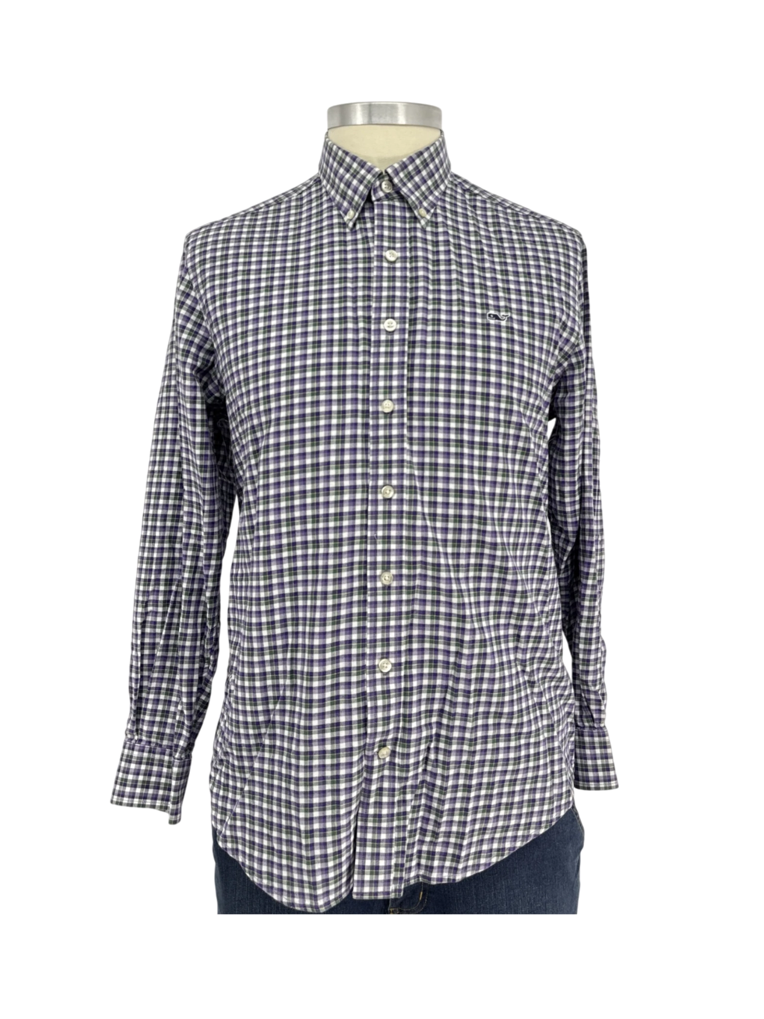 Elevate your wardrobe with this pre-owned Vineyard Vines long sleeve shirt. This stylish men's top features a classic plaid pattern in a versatile color palette, perfect for any occasion. Crafted from 100% cotton, this shirt offers both comfort and durability. The button-up closure and collar neckline add a touch of sophistication. Ideal for spring and fall, this shirt is a timeless addition to your collection. It is a slim fit.