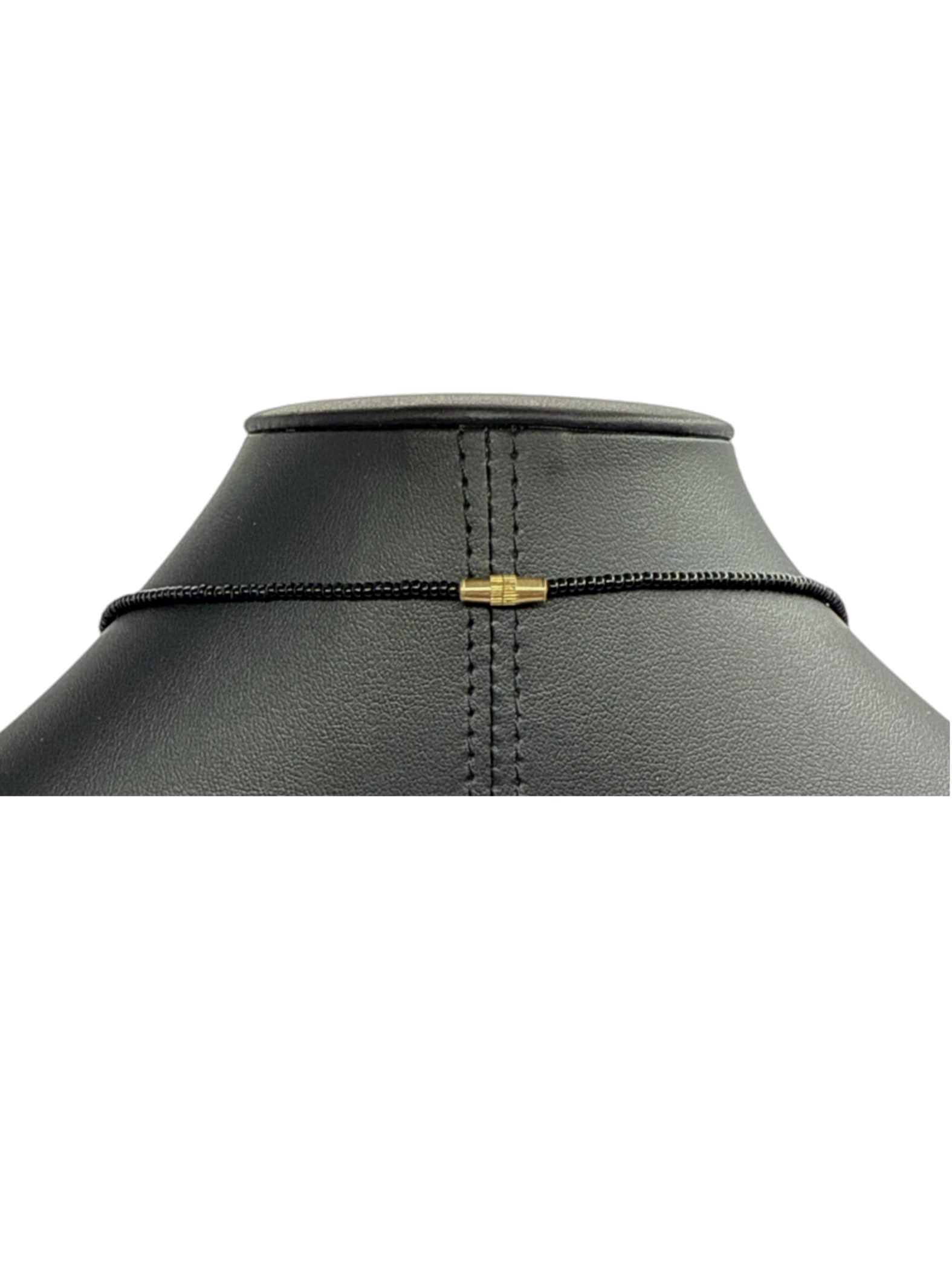 Vintage cream disk necklace with black beads, 19 1/2 inches long.