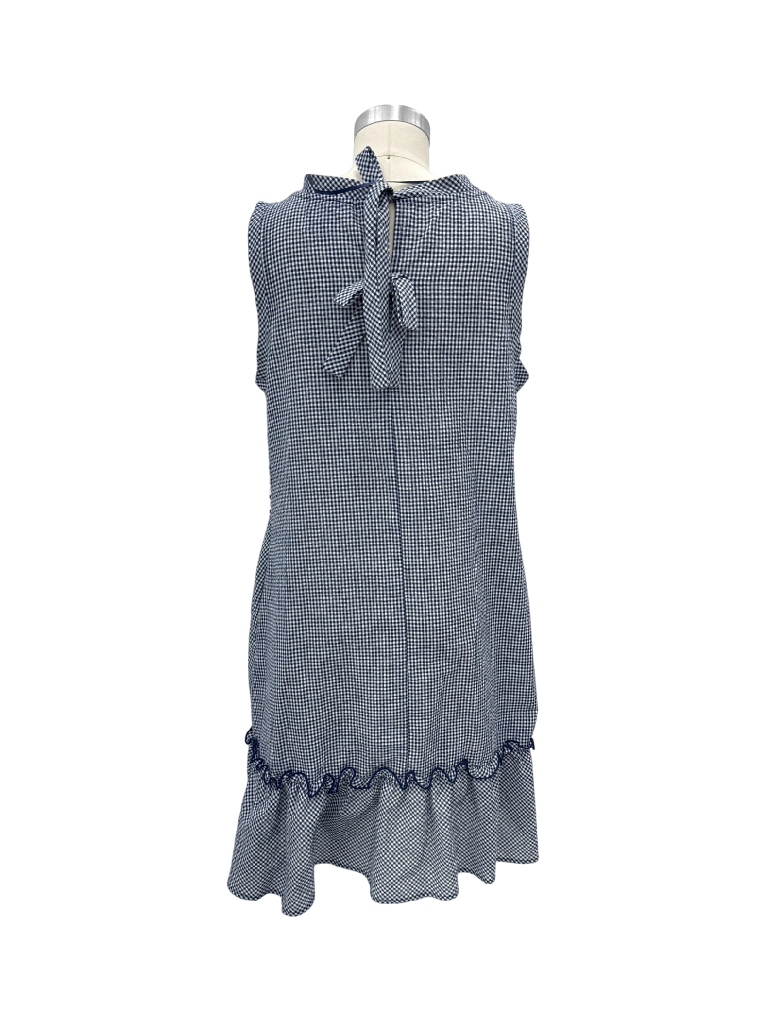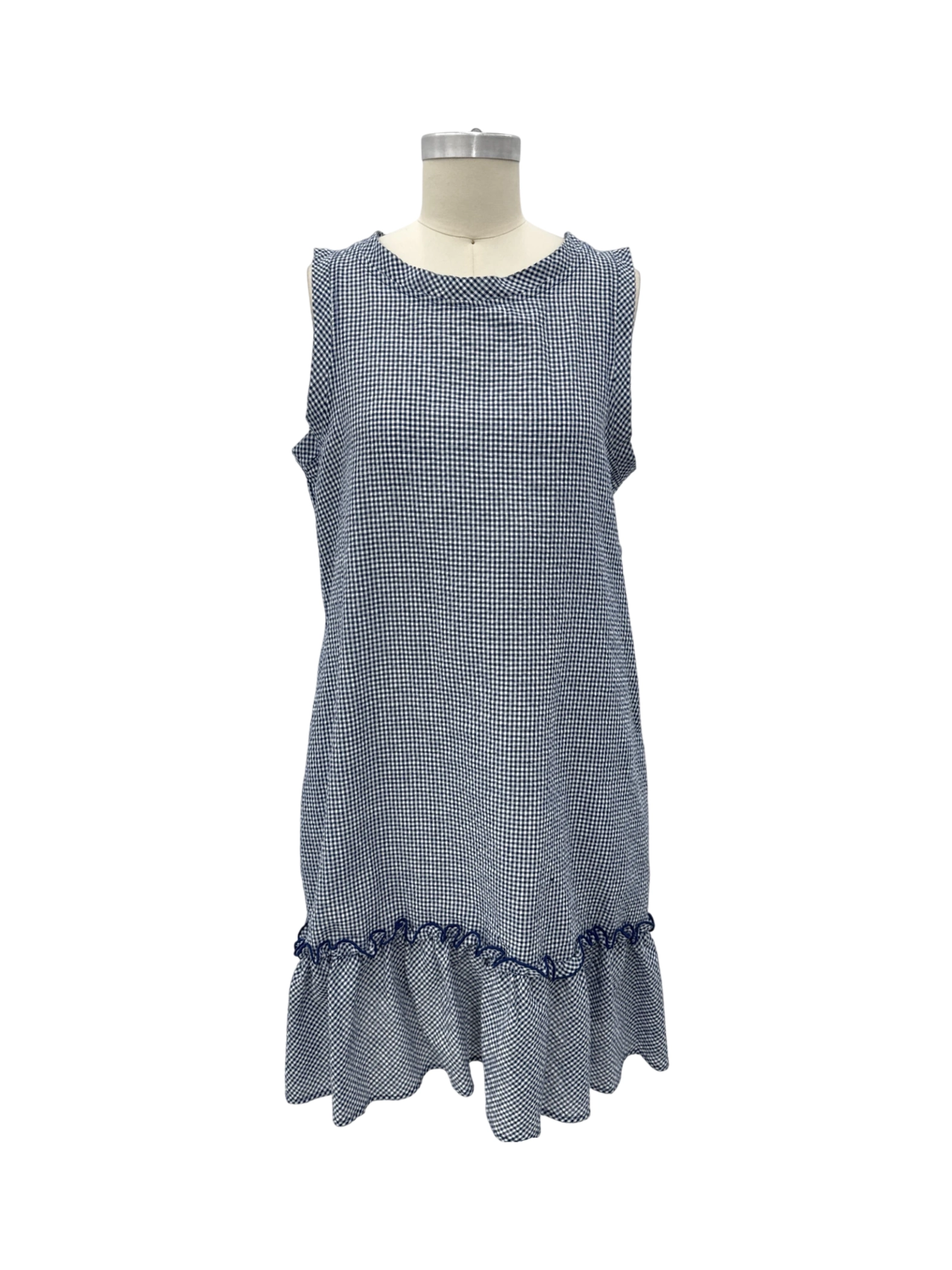 This pre-owned Violet Weekend dress is a stylish addition to any wardrobe. Featuring a classic A-line silhouette, it's perfect for warm weather. The navy blue and white checkered pattern gives it a chic touch. Made from a comfortable blend of polyester and cotton, this sleeveless dress is ideal for casual outings. It's a versatile piece that can be dressed up or down. Get ready for Spring and Summer in this timeless, preloved find.