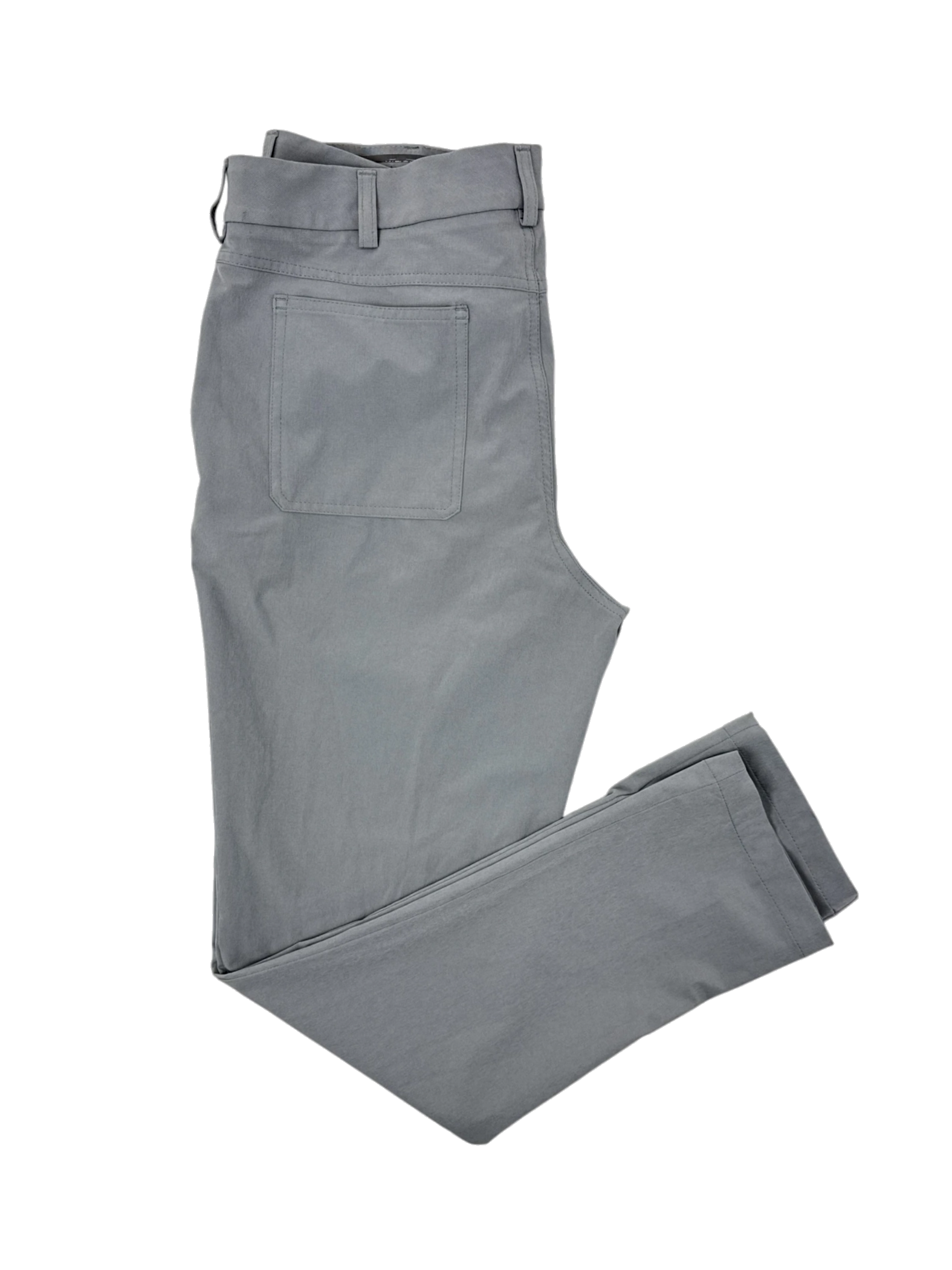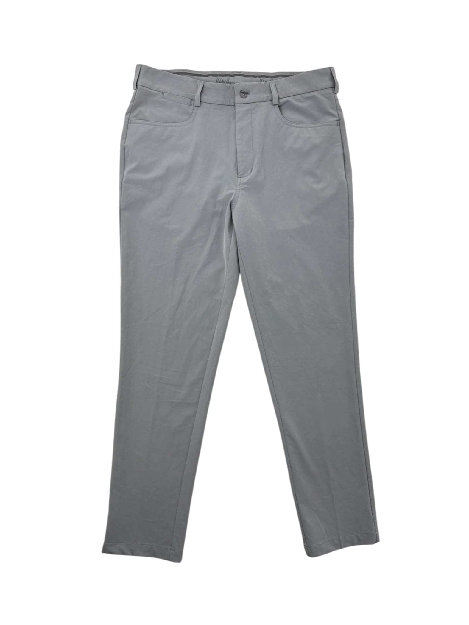 These pre-owned Walter Hagen men's chinos are the perfect blend of comfort and style. Crafted from a durable polyester and spandex blend, these pants offer a classic fit with a modern touch. Ideal for both casual and semi-formal occasions, they feature a sleek gray color and a comfortable regular fit. Excellent for everyday wear, these pants are a versatile addition to any wardrobe. Easy to pair with a t-shirt or a button-down for any occasion.