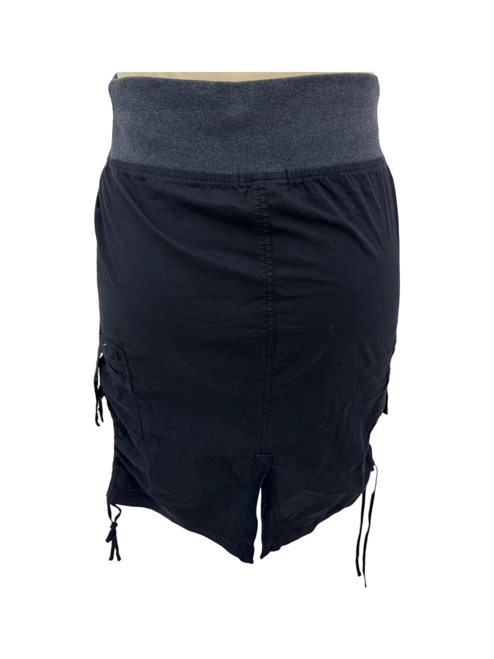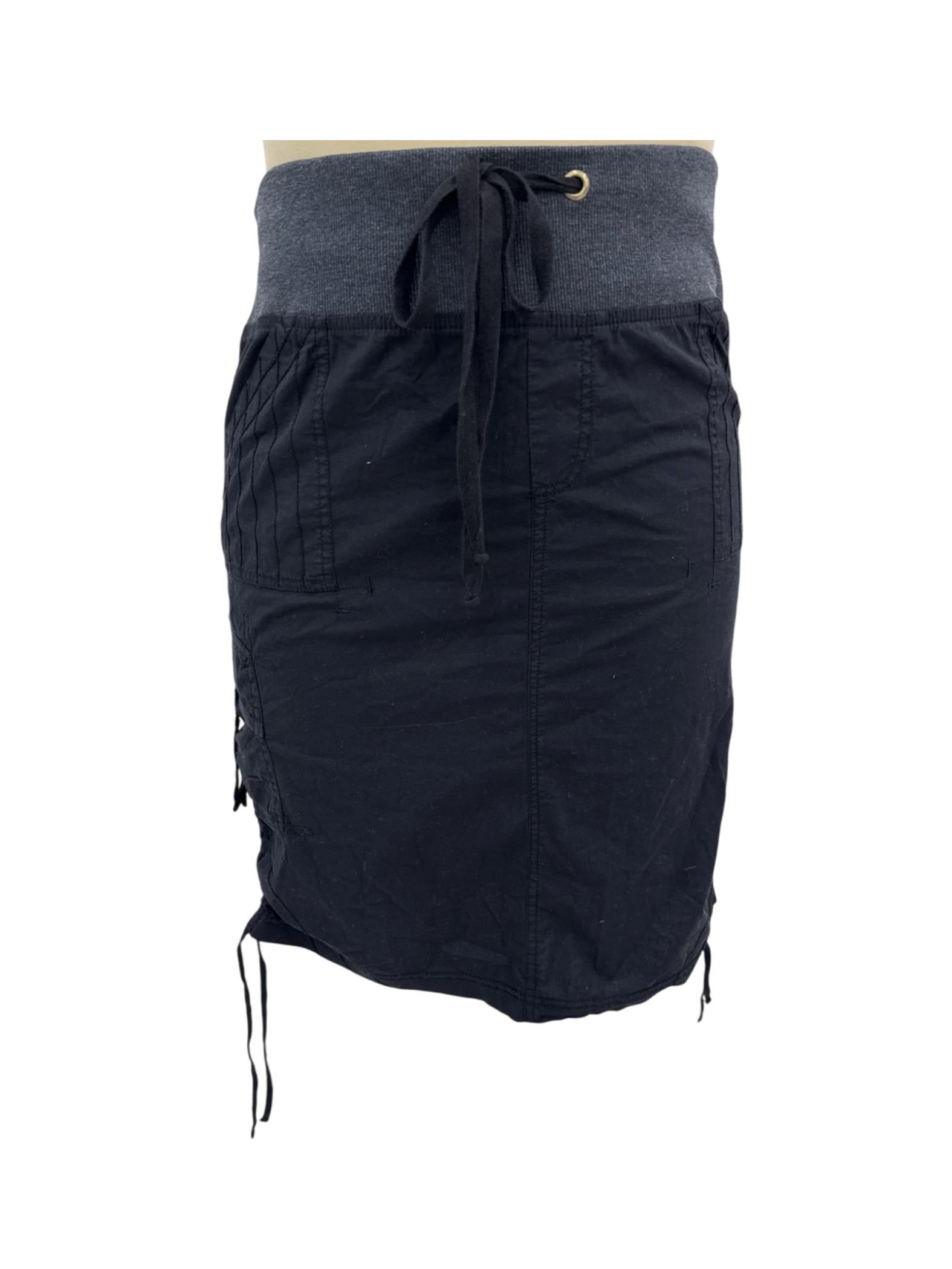 This stylish, pre-owned midi skirt from Wearables is a versatile addition to any wardrobe. Featuring a flattering A-line silhouette, this skirt is perfect for spring, summer, and fall. The classic black color and comfortable cotton and spandex blend makes it a go-to piece for casual outings. With a unique design and practical pockets, it offers both style and functionality. It is the perfect choice for a casual yet chic look.
