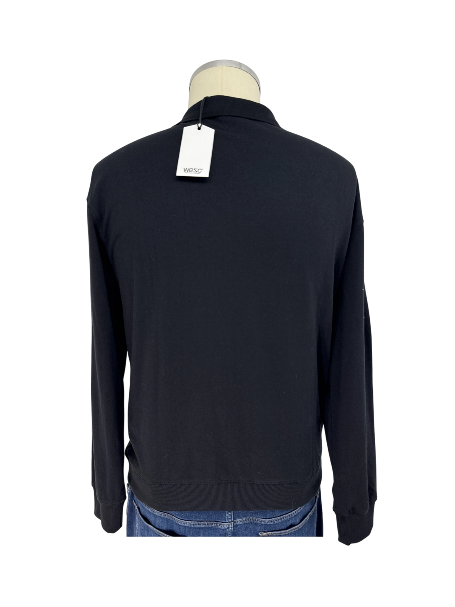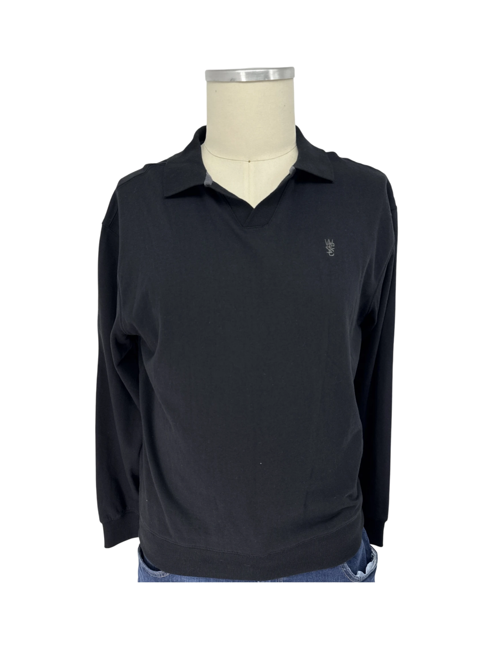 Elevate your casual wardrobe with this pre-owned WESC men's sweater. This versatile pullover features a classic collar, V-neck, and long sleeves, perfect for layering. Crafted from 100% cotton, it ensures comfort and breathability. The sweater comes in timeless black, making it easy to pair with any outfit. Ideal for the Fall and Winter seasons, this sweater offers both style and warmth. A must-have for the modern man looking for quality and affordability.