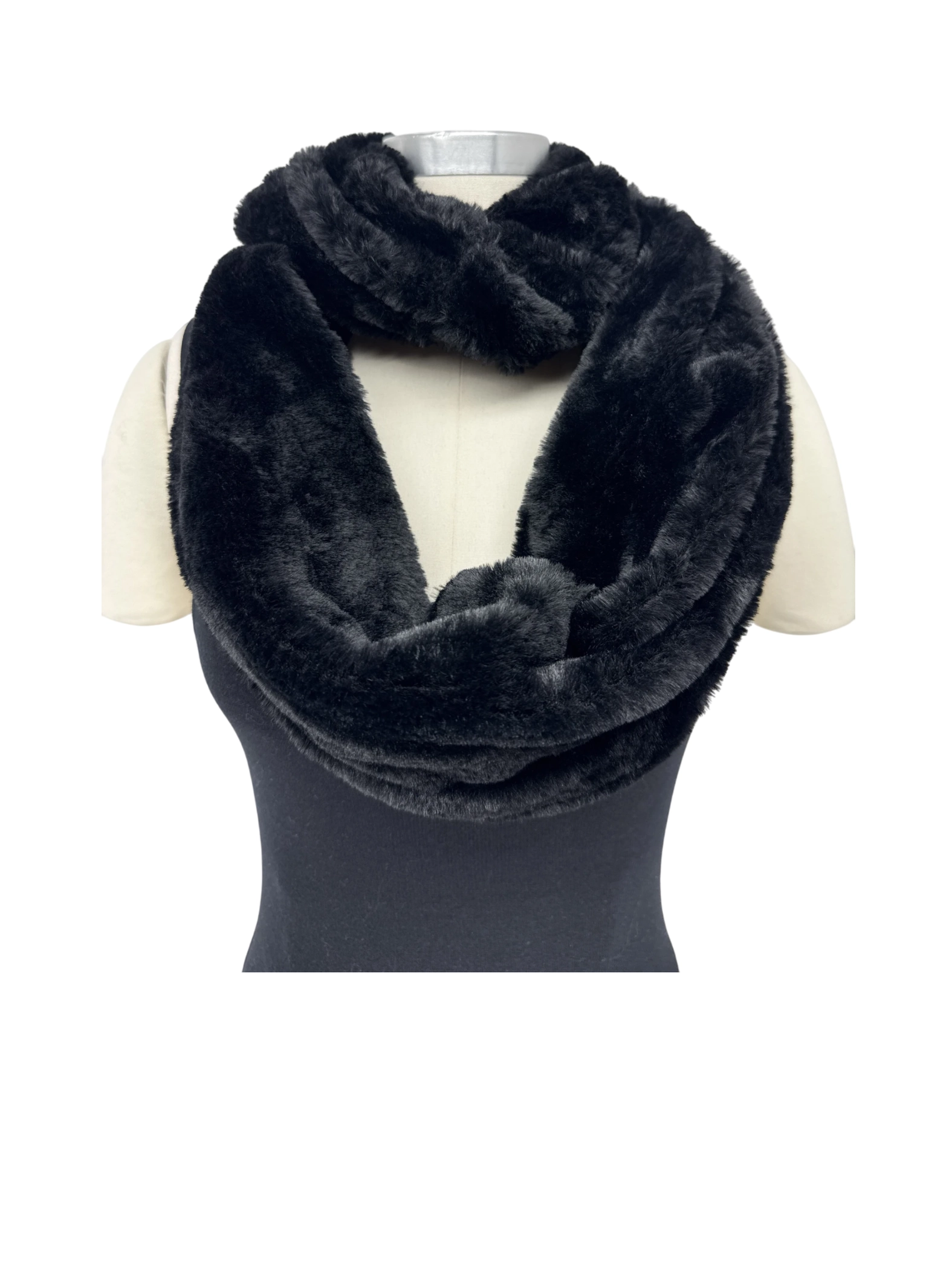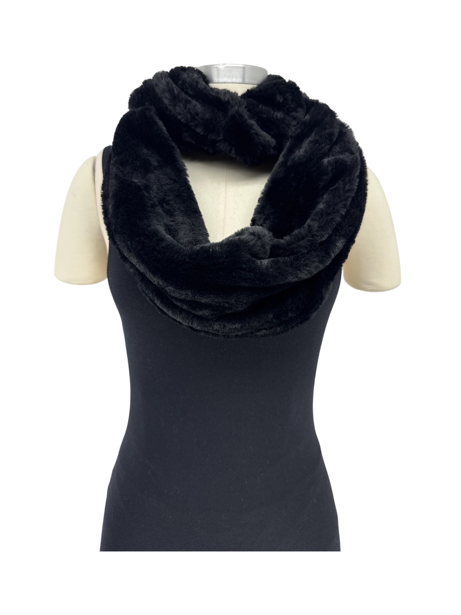 Stay cozy and chic this winter with this pre-owned West Loop faux fur infinity scarf. Crafted from soft polyester, this black scarf offers luxurious warmth and style. Perfect for adding a touch of elegance to any outfit, this scarf is a versatile addition to your winter wardrobe. The plush faux fur material ensures maximum comfort, making it an ideal accessory for cold weather. Excellent condition, machine washable.