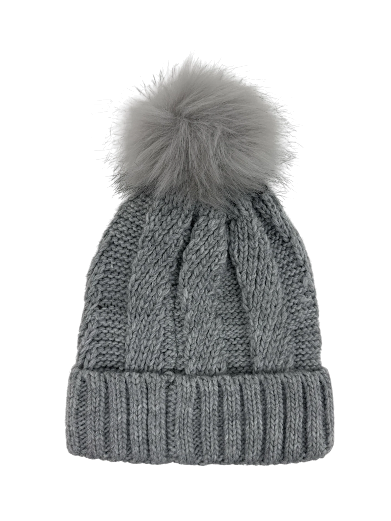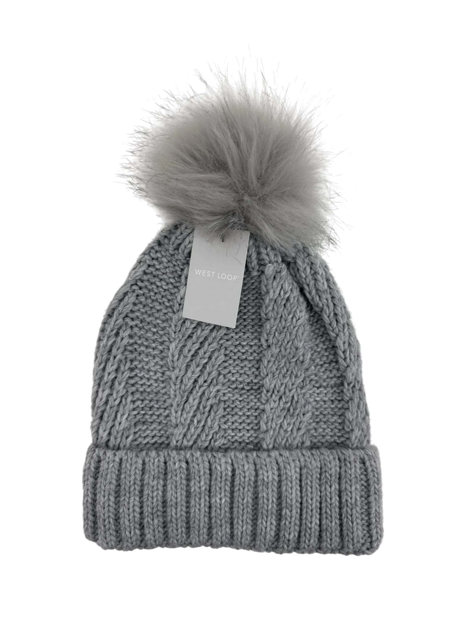 Stay warm and stylish this winter with this pre-owned West Loop hat. This cozy accessory features a chic gray color, a faux fur pom-pom and a comfortable fit. Made with high-quality acrylic and polyester, this hat is perfect for keeping you warm during the fall and winter months. A versatile fashion piece for your wardrobe. - Stay warm and stylish this winter with a pre-owned West Loop beanie. This cozy hat features a soft gray color, a trendy faux fur pom-pom, and a comfortable fit. The hat is made with durable acrylic and polyester materials to keep you warm. Perfect for adding a touch of flair to your casual outfits. Its versatility makes it great for fall and winter wear.