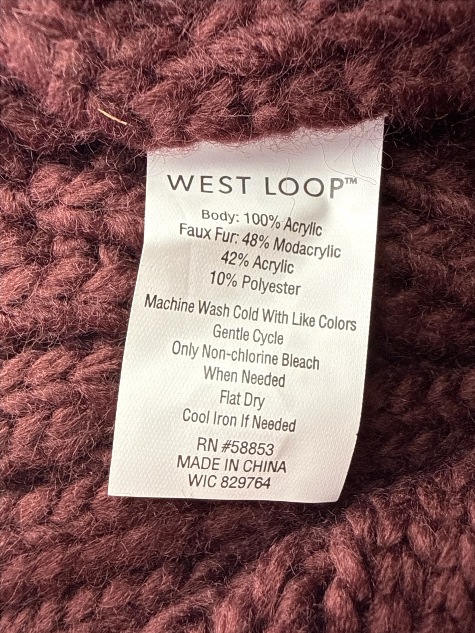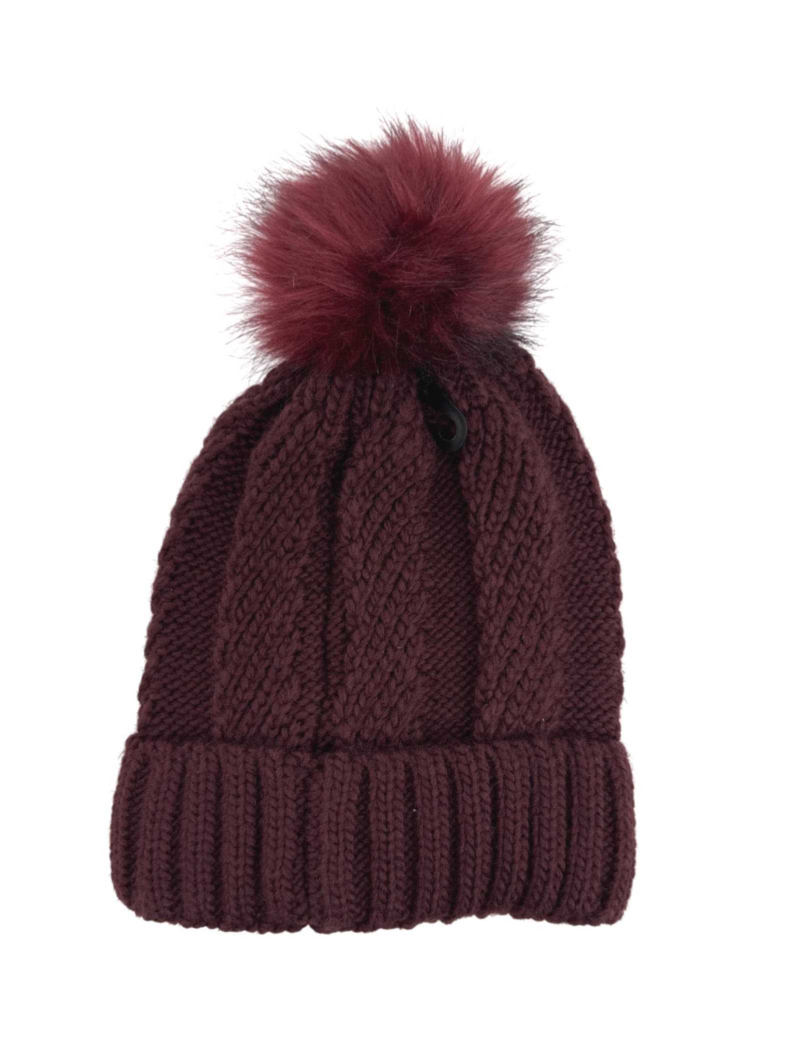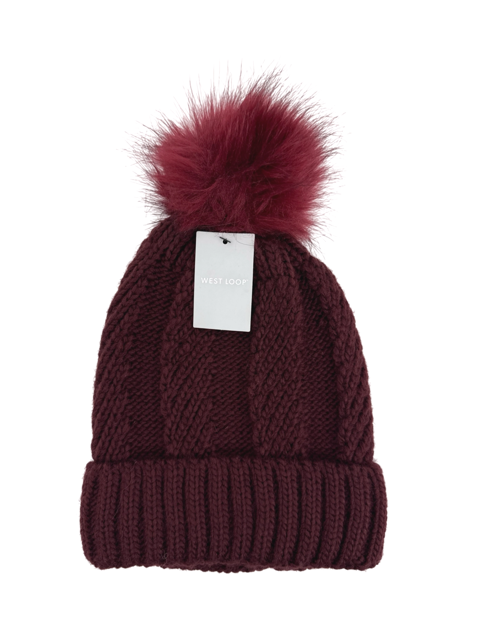 Stay warm and stylish this winter with this pre-owned WEST LOOP burgundy beanie. This cozy hat features a luxurious faux fur pom-pom and is made from soft acrylic and polyester. The classic design makes it a versatile accessory for any outfit. Perfect for cold weather, this beanie offers both comfort and style, making it an essential addition to your winter wardrobe.