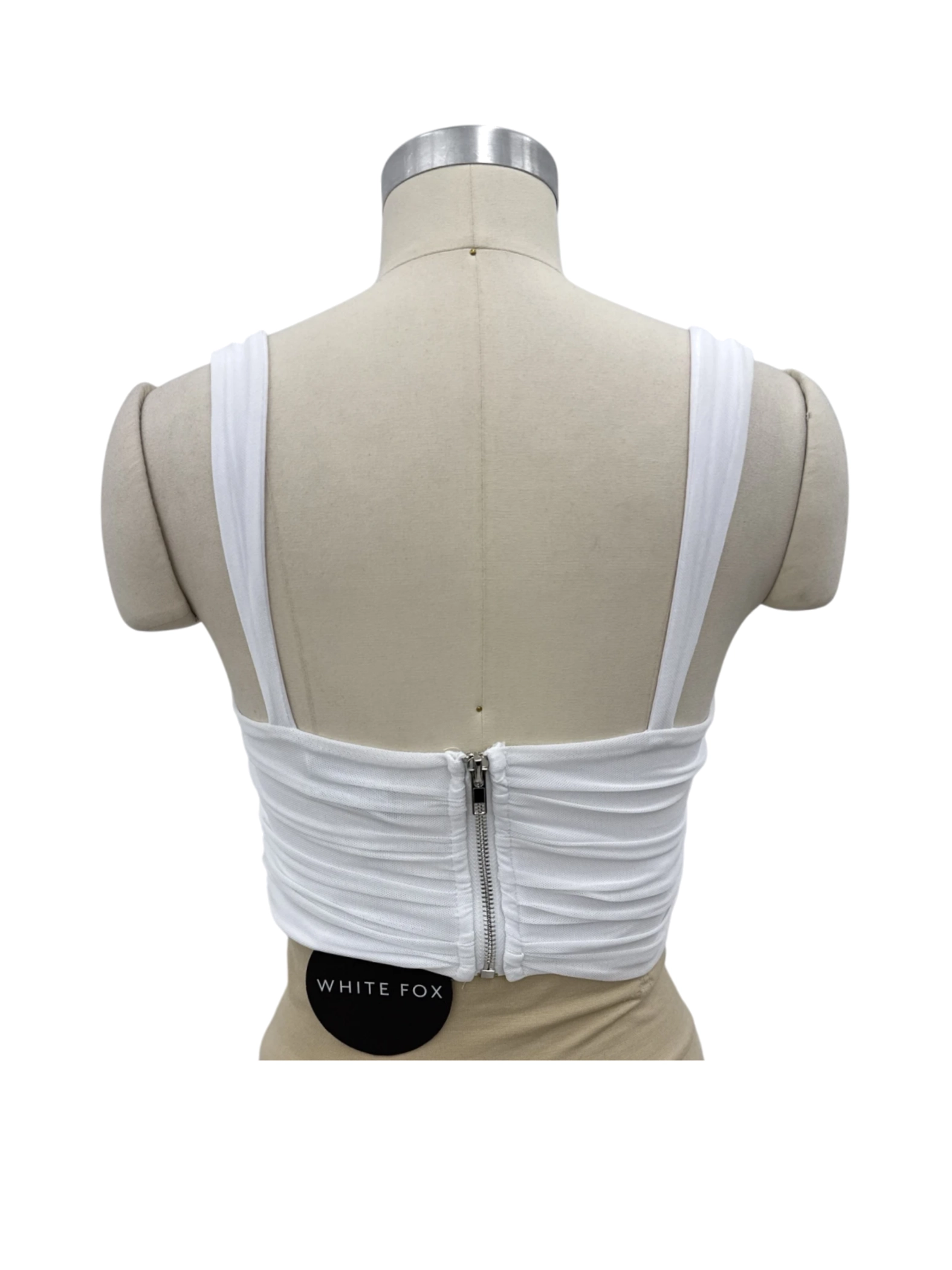 This chic, pre-owned WHITE FOX cropped tank top is a summer essential. The stylish, strapless design in crisp white makes it versatile for various outfits. Featuring a flattering silhouette and made from comfortable polyester. This top is perfect for a night out or a casual day look. Pair it with high-waisted shorts, skirts, or jeans. This top adds a touch of sophistication to your wardrobe. Perfect for those who love trendy and fashionable pieces.