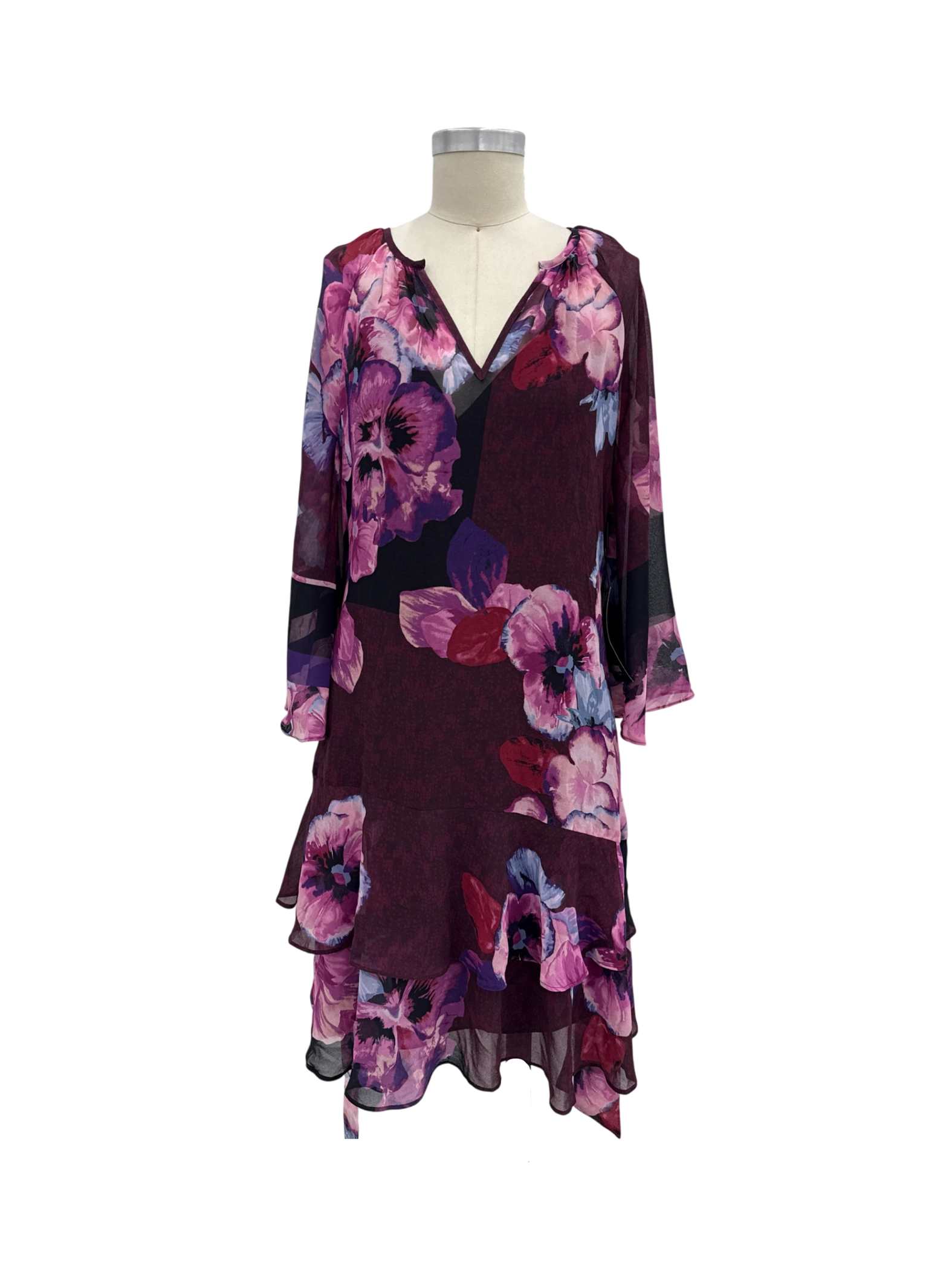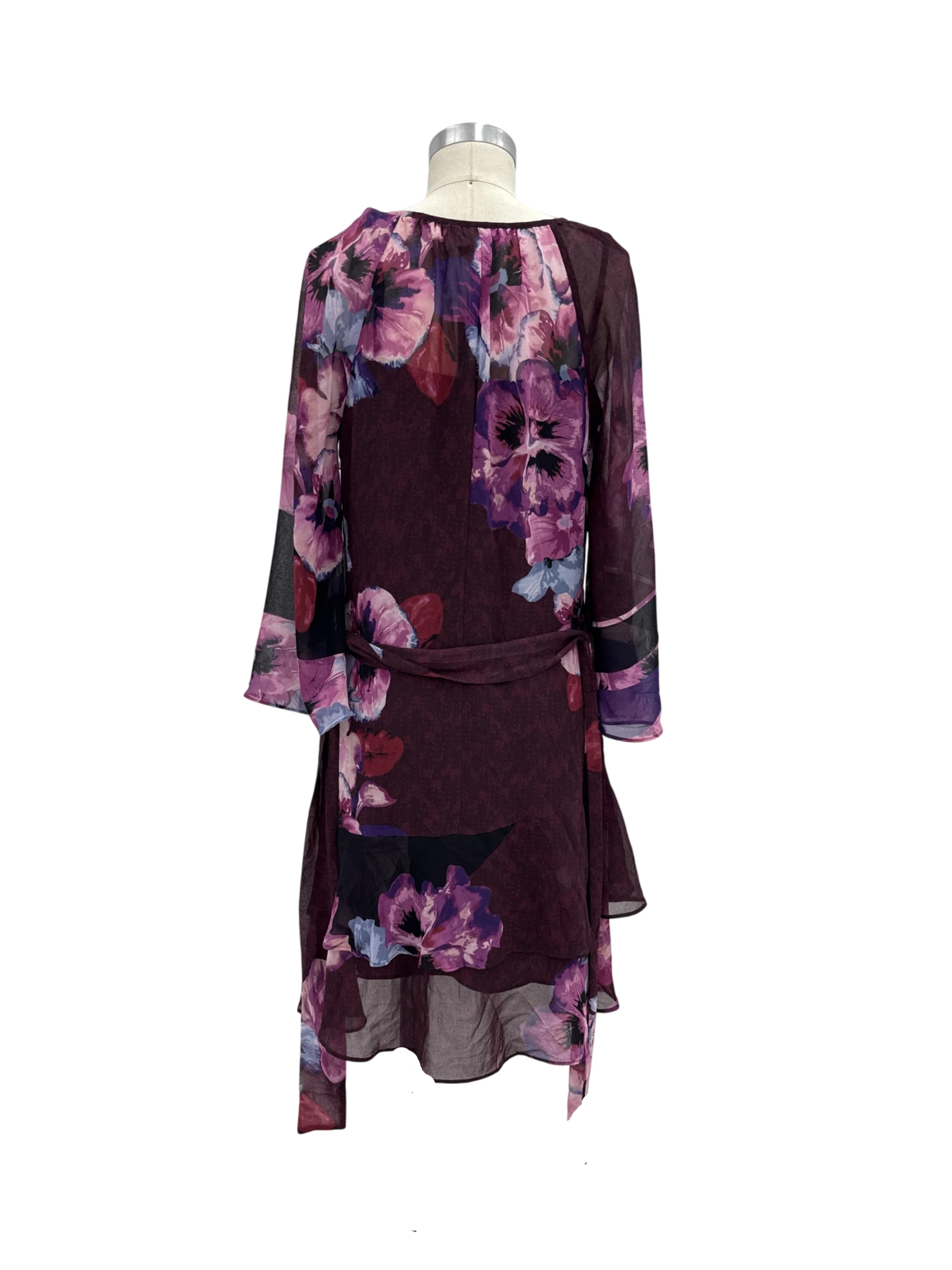 This beautiful pre-owned White House Black Market dress is a perfect choice for warm weather. This stylish dress is perfect for a casual outing or a spring gathering. The dress features a flattering V-neck, long sleeves, and a tiered skirt, creating a feminine silhouette. It is crafted from a lightweight, floral-print polyester fabric. It is a perfect addition to any wardrobe.