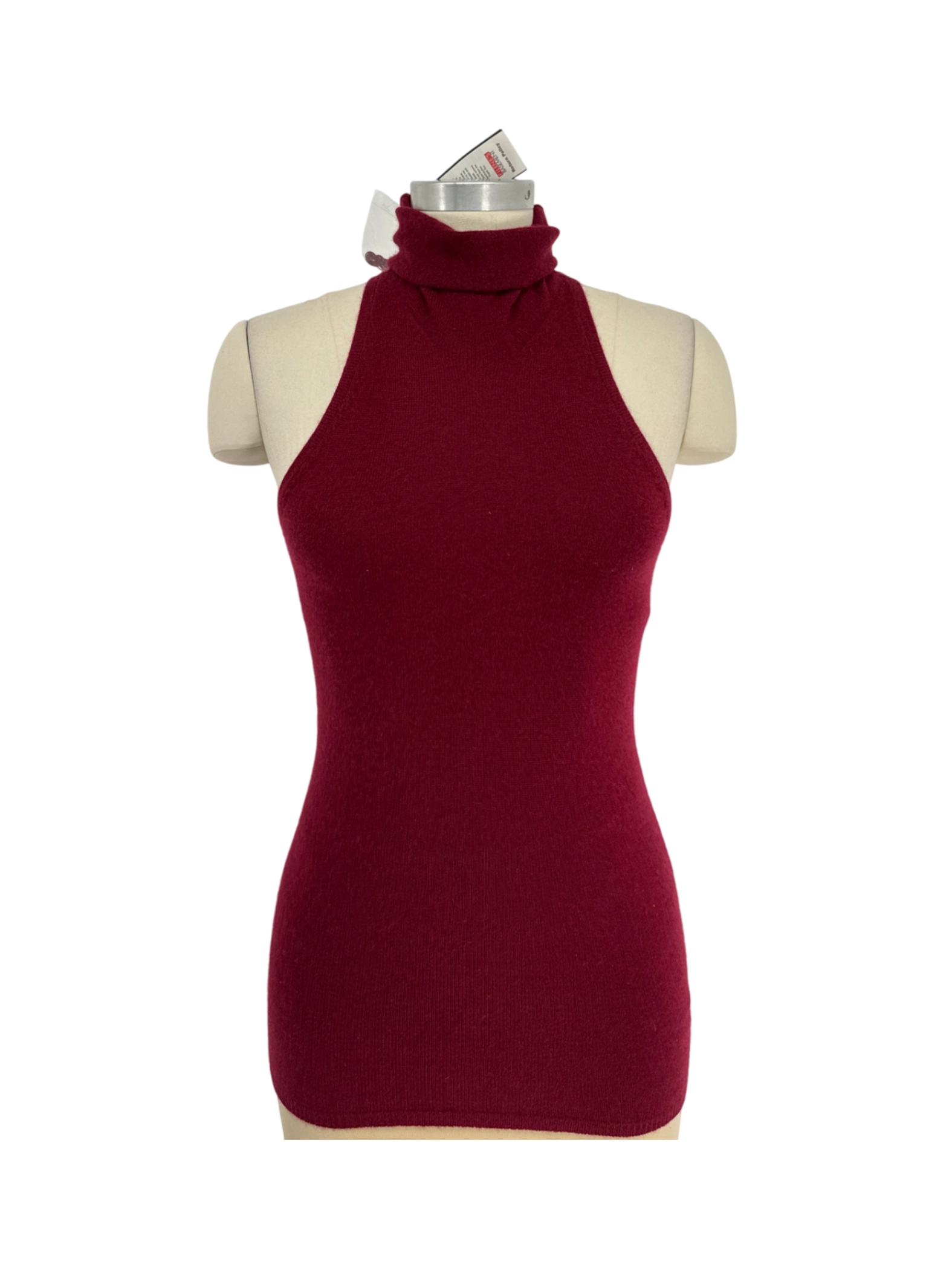 Elevate your wardrobe with this luxurious pre-owned White + Warren turtleneck tank top, crafted from 100% cashmere. The sleeveless design and turtleneck collar offer a chic and sophisticated look, perfect for layering or wearing on its own. The rich wine color adds a touch of elegance to any outfit, making it a versatile addition to your collection. This top is in excellent condition and ready to be worn.