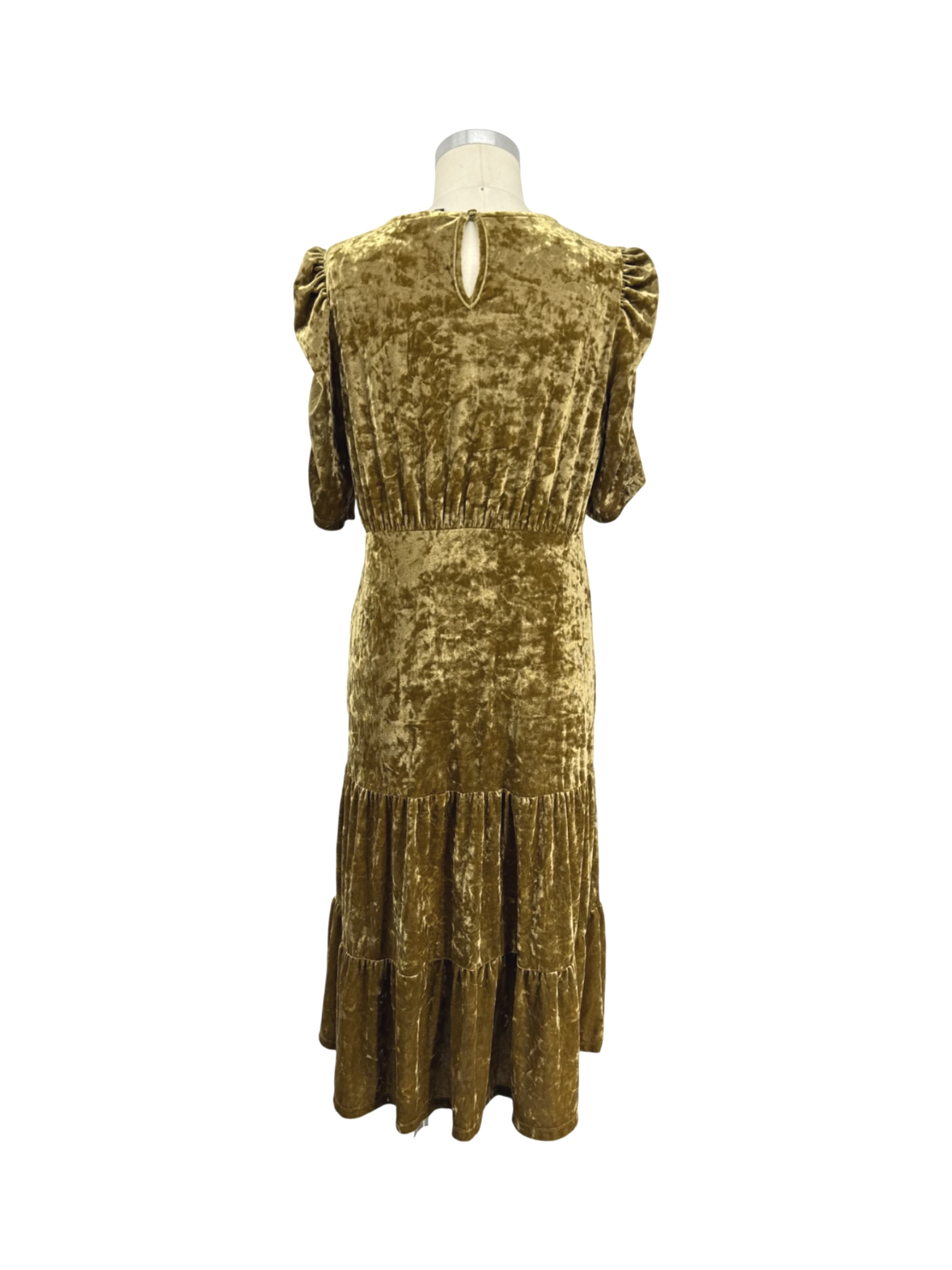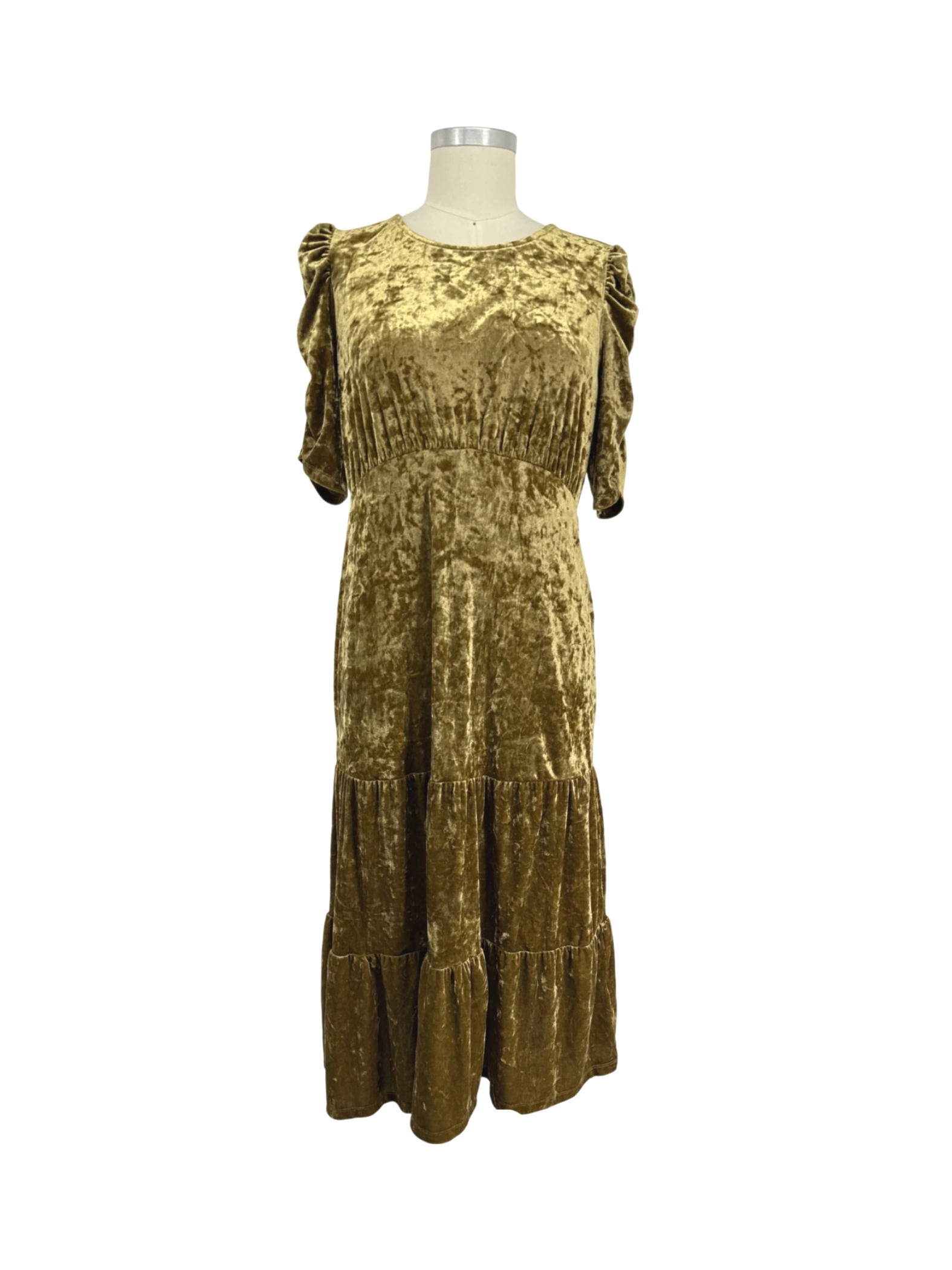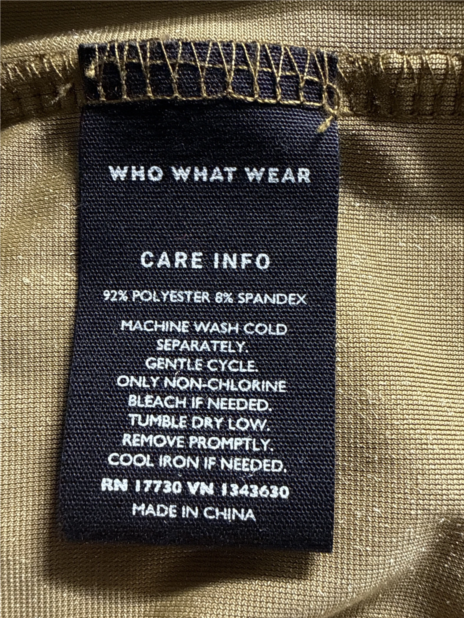 This pre-owned Who What Wear midi dress is a stylish addition to any wardrobe. The dress features a beautiful olive-brown hue, and a flattering A-line silhouette. Made from a soft velvet fabric, it offers both comfort and elegance. Perfect for fall and winter occasions, it's an easy-to-wear piece that can be dressed up or down. The dress is a size L and it's in great condition.