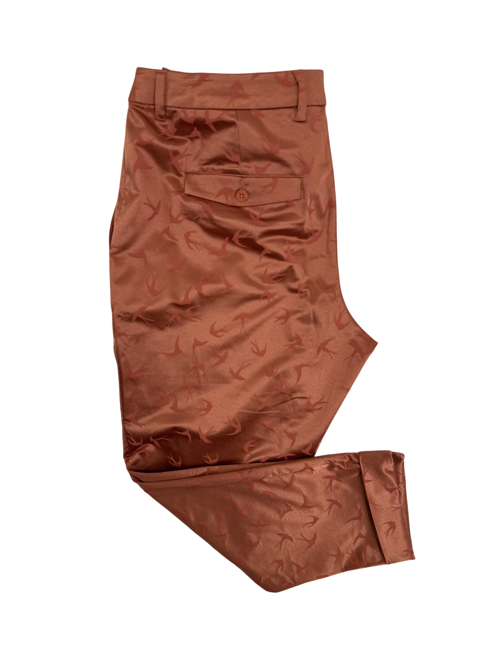 Elevate your wardrobe with these pre-owned WILDFANG pants! These stylish dress pants feature a beautiful brown floral pattern, perfect for spring and summer. Crafted from a blend of polyester, spandex, and cotton, they offer both comfort and durability. The straight leg cut and size 14 ensure a flattering fit. These versatile pants are a must-have for any fashion-forward individual looking for a unique and stylish piece. Get ready to make a statement!