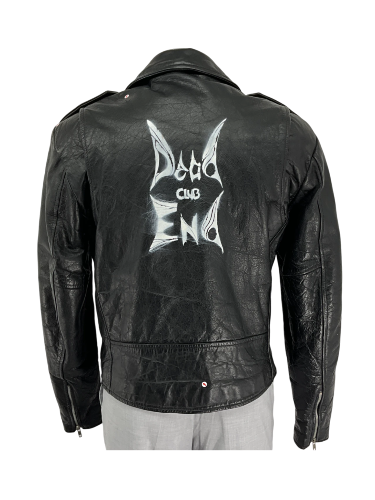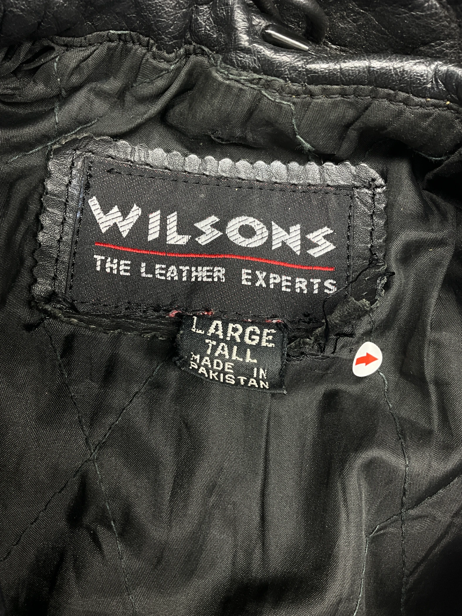 This is a men's classic black motorcycle biker jacket made of top-grade leather by Wilsons Leather.