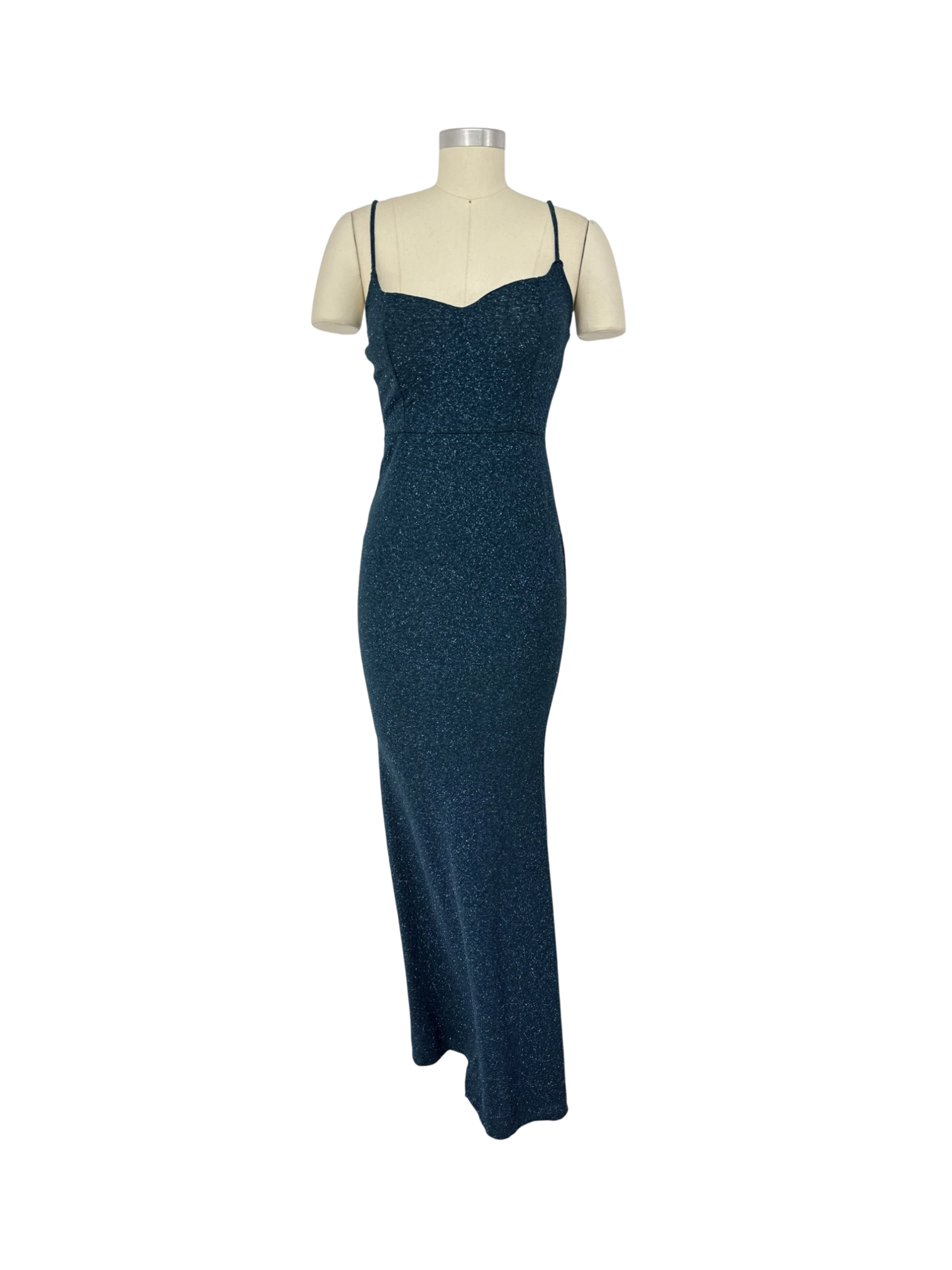 Elevate your evening look with this stunning pre-owned Windsor maxi dress. Crafted from a shimmering blue metallic fabric, this bodycon dress flatters your figure with its sleek silhouette and spaghetti straps. Perfect for parties or special occasions, this dress adds a touch of glamour to your wardrobe. Embrace timeless elegance with this beautiful piece that showcases sophistication and style. Its easy to style and make you feel like a goddess.