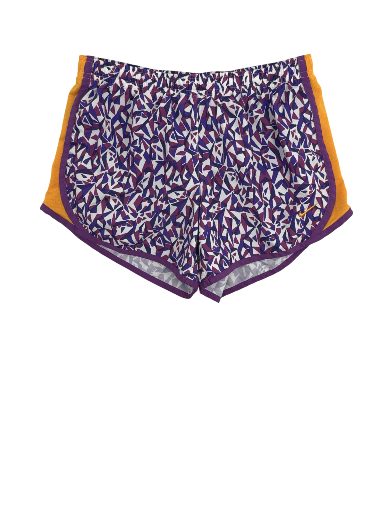 Step up your activewear game with these stylish Nike Dri-Fit shorts, perfect for your workouts! Designed for comfort and performance, these shorts feature a vibrant multicolor geometric pattern, making them a great choice for any activity. Made with quick-drying fabric, they keep you cool and dry. Excellent for running, gym sessions, or casual wear. This pre-owned piece is a sustainable and affordable option.