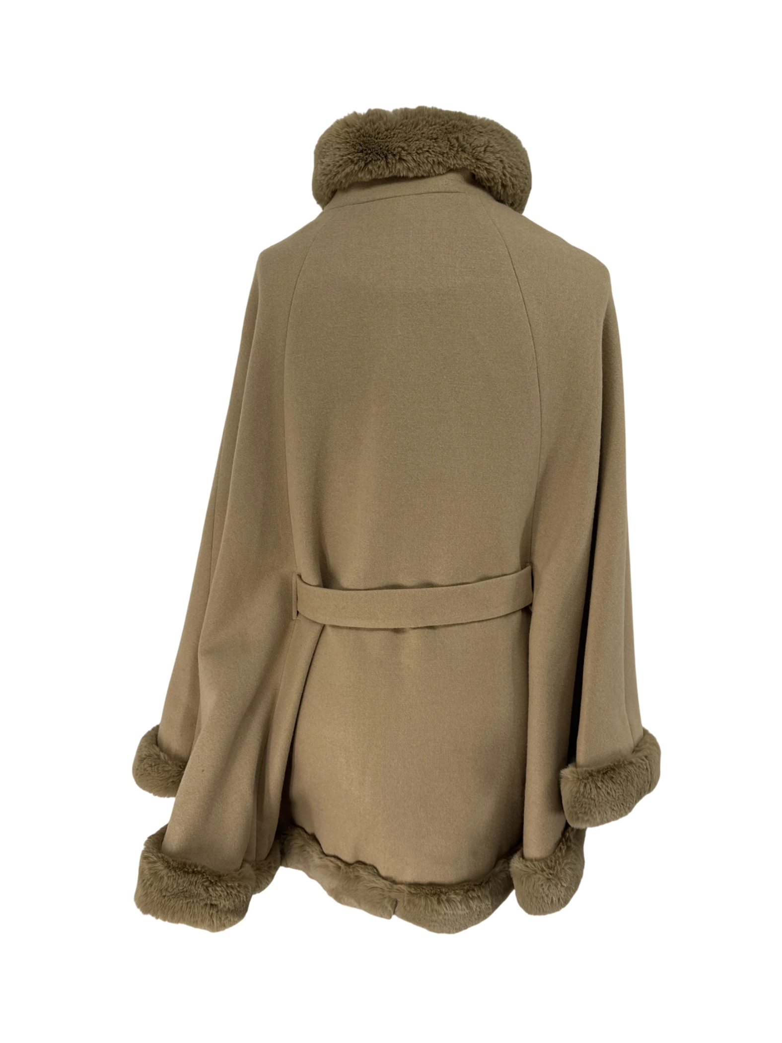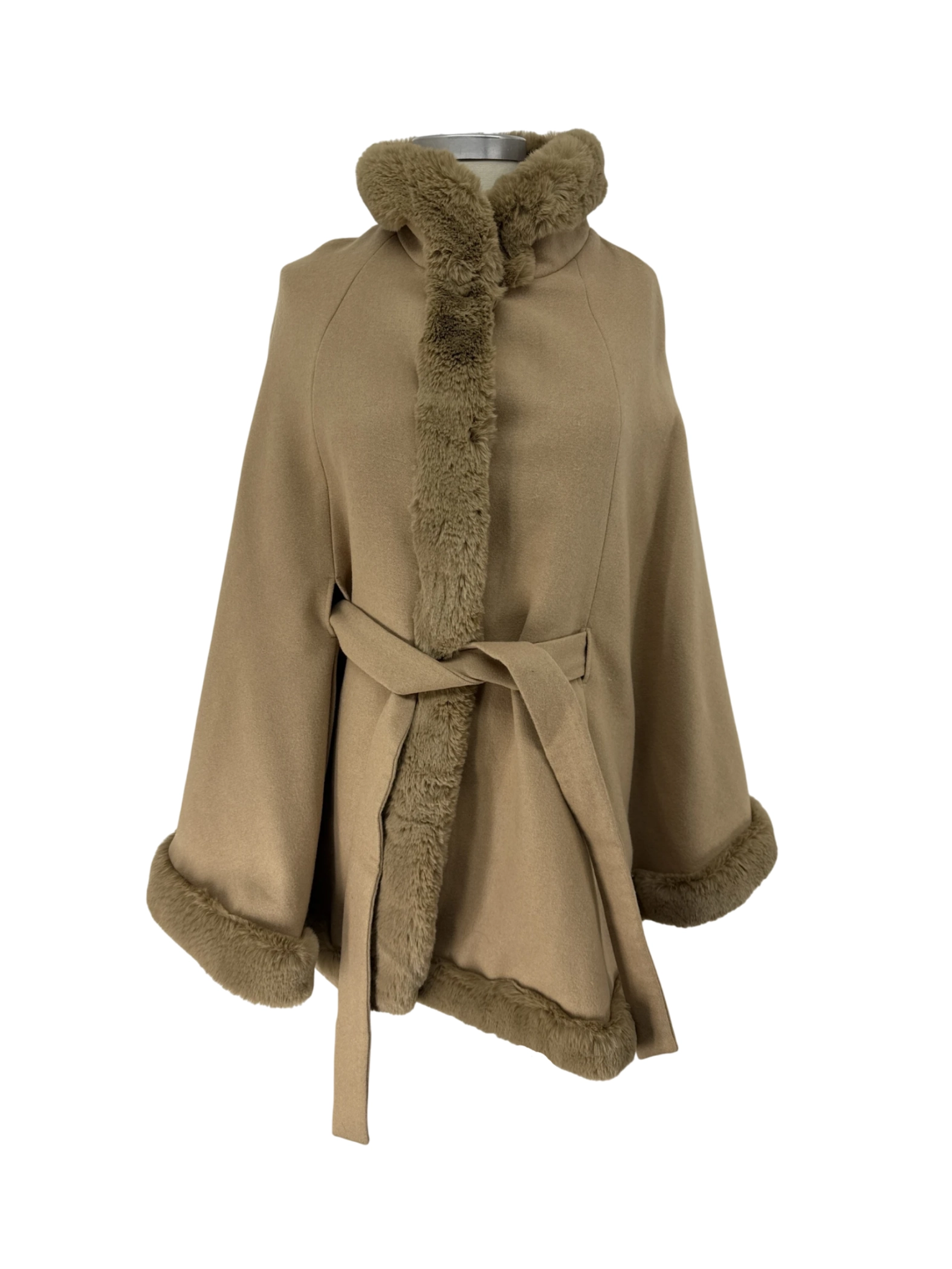 Elevate your winter wardrobe with this pre-owned Ashley Stewart coat. This stylish poncho-style coat features luxurious faux fur trim and a self-tie belt for a flattering fit. Made with a blend of polyester and rayon, it offers both warmth and elegance. Perfect for cooler weather, this coat is a must-have addition to your collection. This pre-owned garment is in great condition and ready to make a statement.