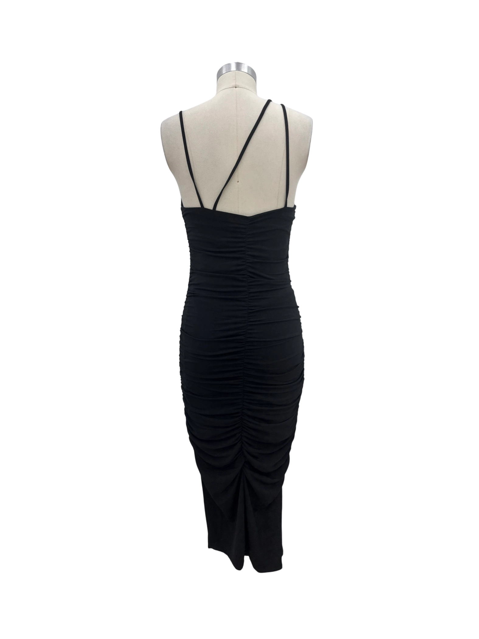 This Abercrombie & Fitch black bodycon dress is a chic and versatile addition to any wardrobe. Featuring a square neckline and a flattering ruched design, this midi dress is perfect for a night out or a casual day look. Made from a comfortable blend of polyester and spandex, it offers a sleek silhouette. Ideal for summer and spring, it's a stylish choice for any occasion.