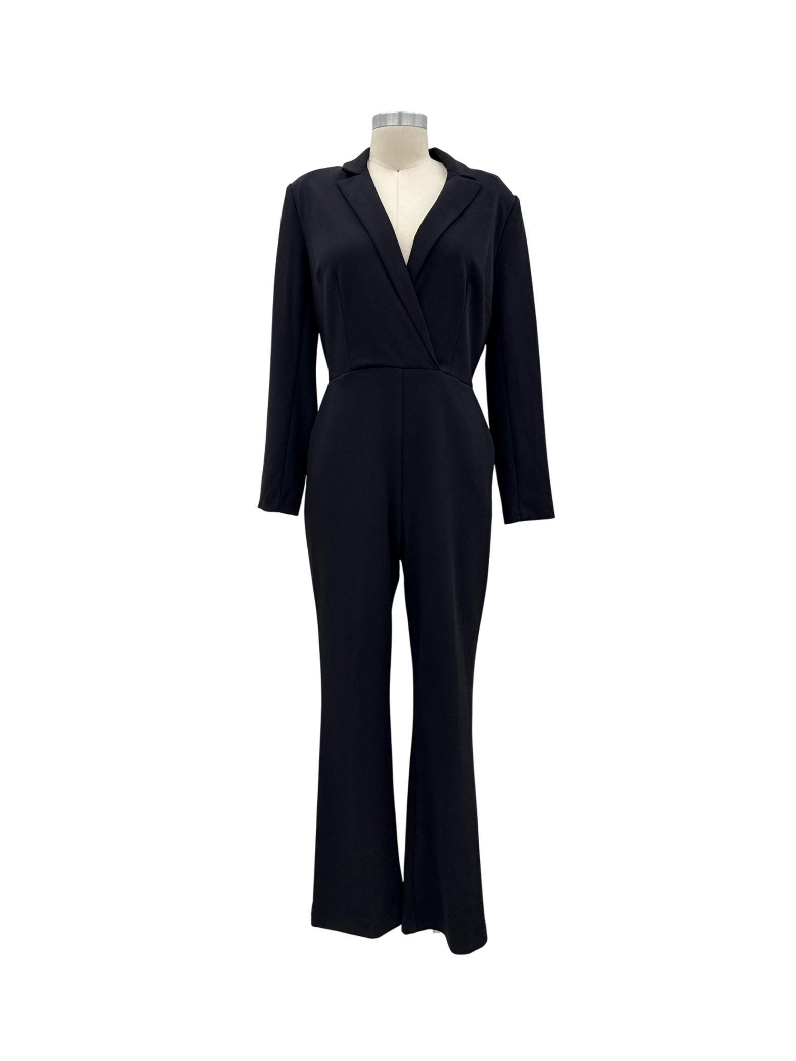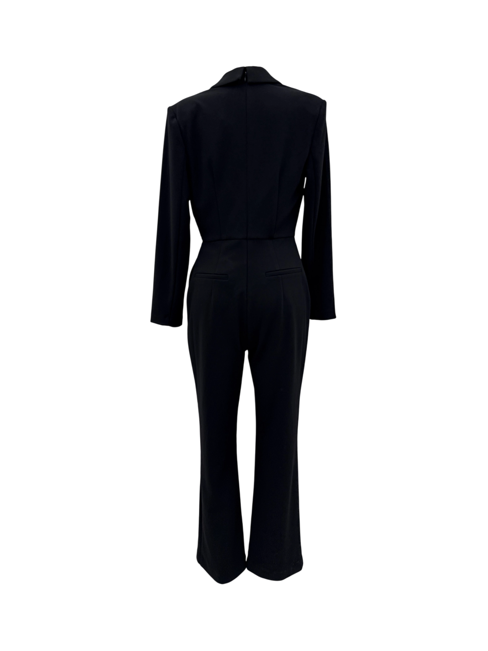 Elevate your wardrobe with this sleek, pre-owned black jumpsuit from Express. This sophisticated one-piece outfit is perfect for both casual and cocktail occasions. It features a classic V-neck, long sleeves, and a tailored fit for a flattering silhouette. Made from a comfortable blend of polyester and spandex, this jumpsuit offers both style and ease of movement. Ideal for Fall, this jumpsuit is a versatile addition to any closet.