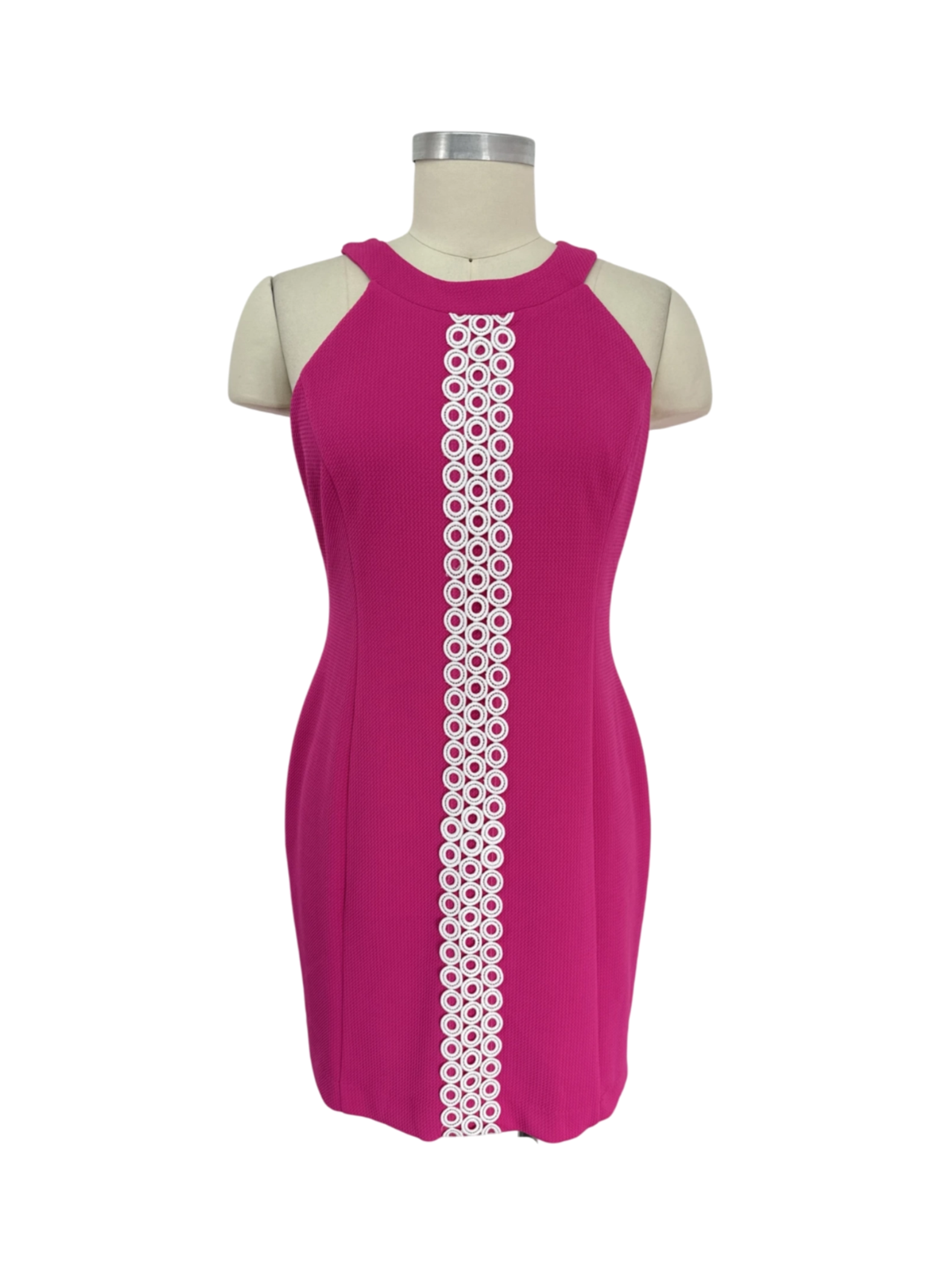 This pre-owned J Howard dress is a stylish choice for a night out. The dress features a vibrant pink color with white accenting details. Crafted with a blend of polyester and spandex, it offers a comfortable fit. The A-line silhouette and sleeveless design make it perfect for warmer weather. The dress is in excellent condition and ready to wear. This stylish dress is perfect for any occasion. A perfect dress for any occasion.
