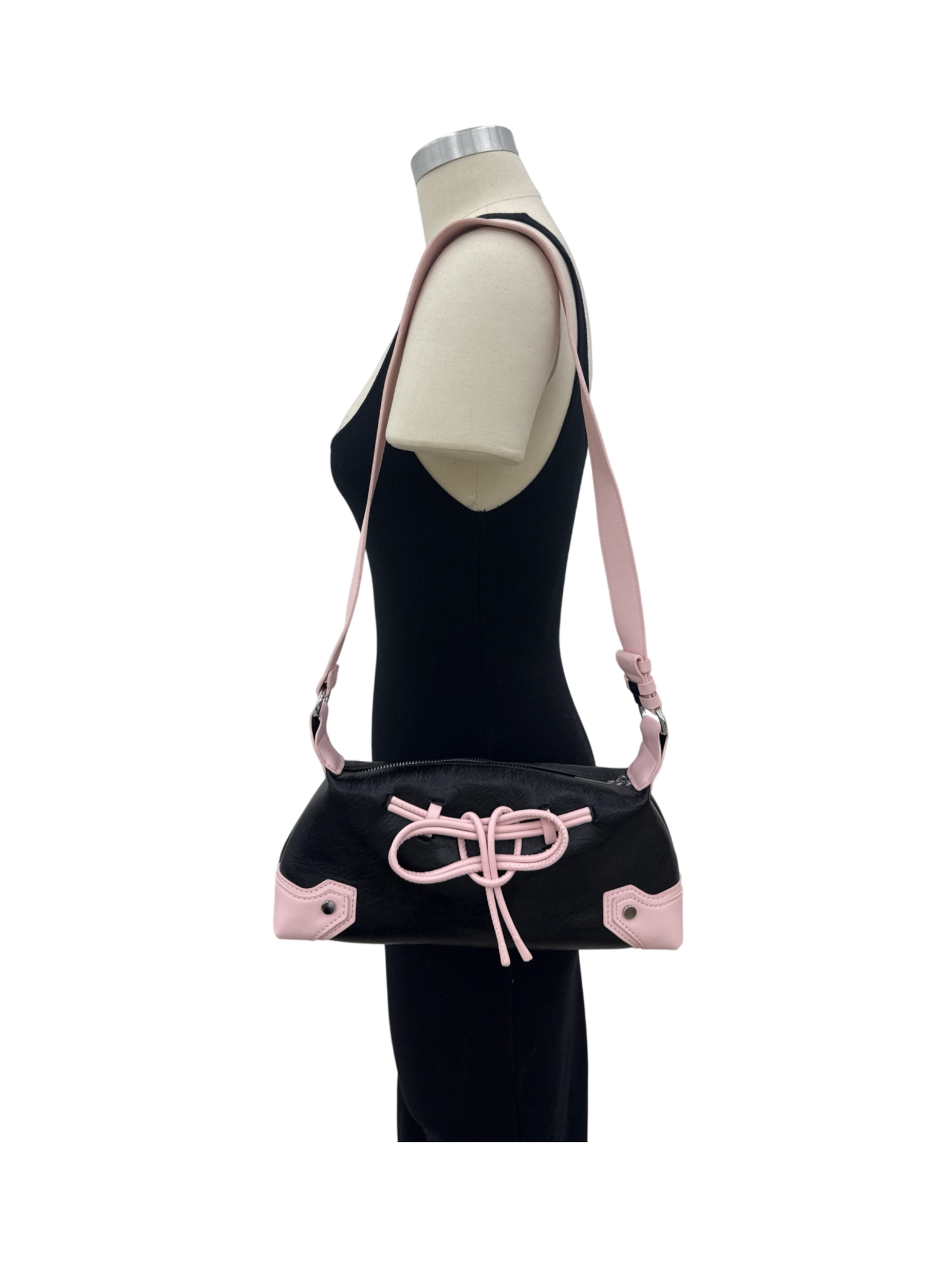 This stylish secondhand handbag is the perfect accessory for any outfit. Featuring a chic design with a contrasting black body and pink accents, this shoulder bag offers both style and functionality. It's spacious enough to carry your essentials while maintaining a sleek, modern look. The bag is crafted from leather, ensuring durability. This versatile piece is ideal for adding a pop of color to your ensemble.