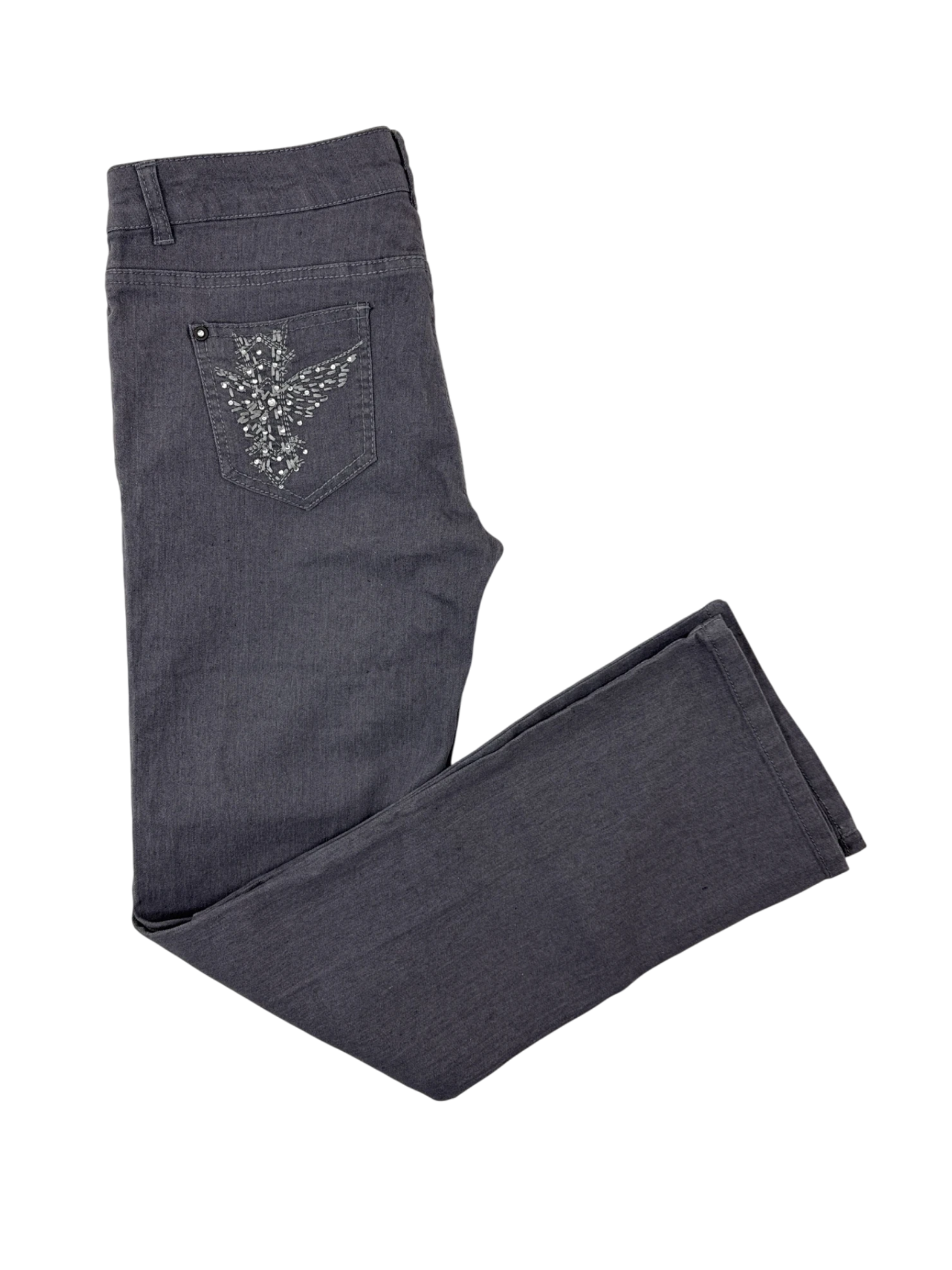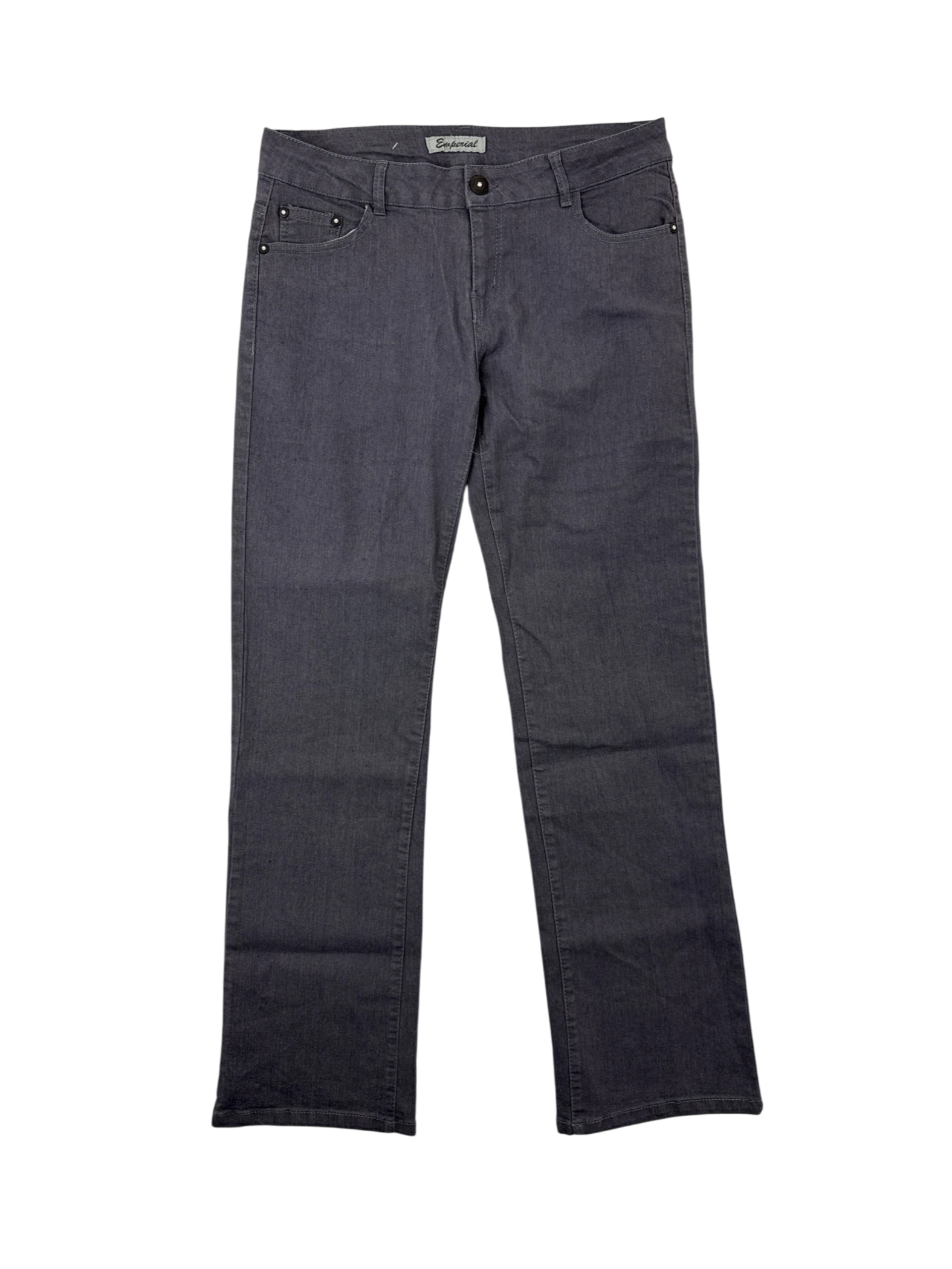 These Emperial gray jeans offer a classic, straight-leg fit, perfect for any wardrobe. Made from durable denim, they are designed for comfort and style. The medium wash adds a touch of versatility, making them suitable for both casual and slightly dressier occasions. These pre-owned jeans provide a timeless look, ideal for everyday wear, ensuring a fashionable yet functional choice.