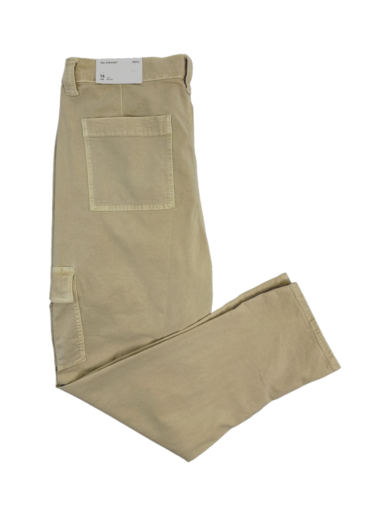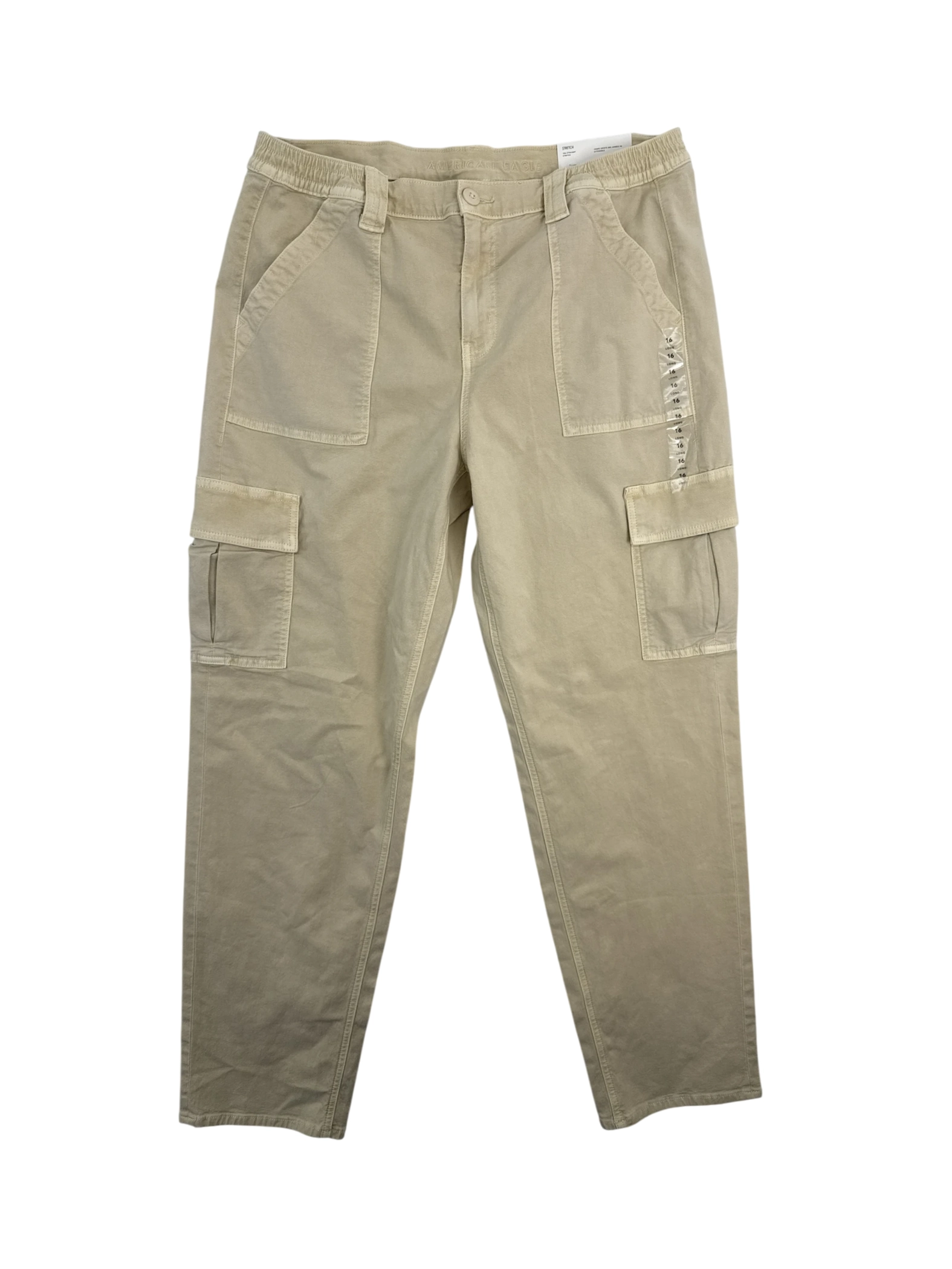 These pre-owned American Eagle cargo pants in a versatile khaki color offer a comfortable and stylish fit. Crafted with a cotton blend, they feature a classic straight leg, multiple pockets, and a flattering design. Perfect for casual wear or outdoor activities, these pants combine durability and style for a timeless addition to any wardrobe.