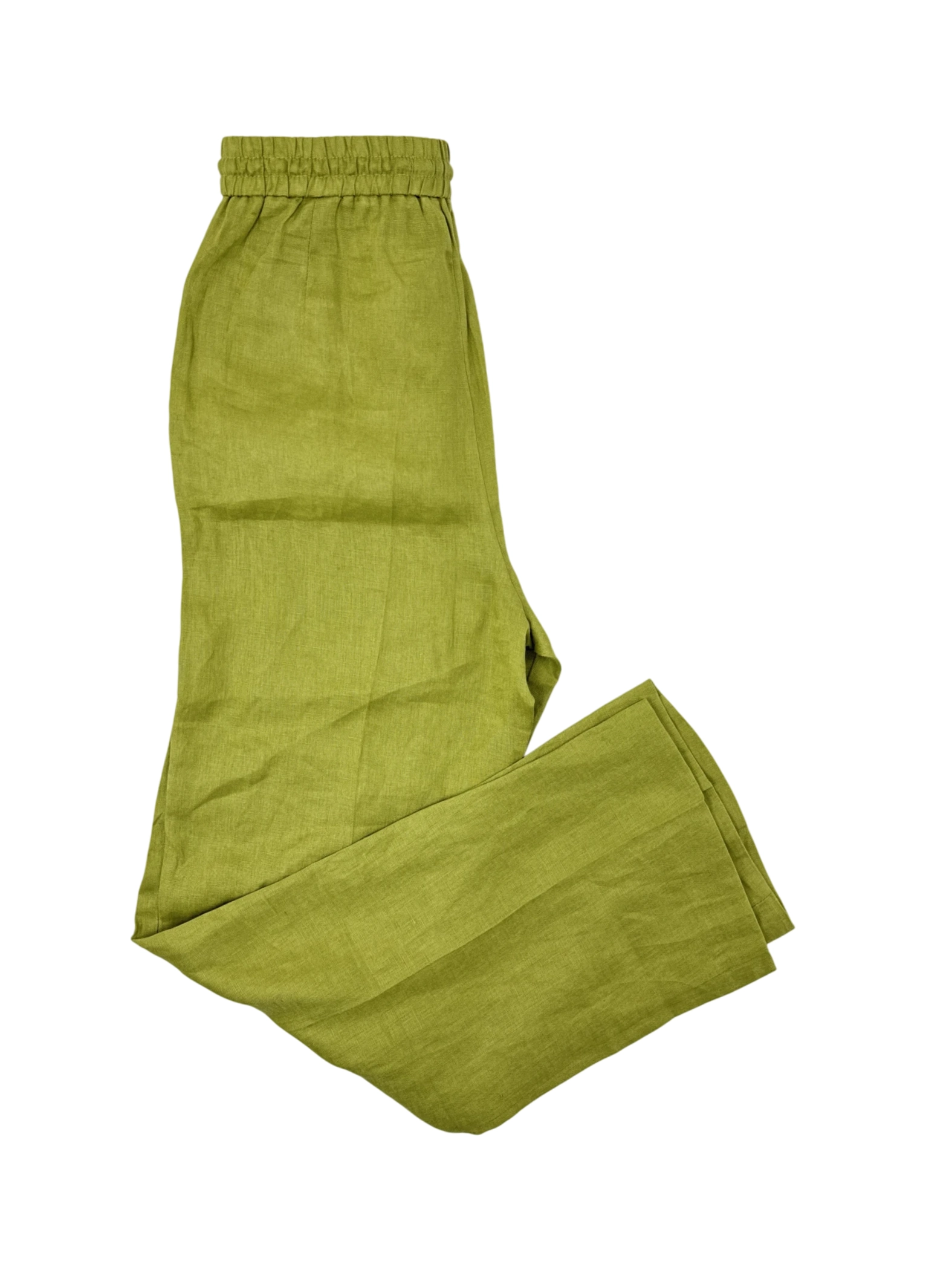 Elevate your summer wardrobe with these stylish pre-owned Zara linen pants. These pants feature a wide leg design, comfortable fit, and a beautiful green color, perfect for warm weather. Made from 100% linen, offering breathability and a luxurious feel. These pants are a versatile addition to any closet, ideal for casual outings or dressed up for special occasions.