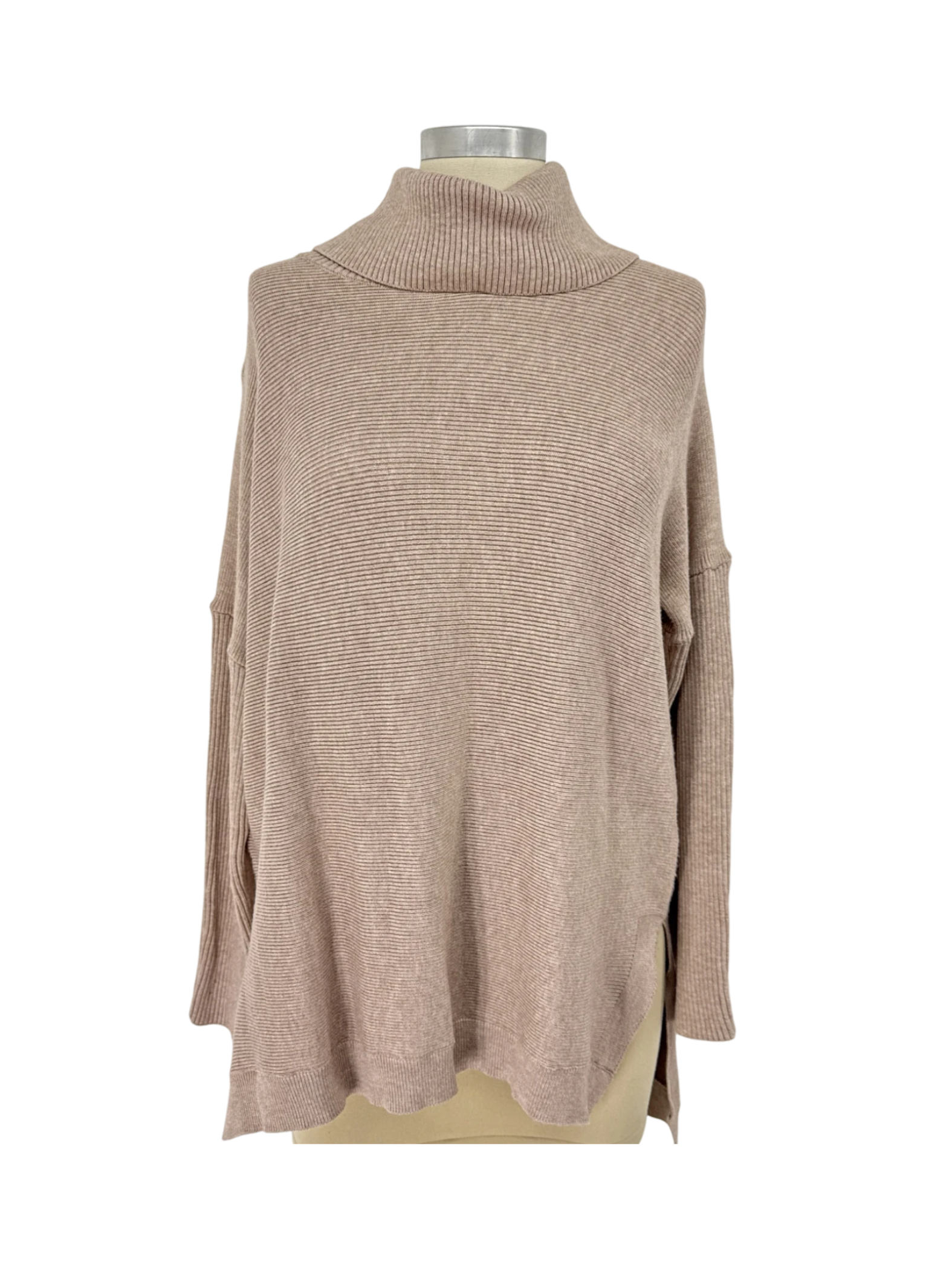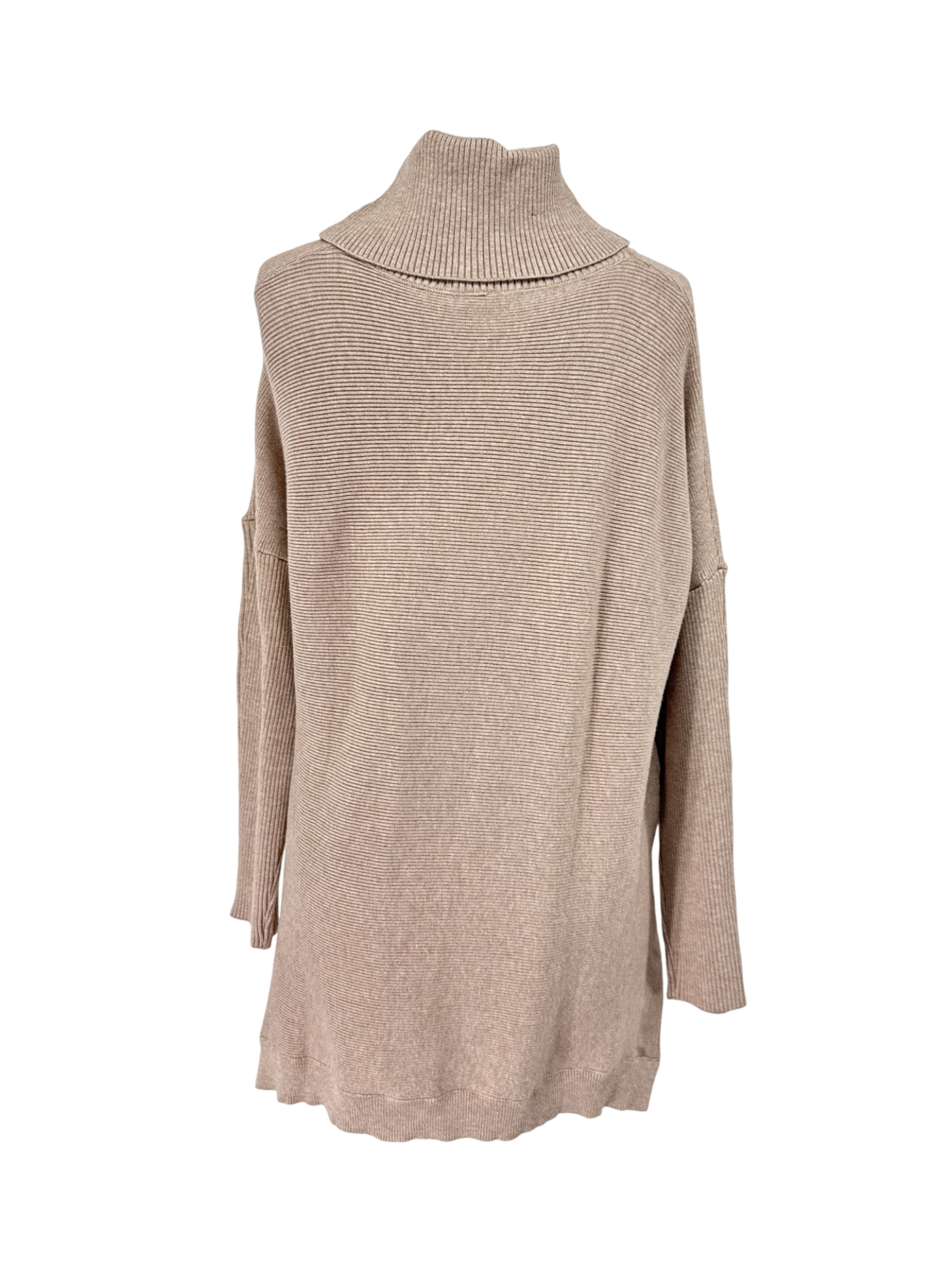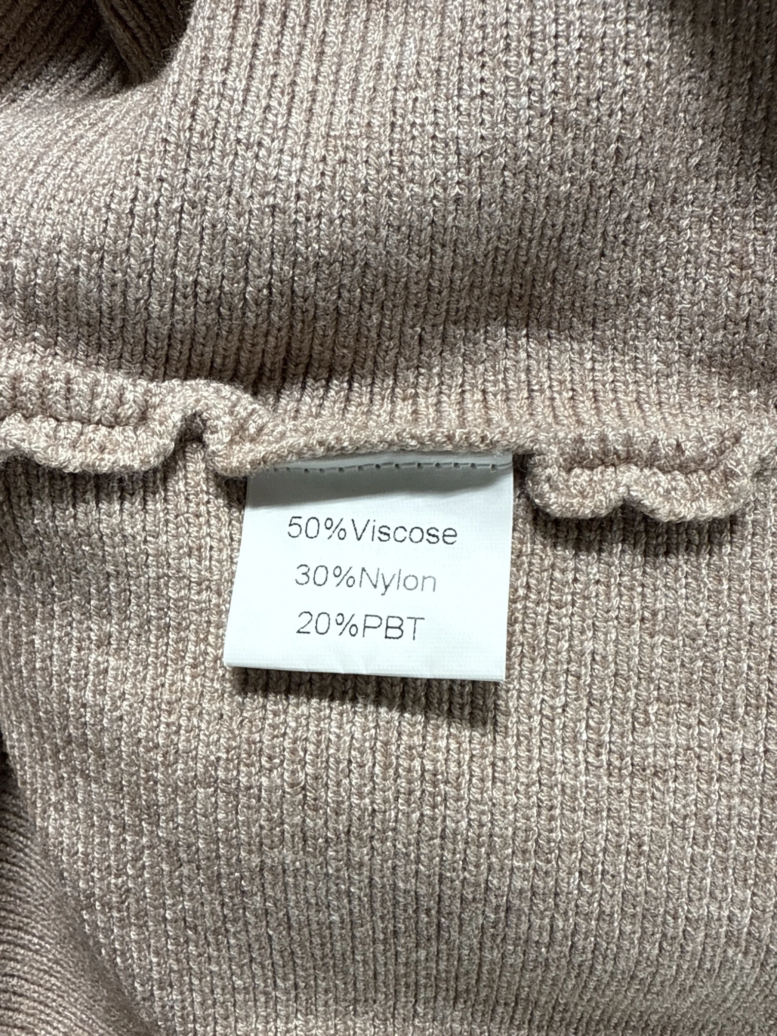 Elevate your wardrobe with this pre-owned RACHEL ZOE sweater. This luxurious turtleneck features a flattering fit and a soft, ribbed texture. The versatile beige color makes it a perfect staple for any season, easily paired with jeans or a skirt. Crafted from a comfortable blend of viscose, nylon, and PBT, this sweater offers both style and comfort. Its timeless design ensures it remains a chic addition to your collection for years to come.