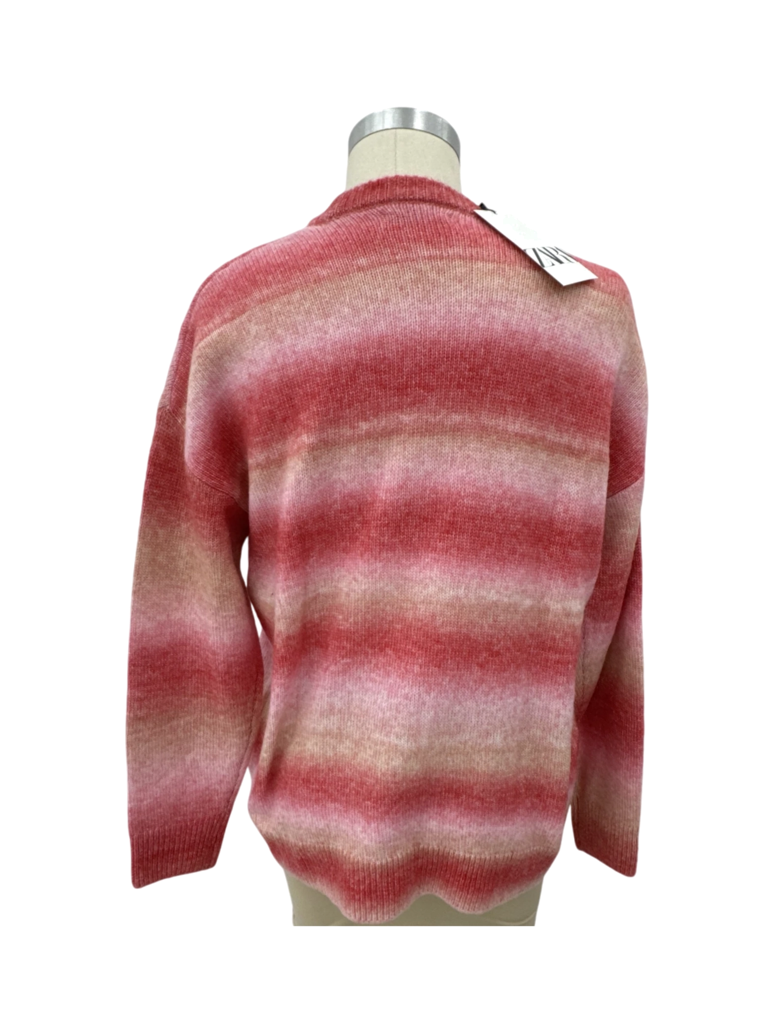 Elevate your wardrobe with this stylish Zara sweater. This pre-owned piece showcases a beautiful striped pattern in shades of pink, perfect for adding a pop of color to your outfit. Made with a blend of acrylic, nylon, and wool, this sweater offers both comfort and warmth. With a classic round neck and a versatile pullover style, this sweater is ideal for both casual and dressier occasions. It's a great choice for those looking for a fashionable and sustainable addition to their collection.