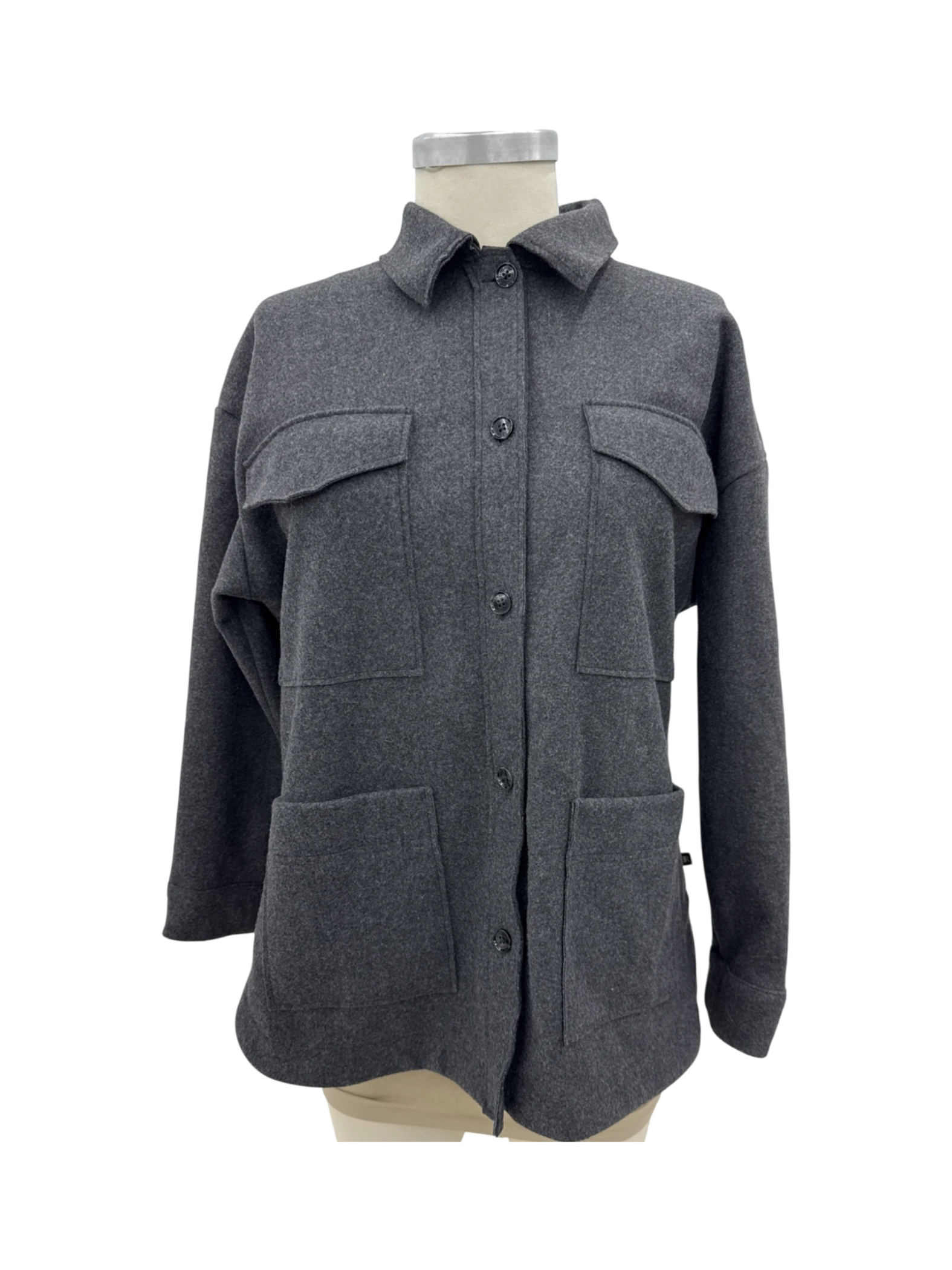 Elevate your wardrobe with this stylish pre-owned Banana Republic top. Crafted from comfortable polyester, this jacket features a sleek design, perfect for layering. With a classic collar and button-up front, it offers both sophistication and versatility. Ideal for the fall and winter seasons, this top can be dressed up or down. Get ready to turn heads with this effortlessly chic piece. The gray color adds a touch of sophistication to any outfit, making it a must-have addition to your collection. This piece is perfect for everyday wear.