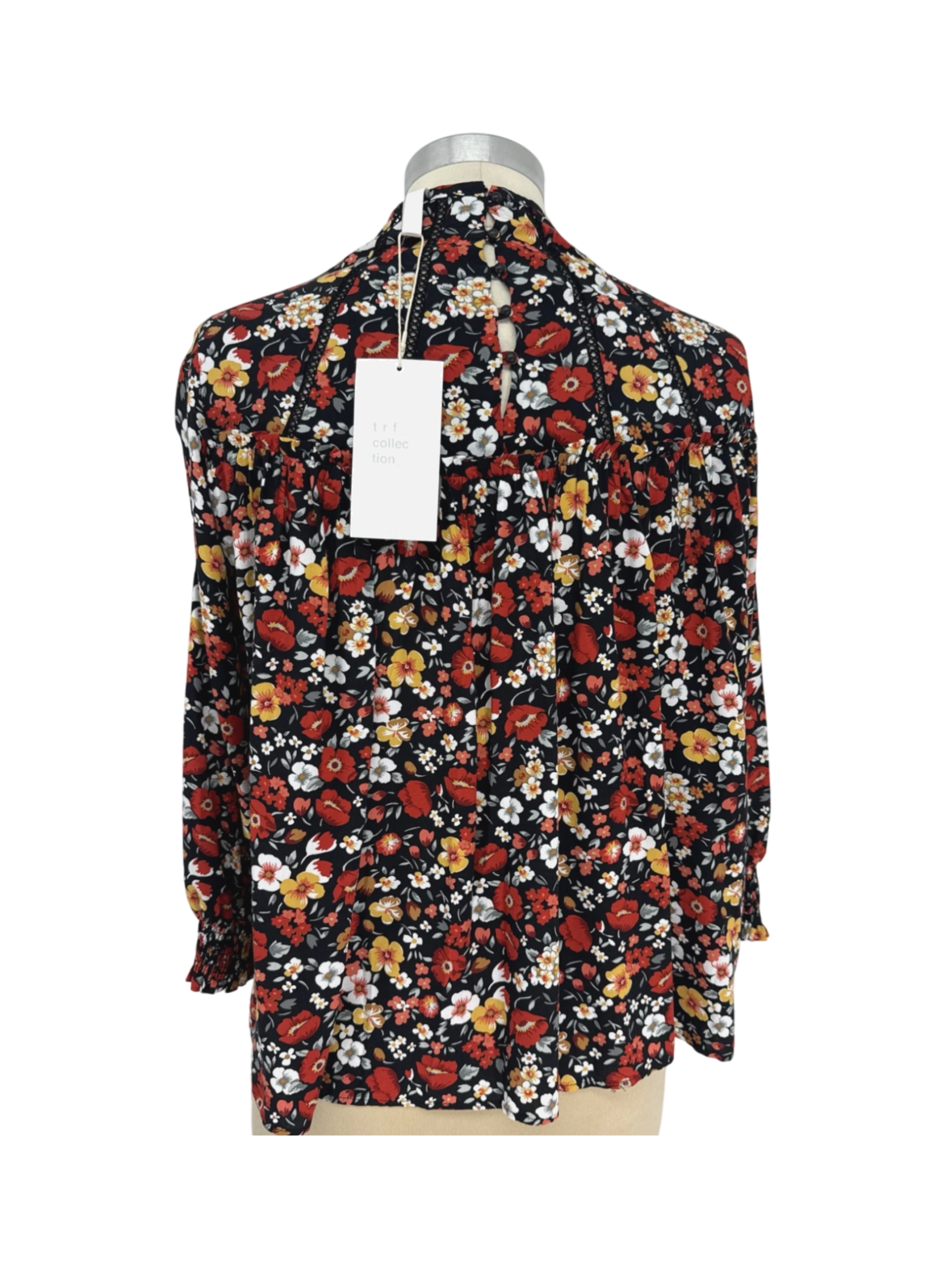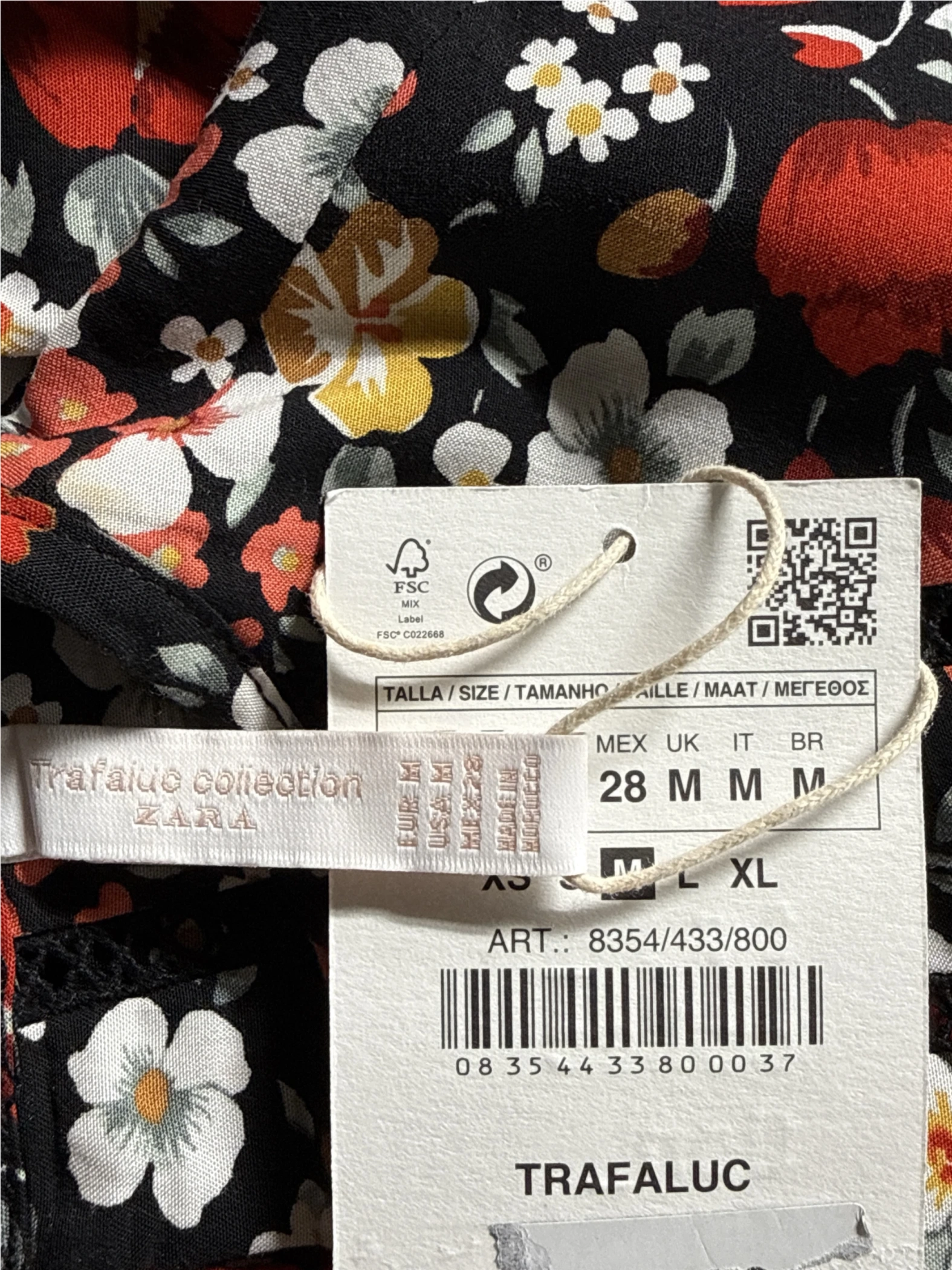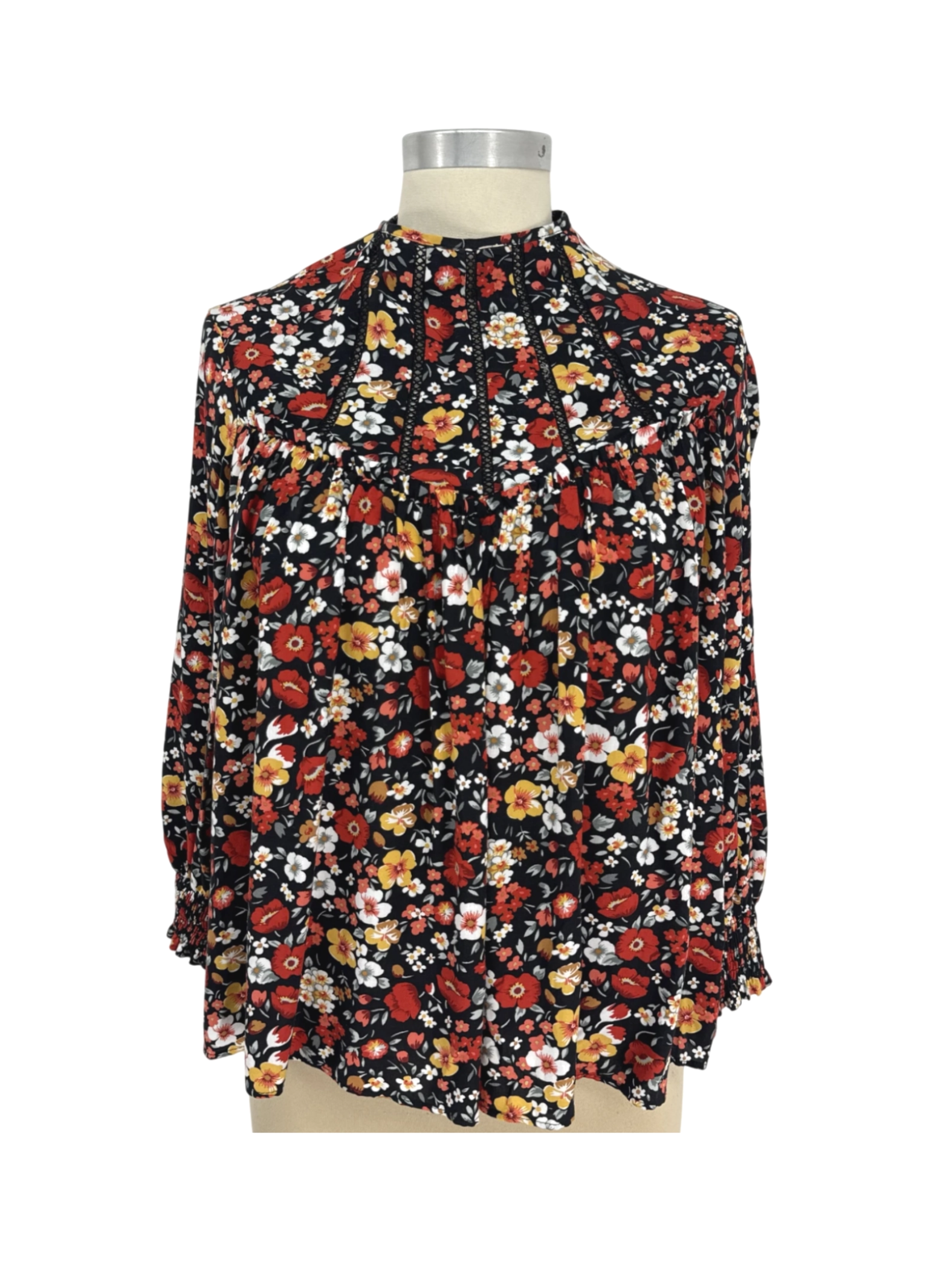 This beautiful pre-owned Zara blouse features a vibrant floral print with a flattering mock neck and long sleeves. Crafted from a flowy viscose fabric, this top is perfect for the spring and fall seasons. The size L blouse showcases a stylish and feminine design that can be dressed up or down. A versatile and chic addition to any wardrobe.