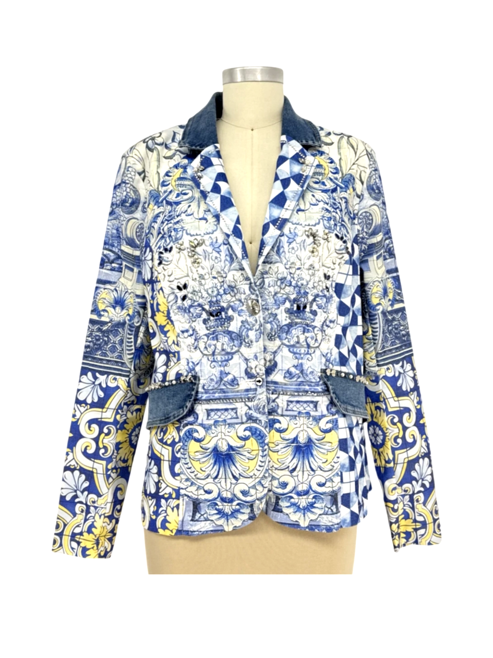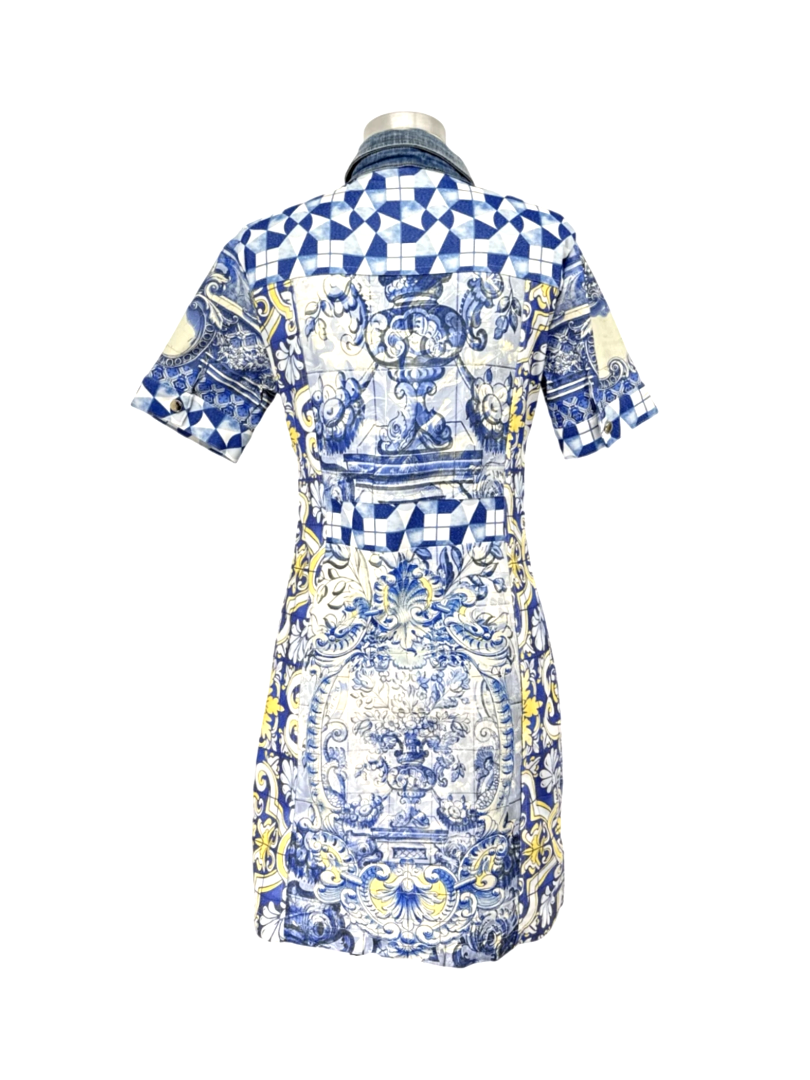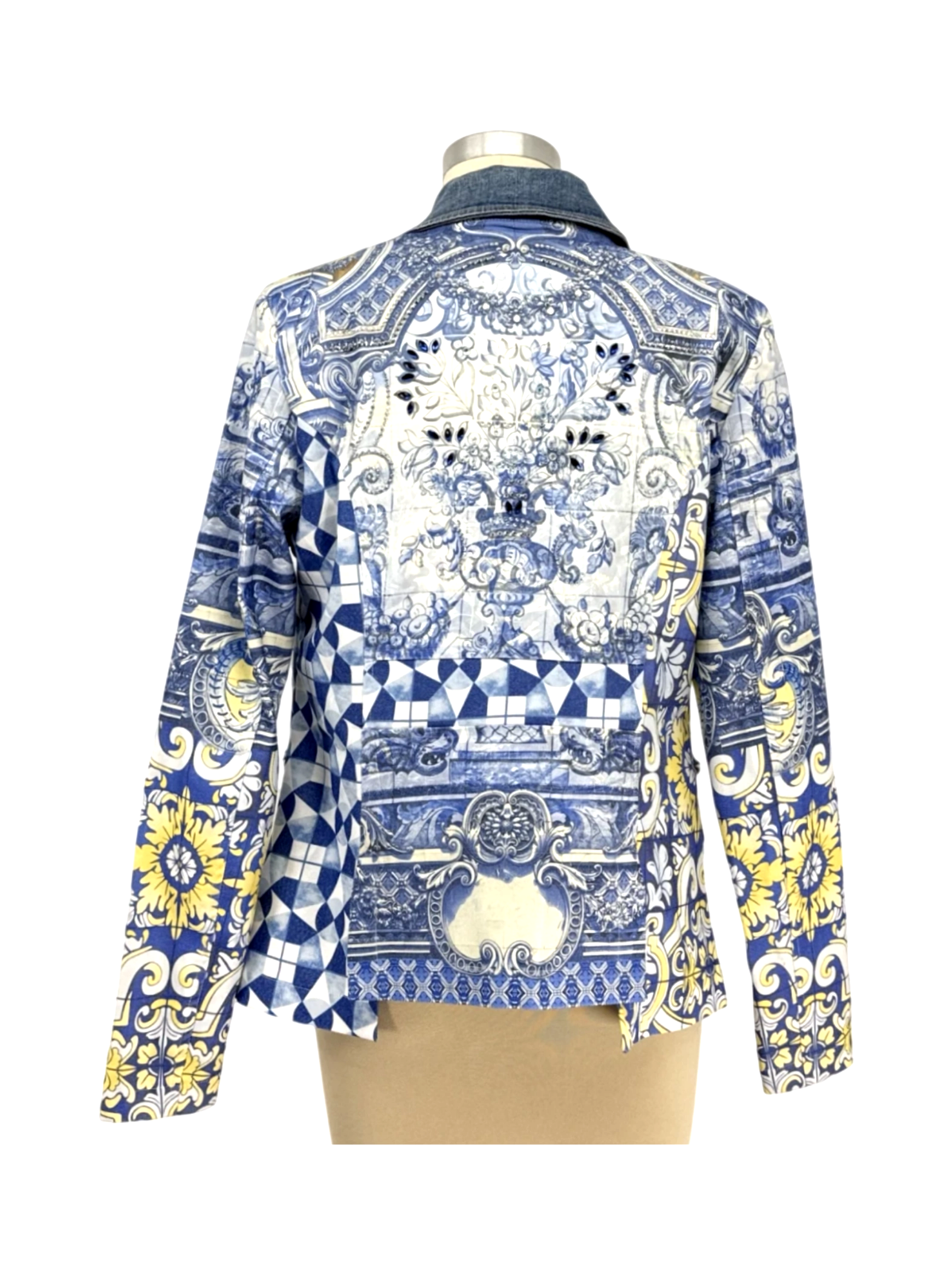 Vintage 90's Dress with jacket - This unique pre-owned women's set from Mascara features a stunning blue floral patterned dress with denim accents, perfect for a summer look. The set exudes elegance with its intricate design and lightweight feel. This dress is perfect for a brunch date or a casual evening out. Elevate your wardrobe with this beautiful set and make a statement wherever you go. A fashionable and comfortable choice that is both stylish and sustainable.