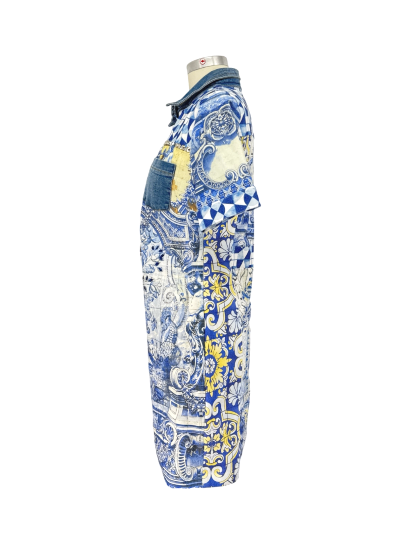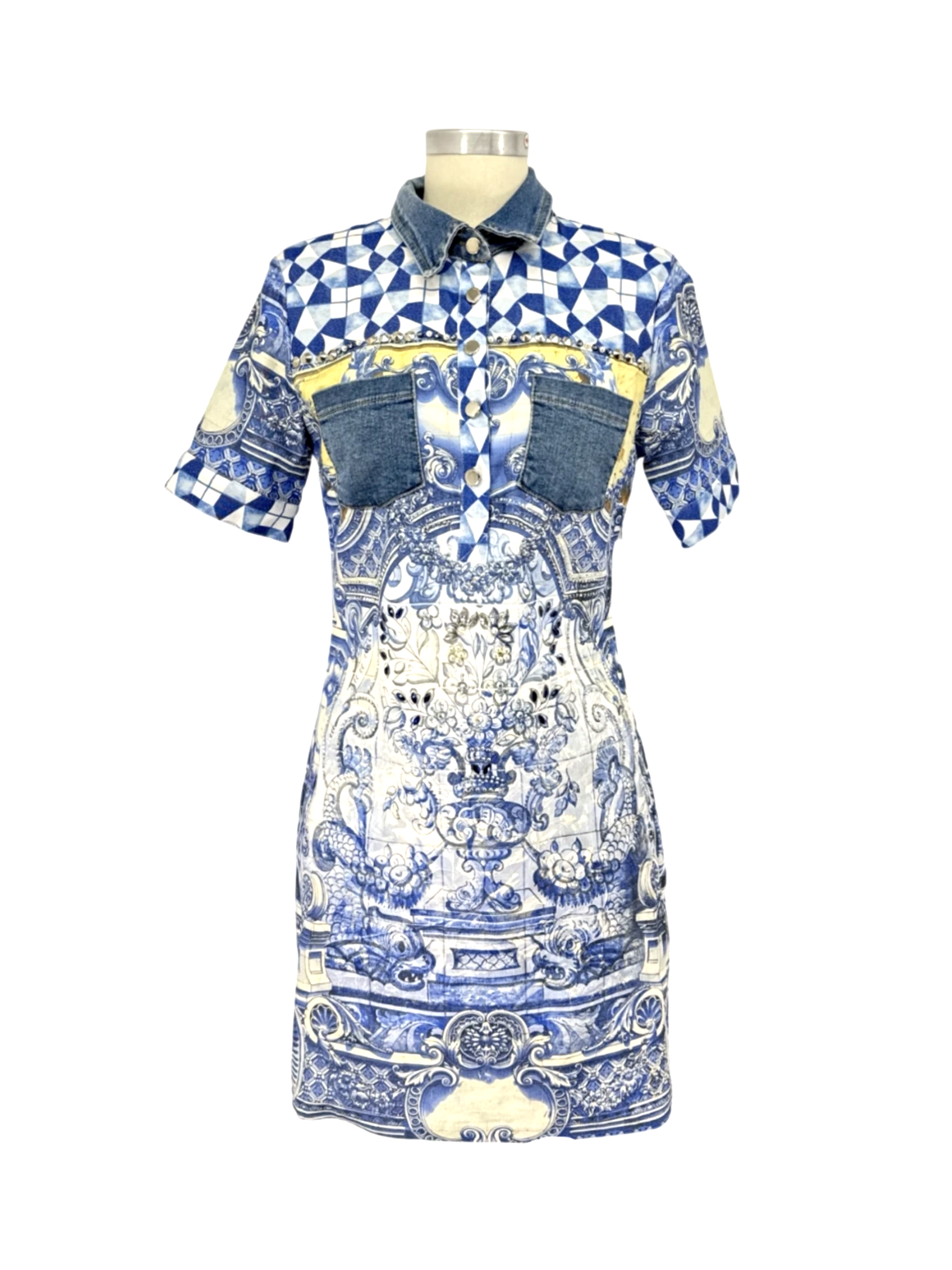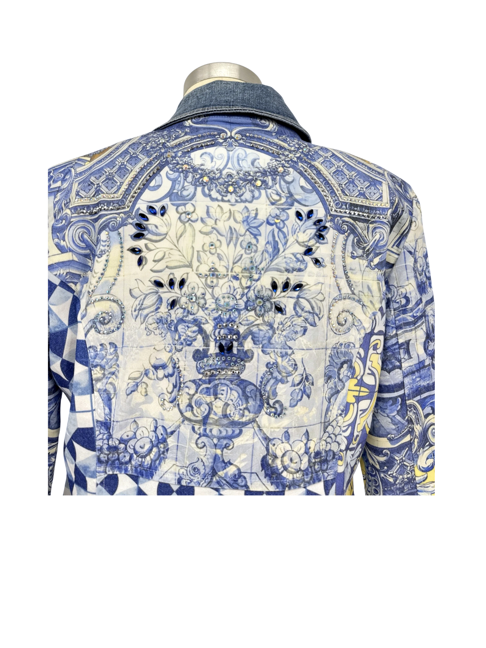Vintage 90's Dress with jacket - This unique pre-owned women's set from Mascara features a stunning blue floral patterned dress with denim accents, perfect for a summer look. The set exudes elegance with its intricate design and lightweight feel. This dress is perfect for a brunch date or a casual evening out. Elevate your wardrobe with this beautiful set and make a statement wherever you go. A fashionable and comfortable choice that is both stylish and sustainable.