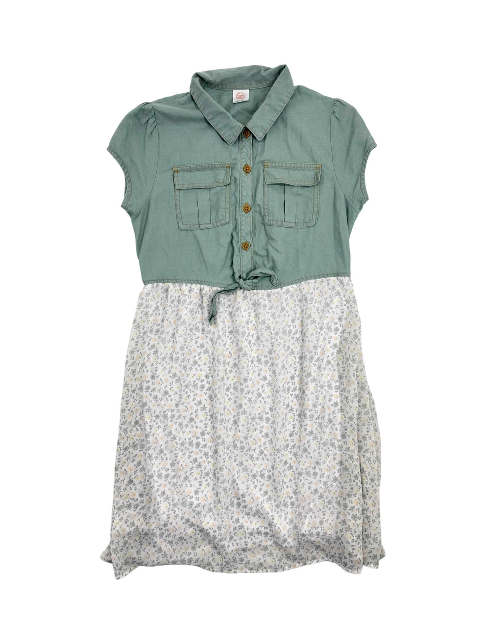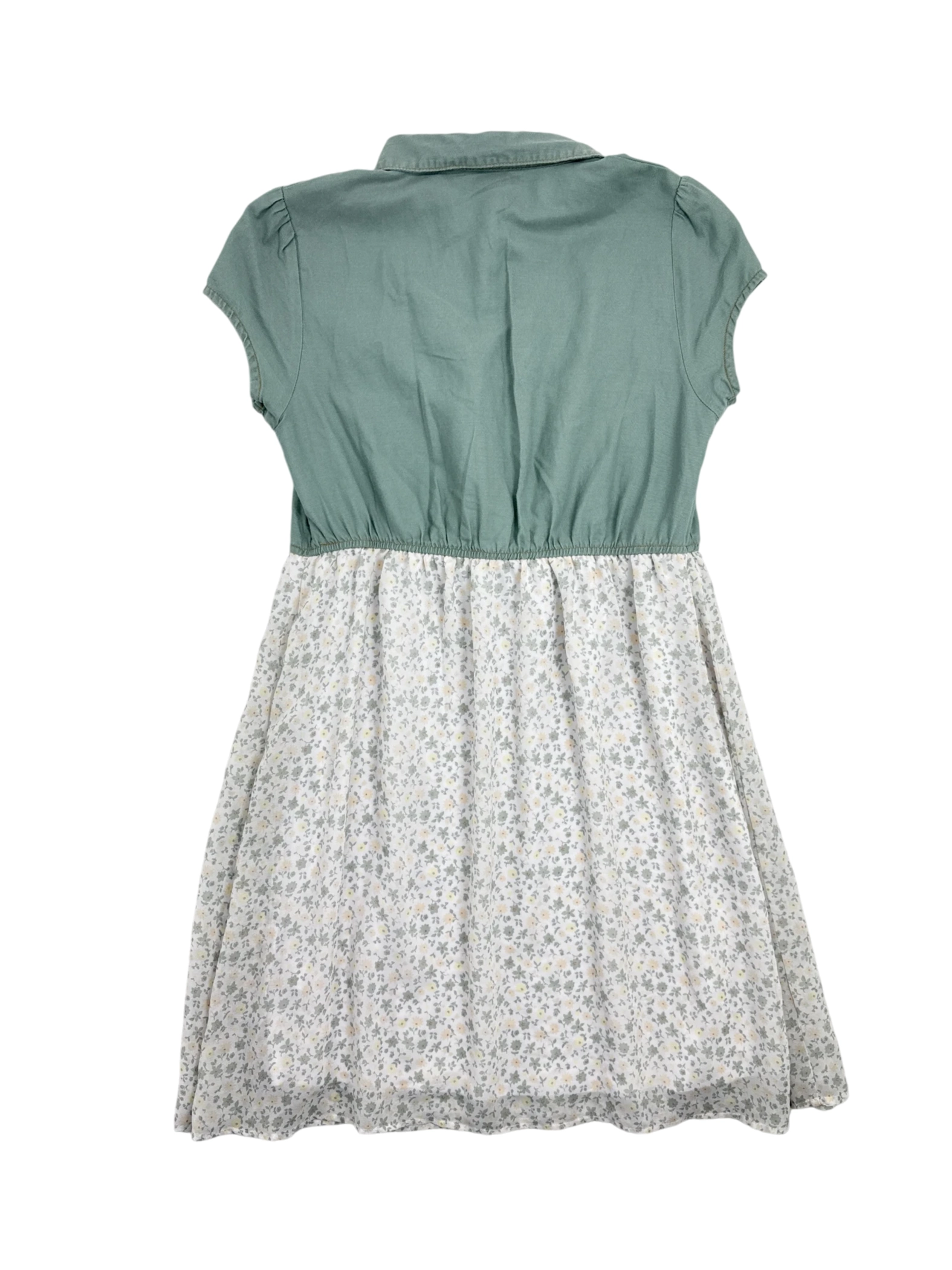 This adorable Wonder Nation dress for girls is perfect for warm weather! It features a stylish combination of a green bodice with button details and a floral printed skirt. It is made with a blend of comfortable materials and is designed in an A-line silhouette for a flattering fit. Perfect for casual wear or any special occasion. This dress is a pre-loved item in great condition. - This adorable Wonder Nation dress for girls is a perfect blend of comfort and style. Featuring a charming floral skirt and a green bodice, this A-line dress is made with a mix of cotton, lyocell, and polyester, ideal for warm weather. The dress is designed with a classic collar, short sleeves, and a flattering fit. Its comfortable design makes it perfect for everyday wear. This pre-owned dress is in excellent condition, ready to bring joy to a new wardrobe.