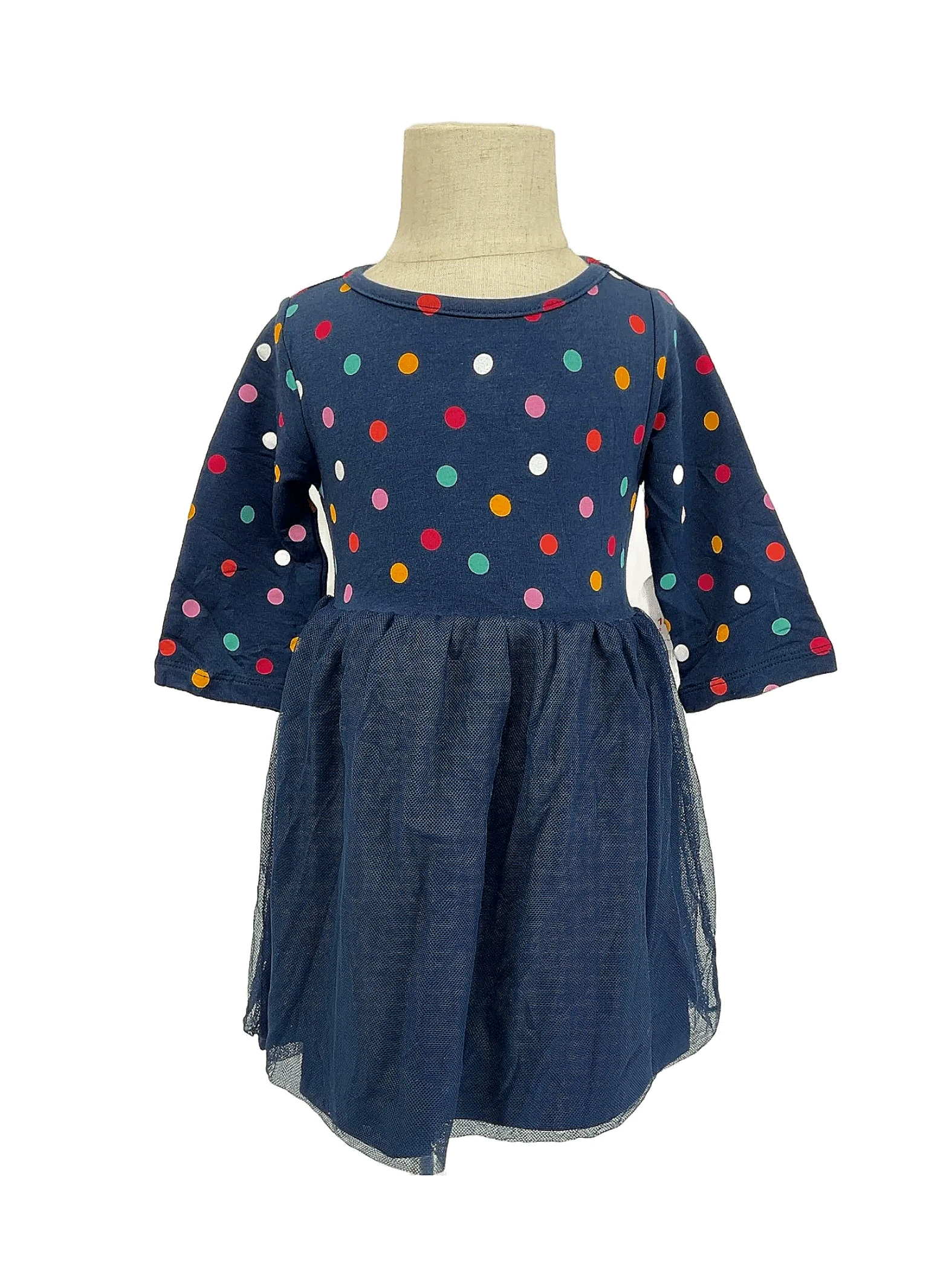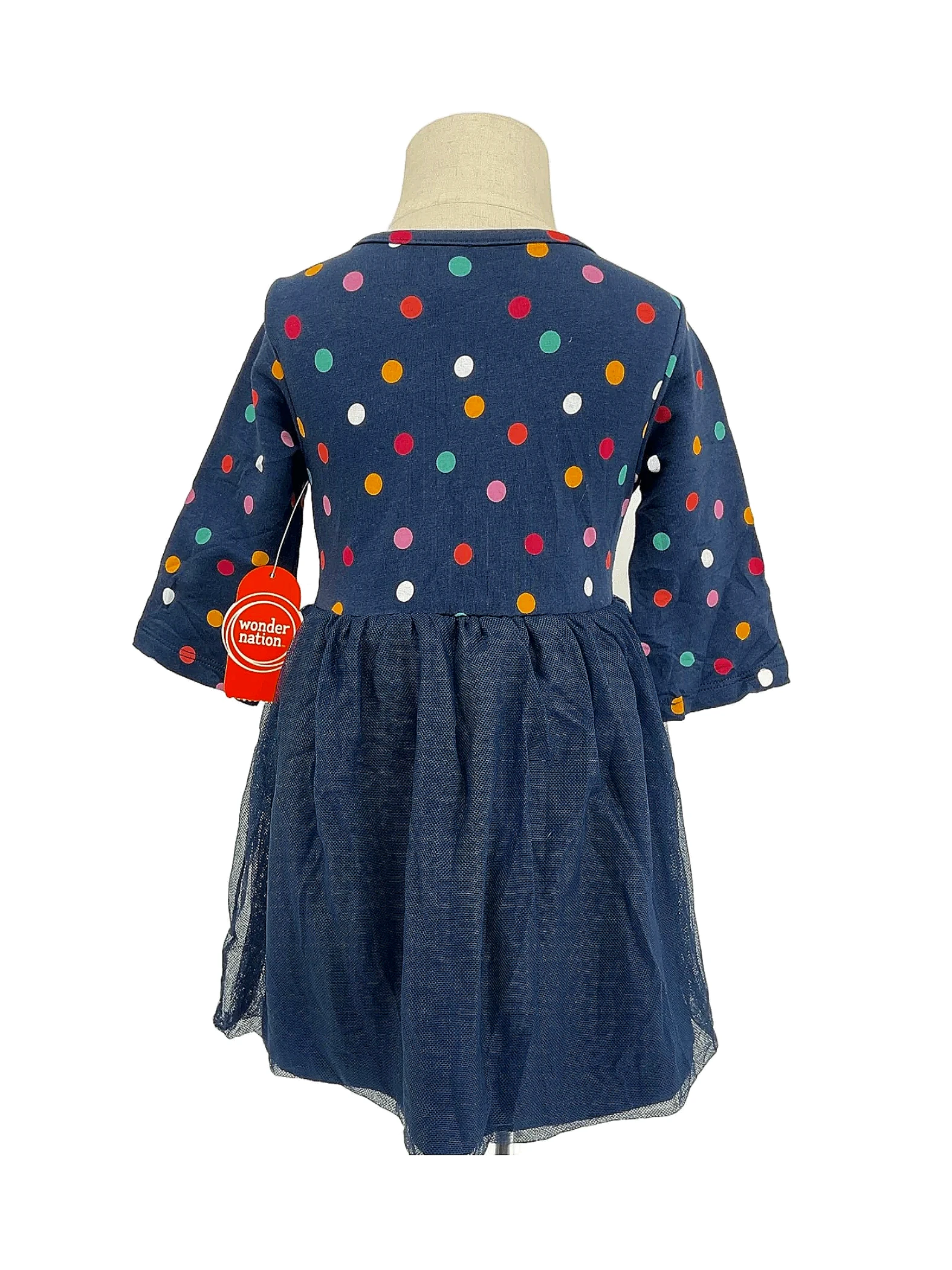 The kids' dress has multicolored polka dots for girls and is size 18 months.