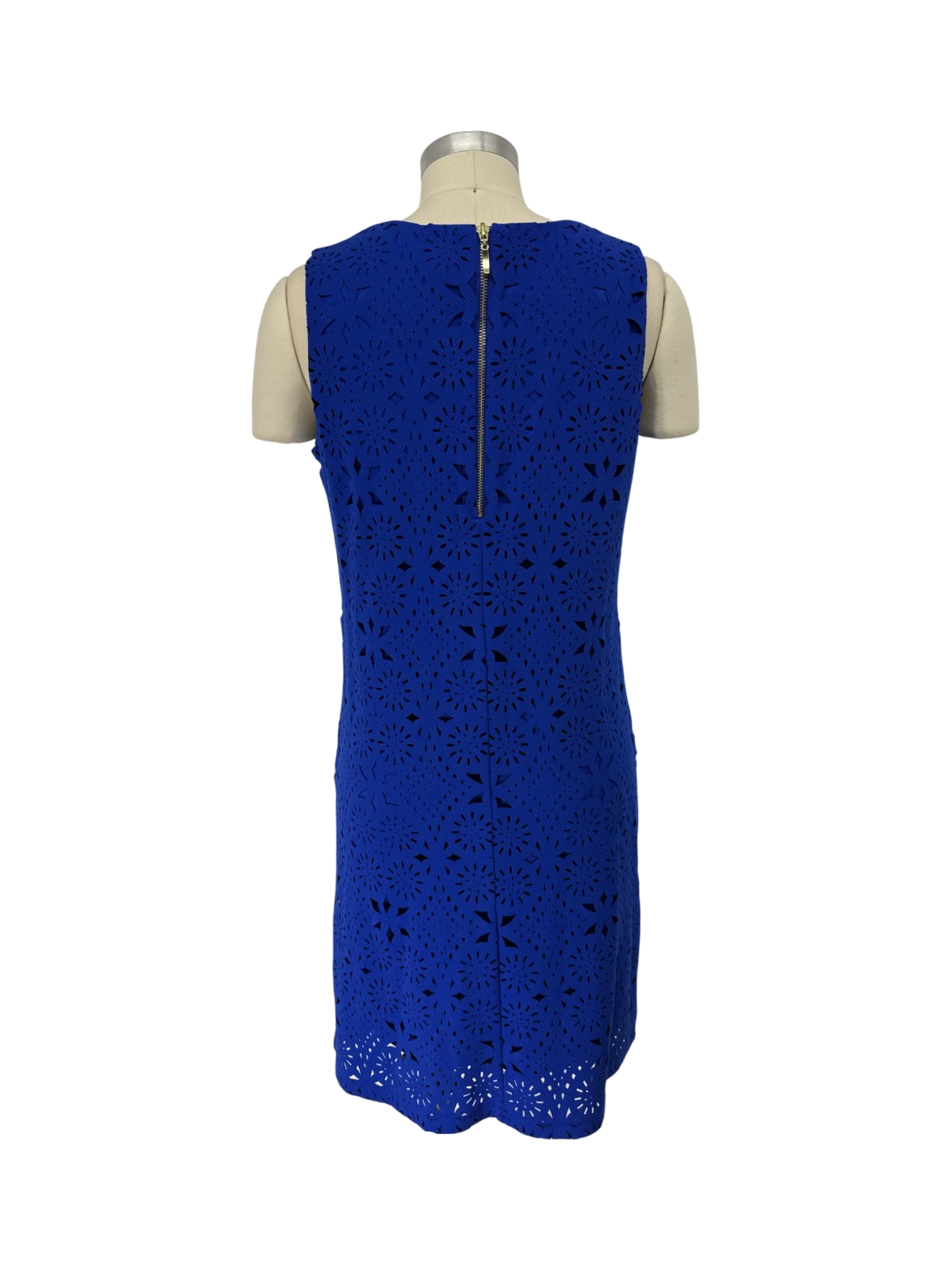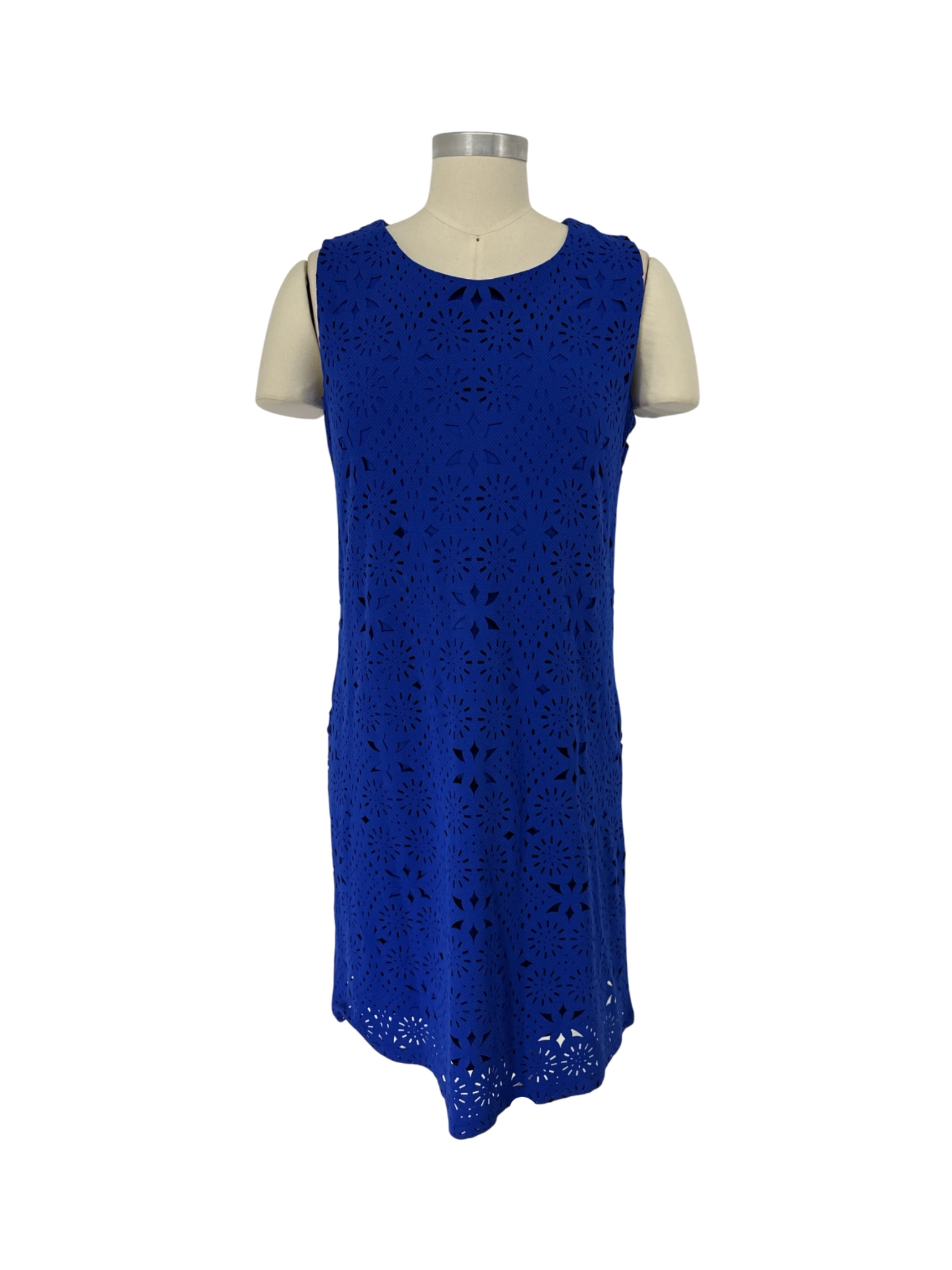 This pre-owned Worthington dress is a vibrant blue, perfect for warm weather events. Featuring a unique cutout design and a flattering A-line silhouette, this sleeveless dress offers both style and comfort. Crafted from a lightweight polyester blend, it's ideal for casual outings or cocktail parties. The dress is in excellent condition and ready to become a staple in your wardrobe.