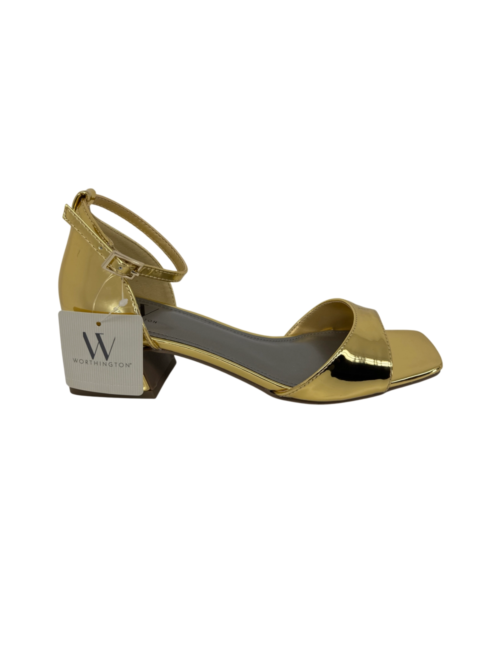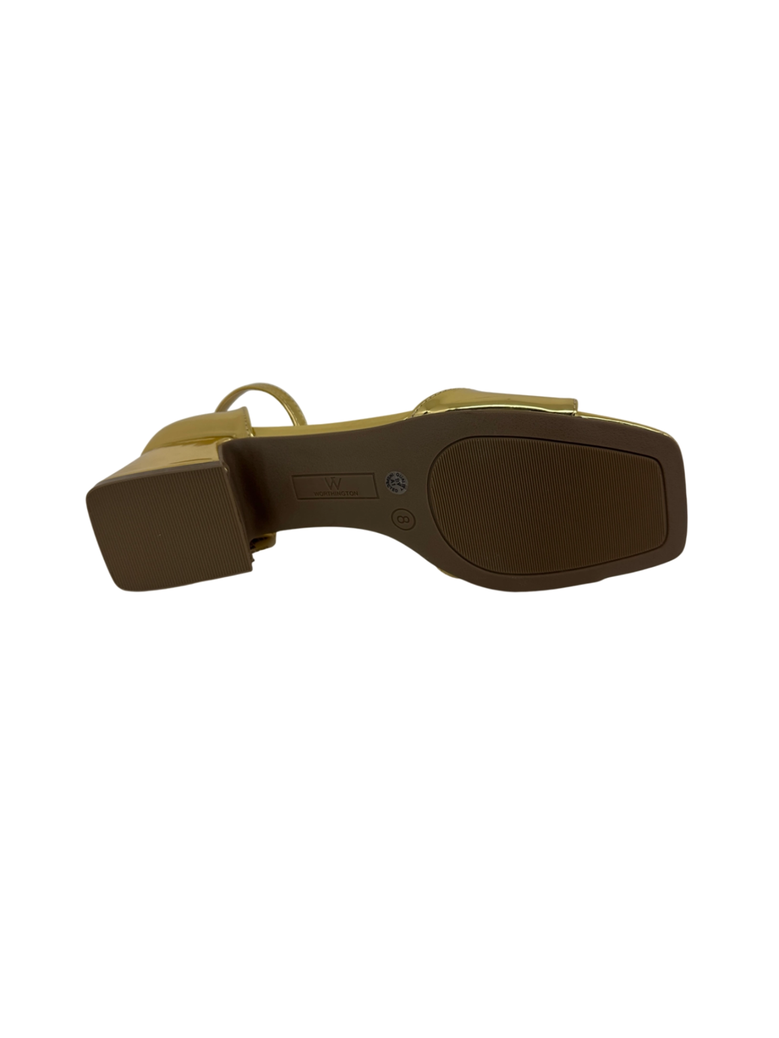 Step into the spotlight with these elegant gold Worthington sandals! Perfect for summer days or a night out, these heels feature a block heel for added comfort and stability. The metallic gold finish adds a touch of glamour to any outfit. Made with synthetic upper and man-made materials, these pre-owned sandals are in great condition and ready to elevate your wardrobe.