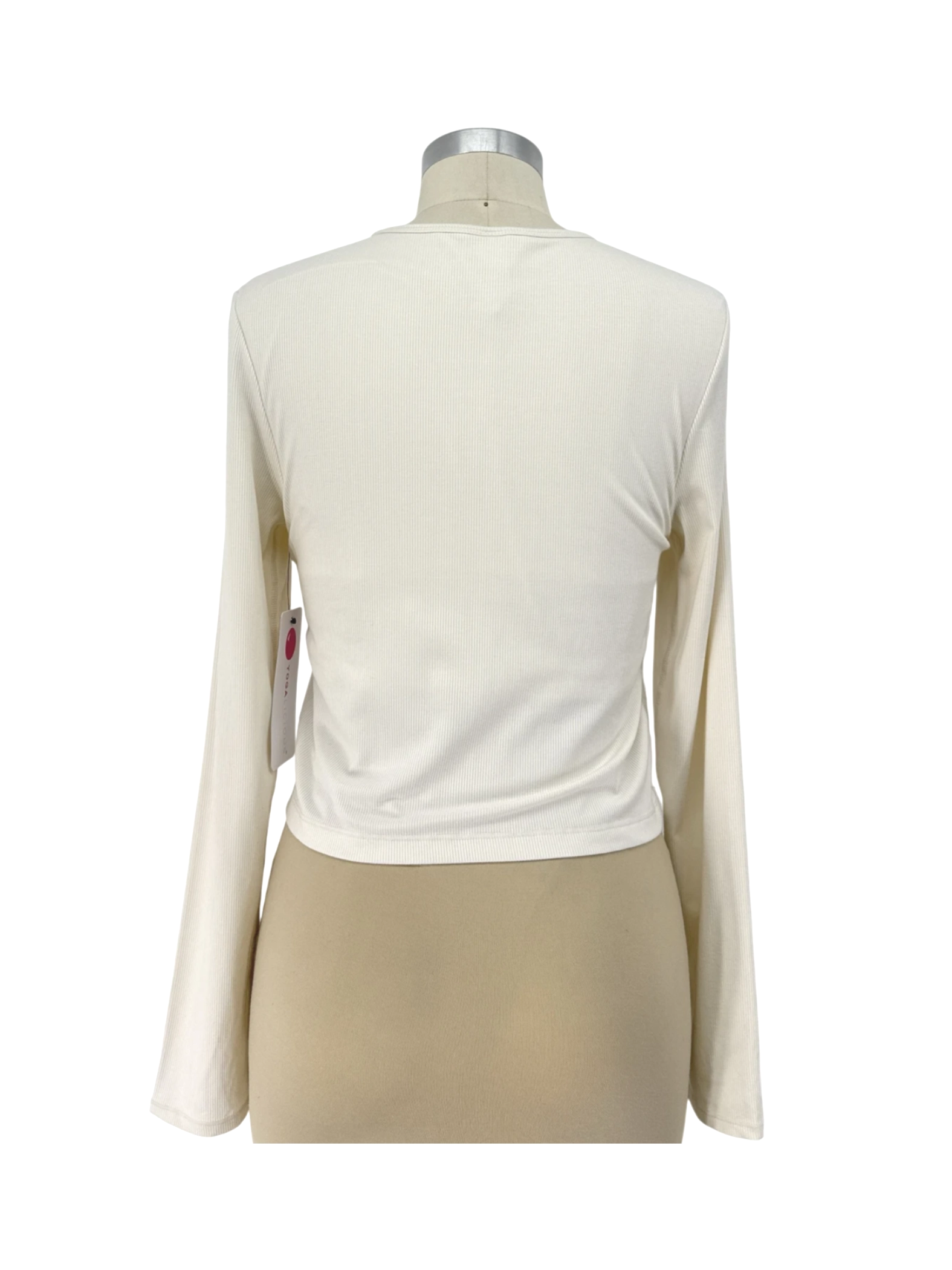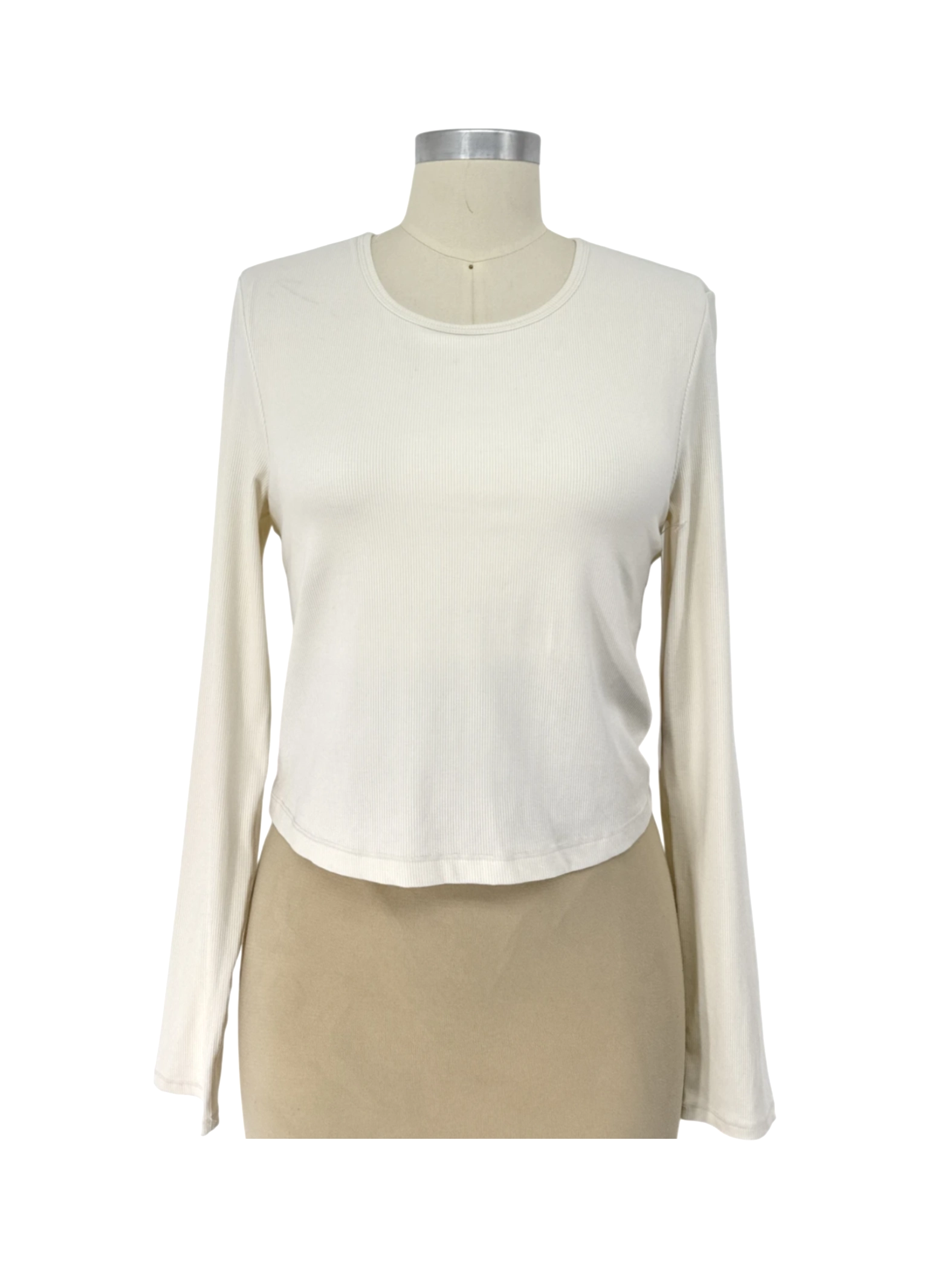 Elevate your activewear collection with this gently used Yogalicious Heavenly Rib Kathleen Crop Long Sleeve Top. This stylish top is perfect for workouts or casual wear. The soft, ribbed fabric offers a comfortable fit, while the long sleeves provide extra coverage. In a versatile white color, this top can be easily paired with your favorite leggings or shorts. The cropped design adds a trendy touch to any outfit. Get yours today!