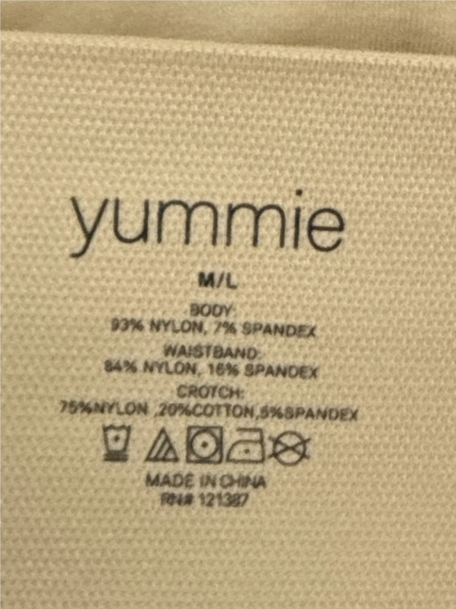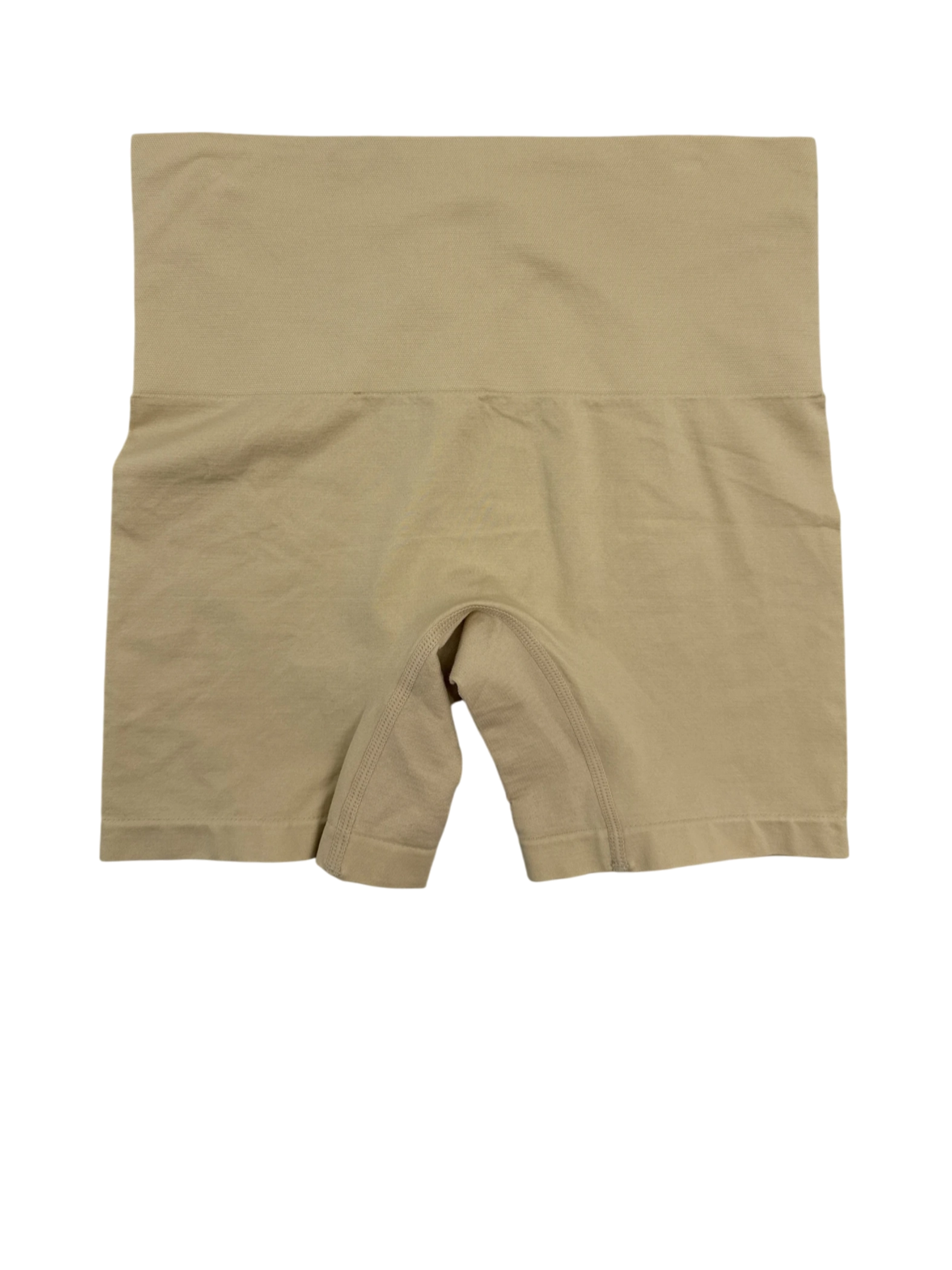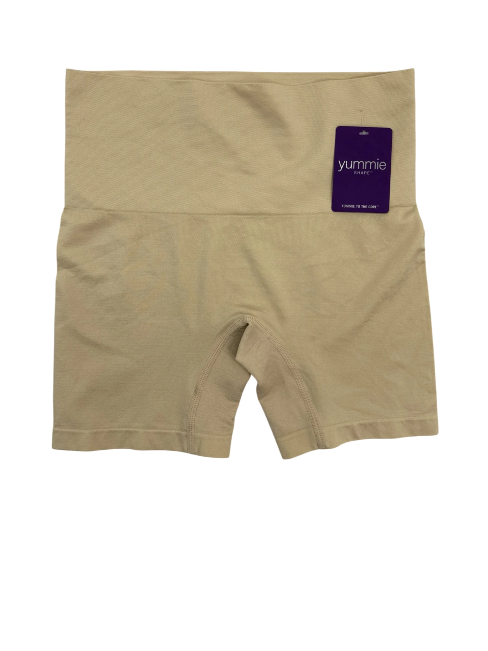 Elevate your activewear collection with these pre-owned Yummie shorts, designed for comfort and shapewear functionality. These beige shorts are perfect for layering under dresses or skirts, or wearing them alone for workouts. Made with a blend of nylon, spandex, and cotton, they provide a comfortable fit and support. The high-waisted design offers tummy control and smooths your silhouette. Excellent condition.