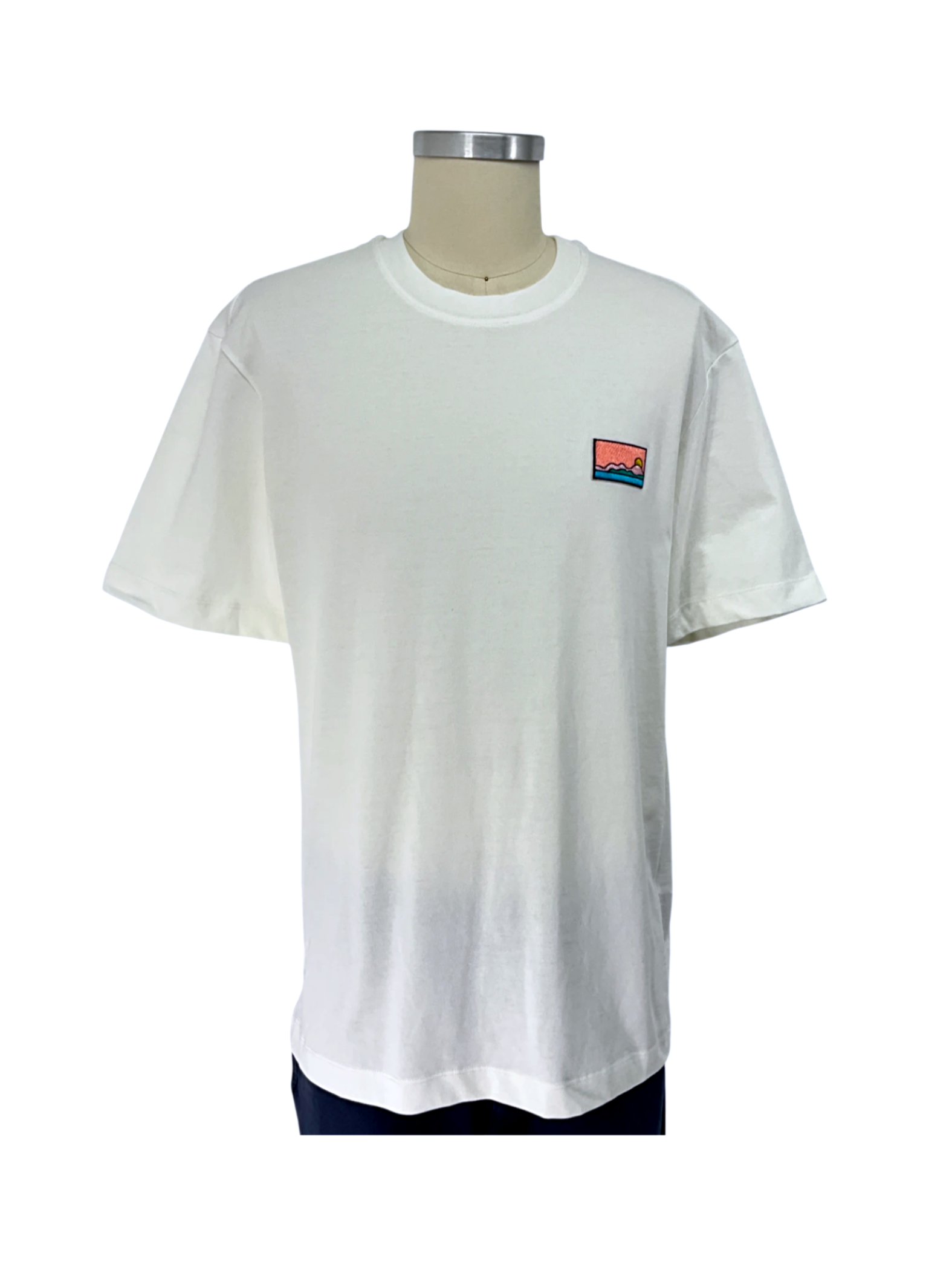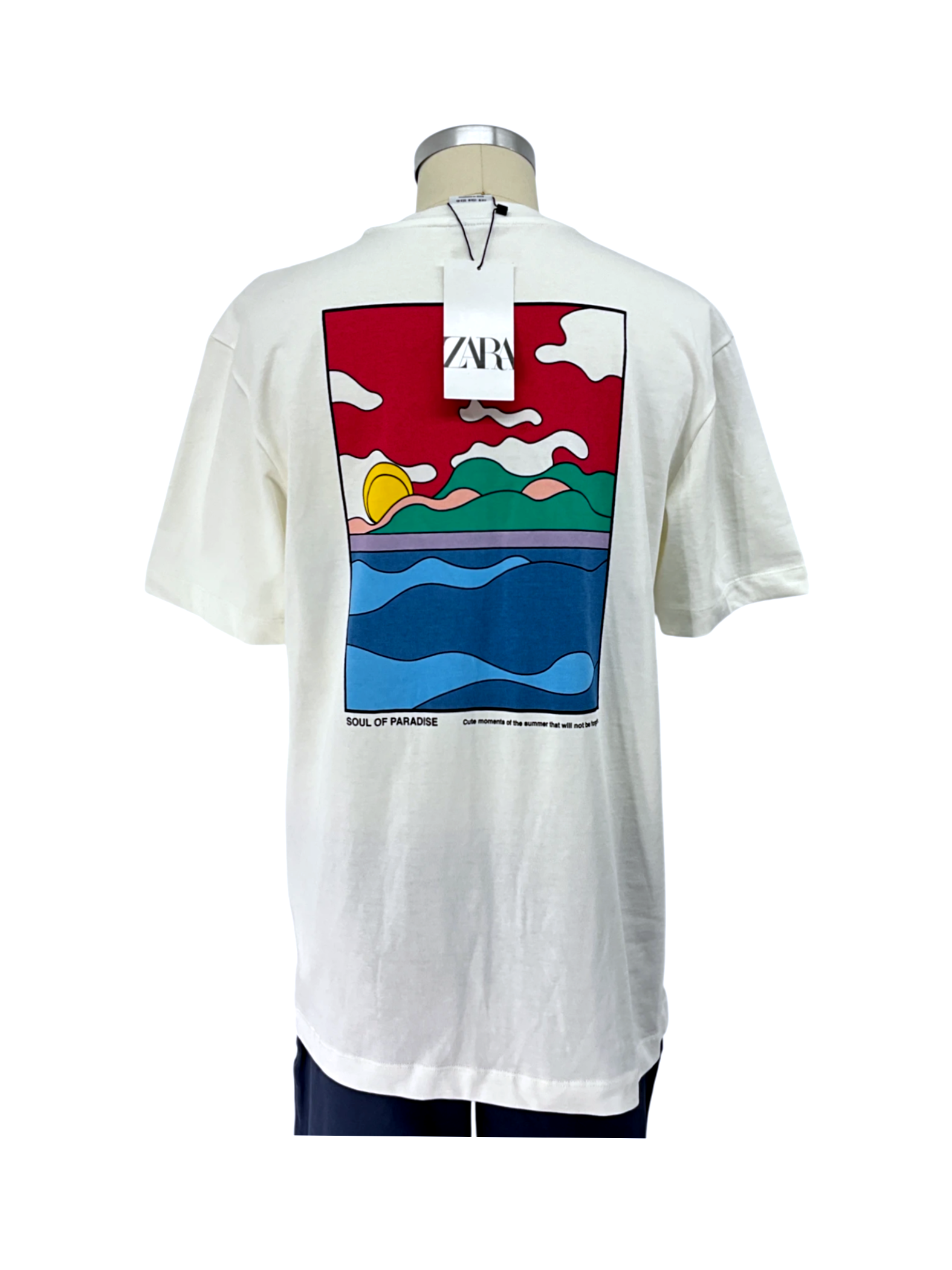 Men's round neck short sleeve T-shirt, size M, in white color with print on the back by Zara.
