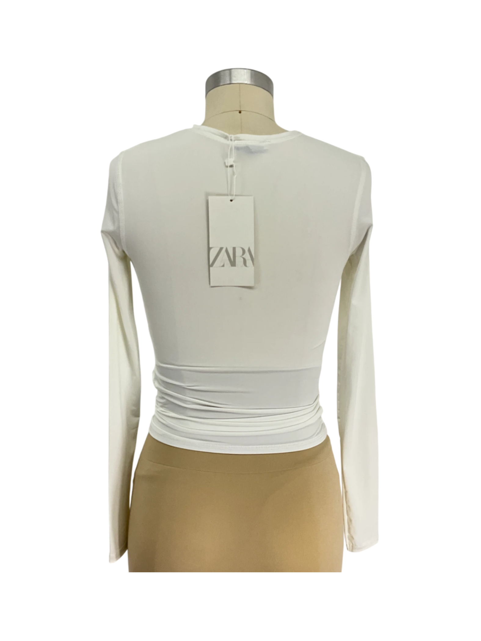 Zara White Fitted Long Sleeved Top Womens Size U.S Small.