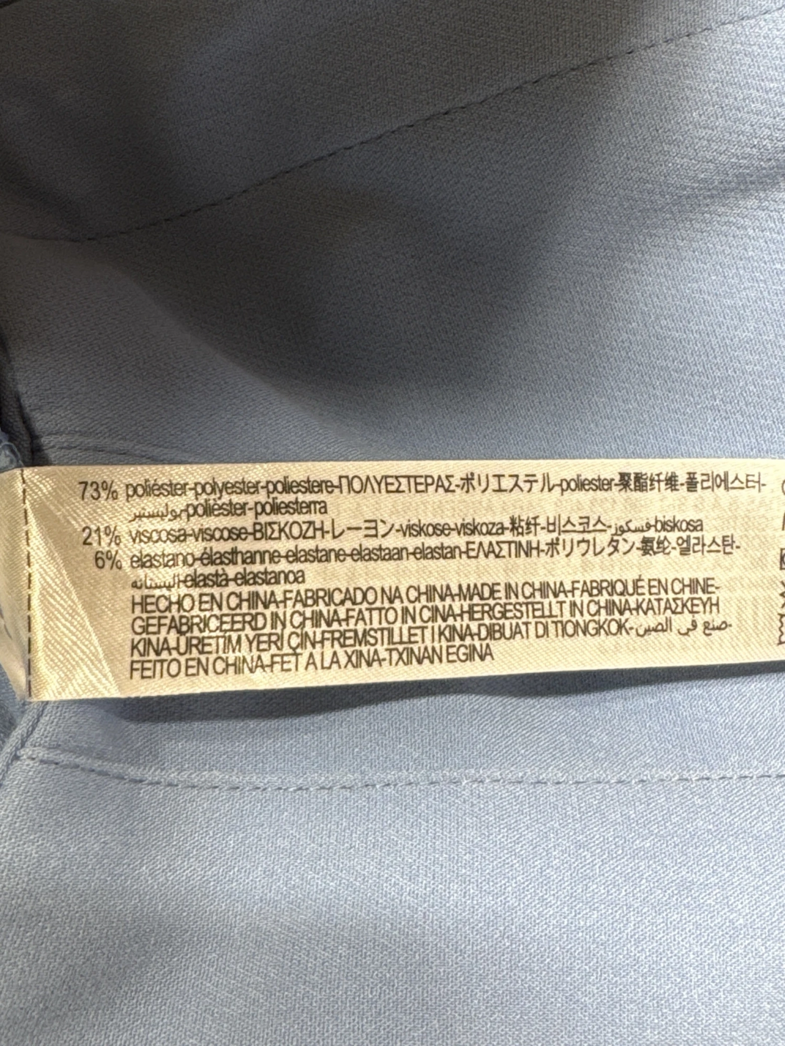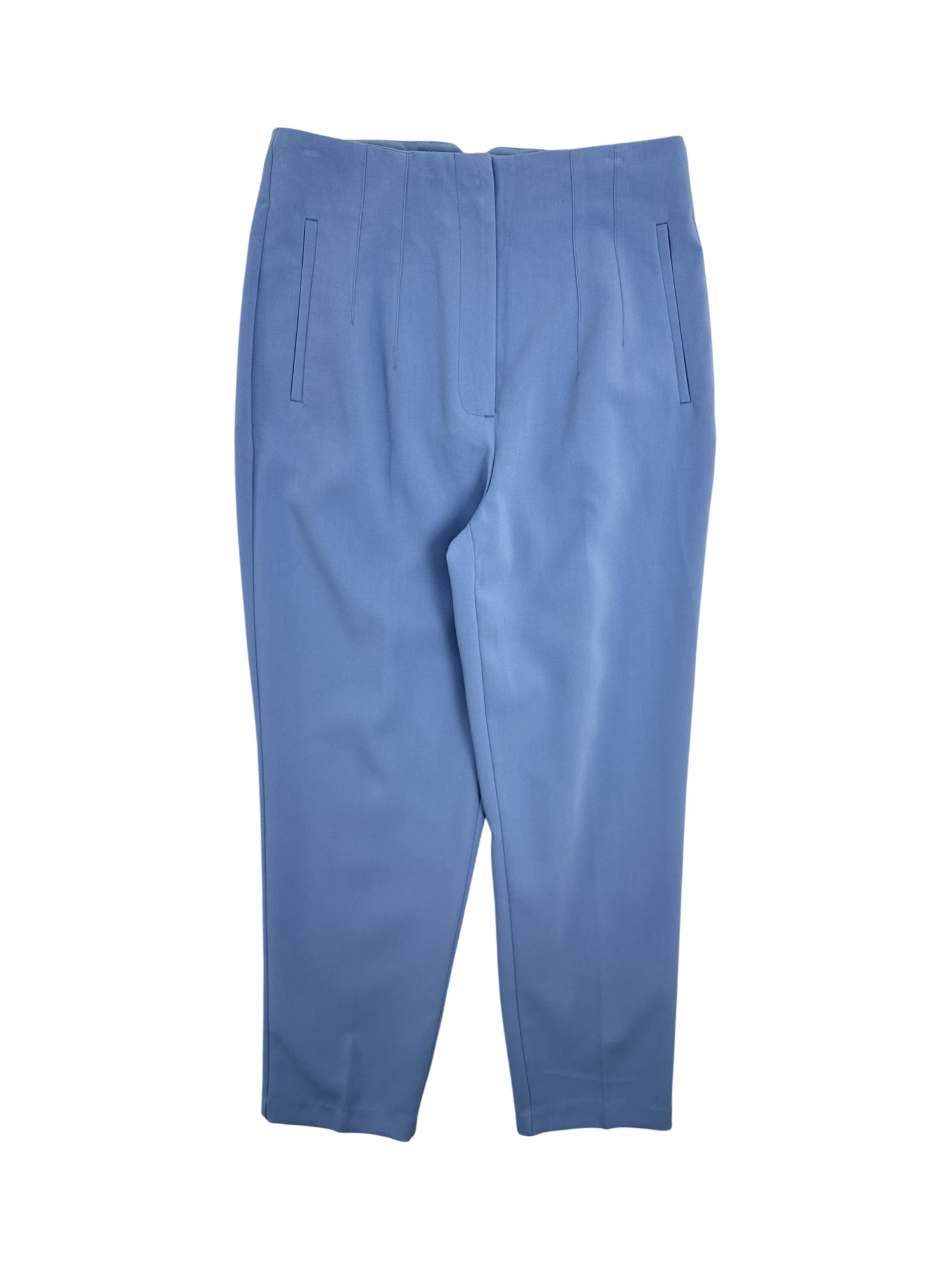 Elevate your wardrobe with these pre-owned Zara dress pants, perfect for the fashion-conscious woman. The light blue color adds a touch of sophistication, while the straight leg cut offers a flattering silhouette. Made from a blend of quality materials for comfort and durability, these pants are ideal for both spring and summer. A versatile piece that can be dressed up or down, these pants are a must-have addition to any closet.