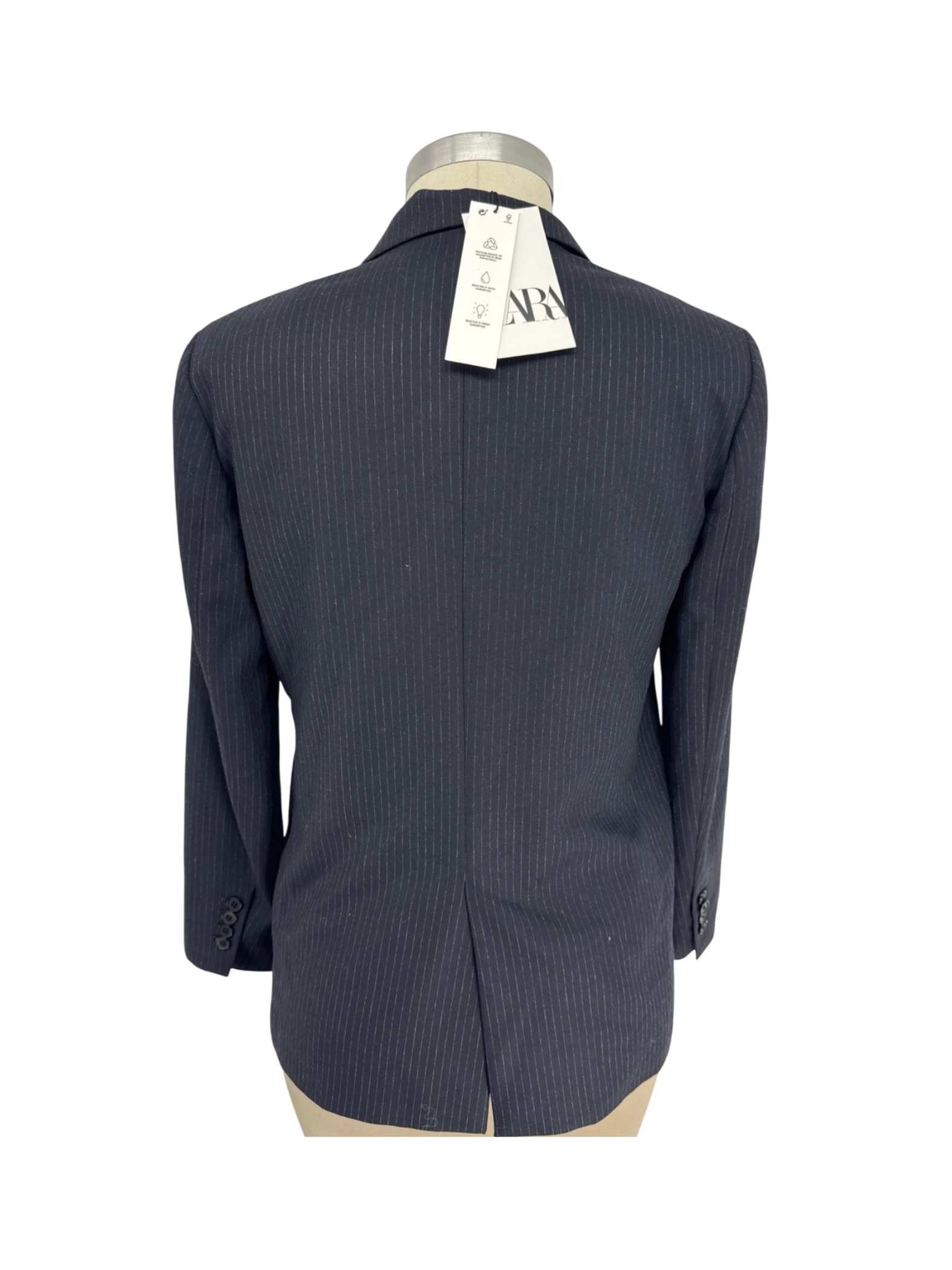 Elevate your professional wardrobe with this pre-owned ZARA blazer. This stylish blazer features a classic black color with subtle stripes, perfect for a sophisticated look. Crafted from a comfortable blend of materials, this blazer offers a tailored fit. It's a versatile piece suitable for both business and casual occasions. Excellent condition and a fantastic addition to your closet!