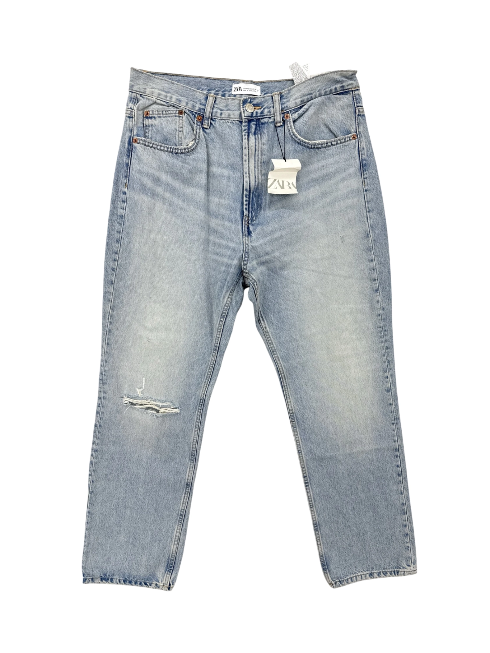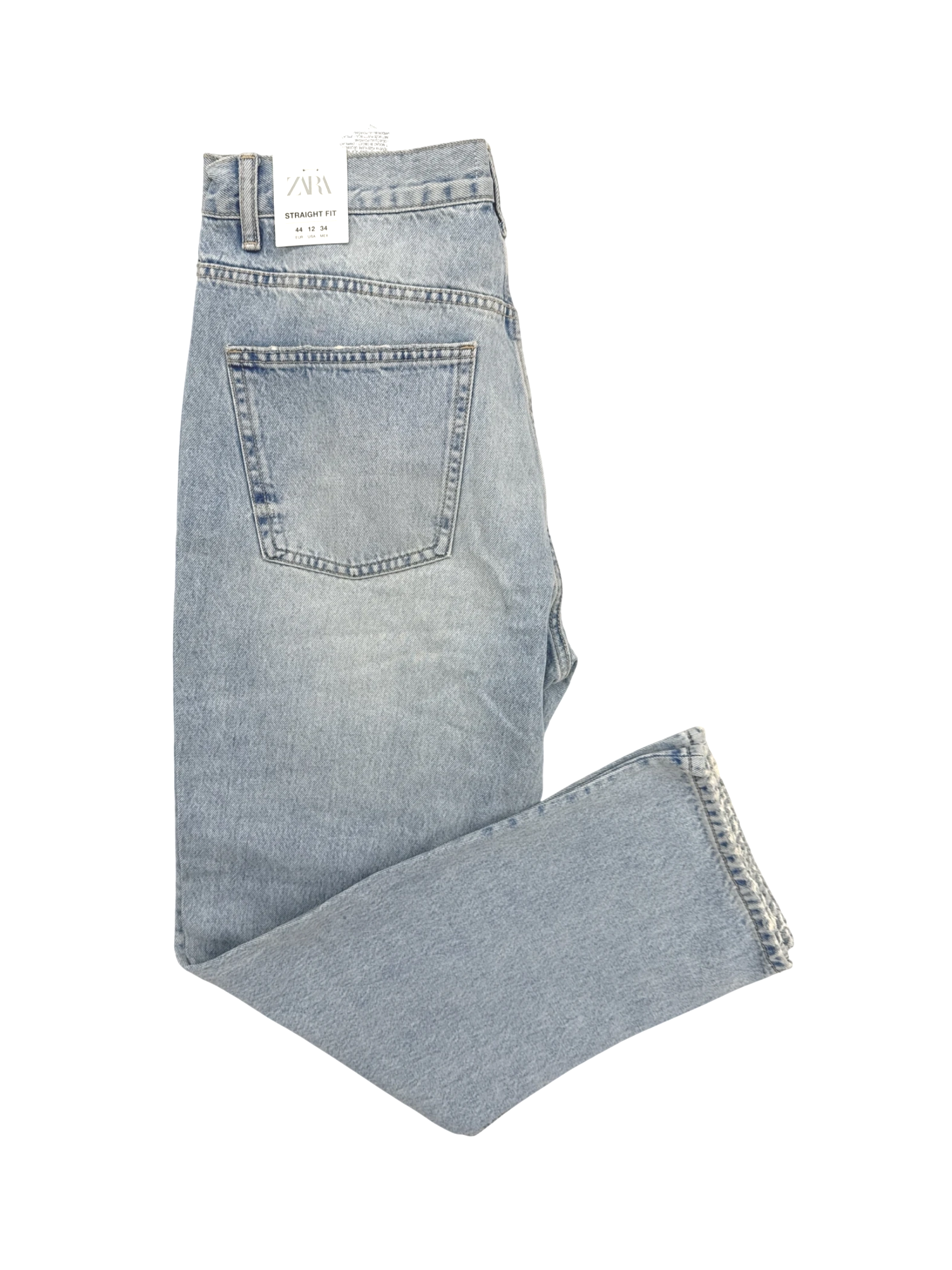 These pre-owned Zara jeans are a classic straight-leg style, perfect for everyday wear. Made from durable denim, they offer a comfortable fit and a versatile look that can be dressed up or down. These jeans feature a light wash and a timeless design. Ideal for any wardrobe, offering both style and sustainability by choosing second-hand.